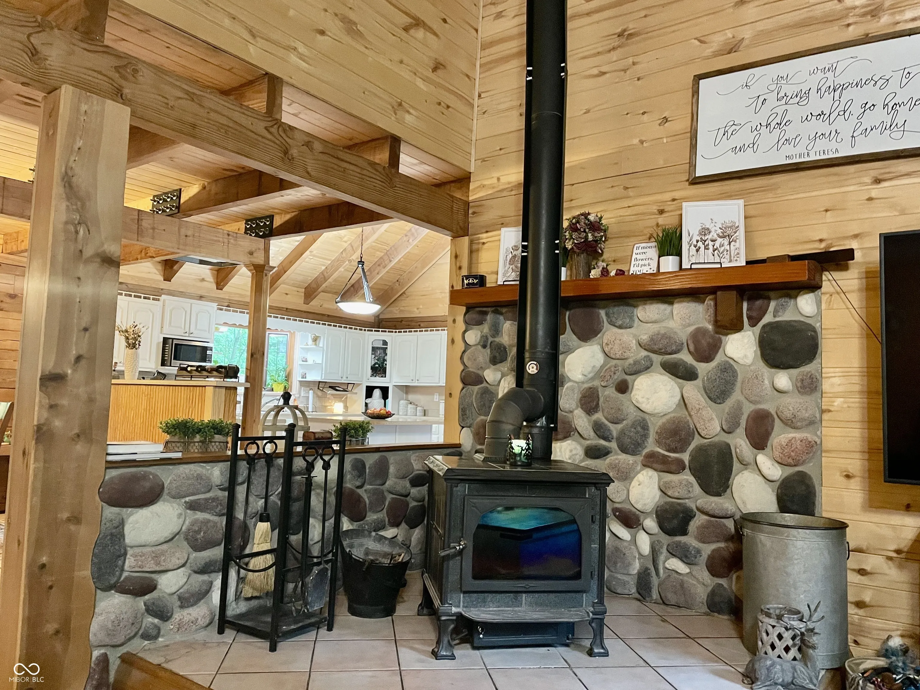 This beautiful log home sits on 25.3 rolling wooded acres with 2 creeks and trails, is back on the market due to no fault of the seller or the home… Buyer’s cash offer had a financial issue so 2nd chance here we go :)This attractive property offers a harmonious blend of comfort and style, making it an exceptional place to call home. There is also an adorable guest house with 840 sq. ft. wood stove, kitchen, living room bedroom, laundry room and nice bathroom and a 30x 11 covered porch. The primary residence has a beautiful kitchen with white cabinets, ceramic tile floors and backsplash the kitchen peninsula further expands the counter space adds a touch of elegance where a beamed ceiling and vaulted ceiling create an open and airy ambiance, while a wood stove adds warmth, and the high ceiling enhances the beautiful living room/ dining room combo with gorgeous hardwood floors. Step outside and discover the pleasures of outdoor living, where numerous decks beckon for relaxation offers a perfect setting for entertaining and outdoor dining area allowing you to savor meals al fresco. The primary bedroom offers a private sanctuary, where a wood wall creates a cozy and inviting atmosphere with large master bathroom with soaker tub and huge tile walkin shower. Full walkout basement has poured concrete walls, a bar with wine cooler and mini fridge in the game room, laundry room and a couple of very nice bonus rooms that could be a 4th or 5th bedroom down stairs. High speed internet, city water. This property has it all
