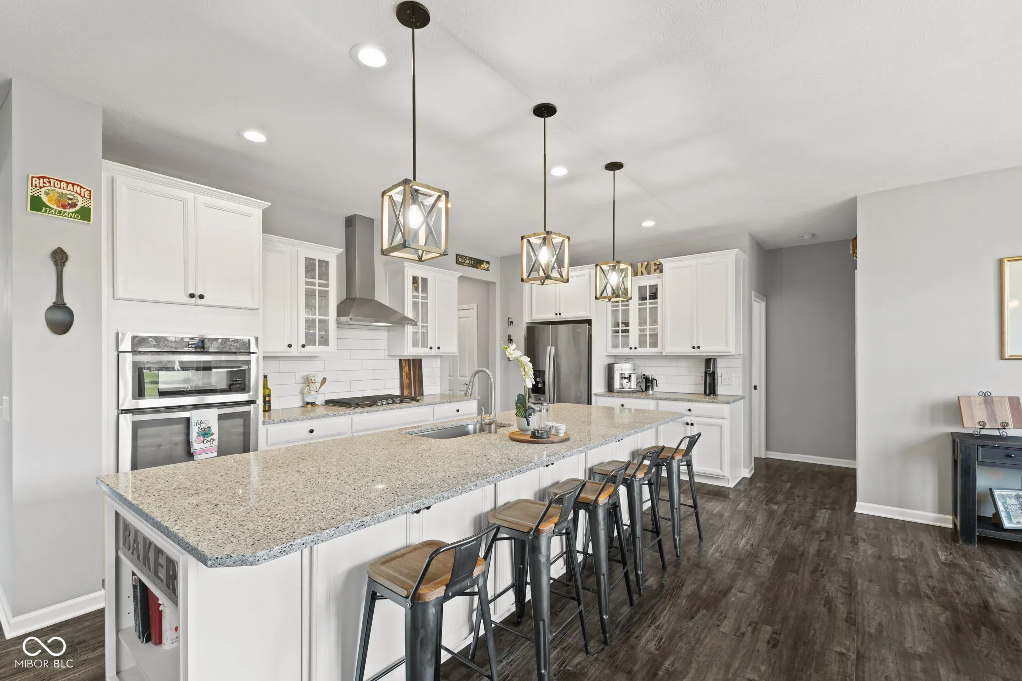 Built in 2018 and meticulously cared for by its original owners, this stunning 7-bedroom, 5.5-bathroom showstopper in Avon offers the space, sophistication, and flexibility today’s modern lifestyle demands-and it backs up to a peaceful pond view that adds a daily dose of serenity. From the moment you pull up to the elegant brick exterior, 3-car garage, and welcoming covered porch, you know this one is special. Step inside to a airy 9-ft ceiling foyer with laminate flooring, flanked by a formal dining room and two coat closets. A half bath off the entry adds convenience, but the real magic unfolds as you move into the heart of the home. The open-concept living area draws you in with a corner gas fireplace and fully opens to the gourmet kitchen-a dream space with stainless steel built-in appliances, large granite island with seating, and a walk-in pantry with custom built-ins. The sunny breakfast room leads to a deck with a pergola, perfect for morning coffee or twilight dinners with pond views. Need multigenerational space or a private retreat? The main level in-law suite has it all: a bedroom, full bath with walk-in shower, and a generous walk-in closet. But it doesn’t stop there-the finished basement is the ultimate teen or guest retreat, complete with a wet bar, large living area, 2 bedrooms with egress windows and walk-in closets, plus a full bath and storage galore. Upstairs, a loft with vinyl plank flooring awaits alongside a laundry room and 4 additional bedrooms, including a expansive primary suite with double doors, private sitting area, spa-like bathroom, and a walk-in closet Carrie Bradshaw would envy complete with custom built-ins. All of this in top-rated Avon Schools, near the future Easton Grey Riverwalk District, Bicentennial trail and the best parks in Hendricks County. Homes with this space, layout, and level of luxury rarely come to market-and when they do, they don’t last. Schedule your private showing today before someone else falls in love first