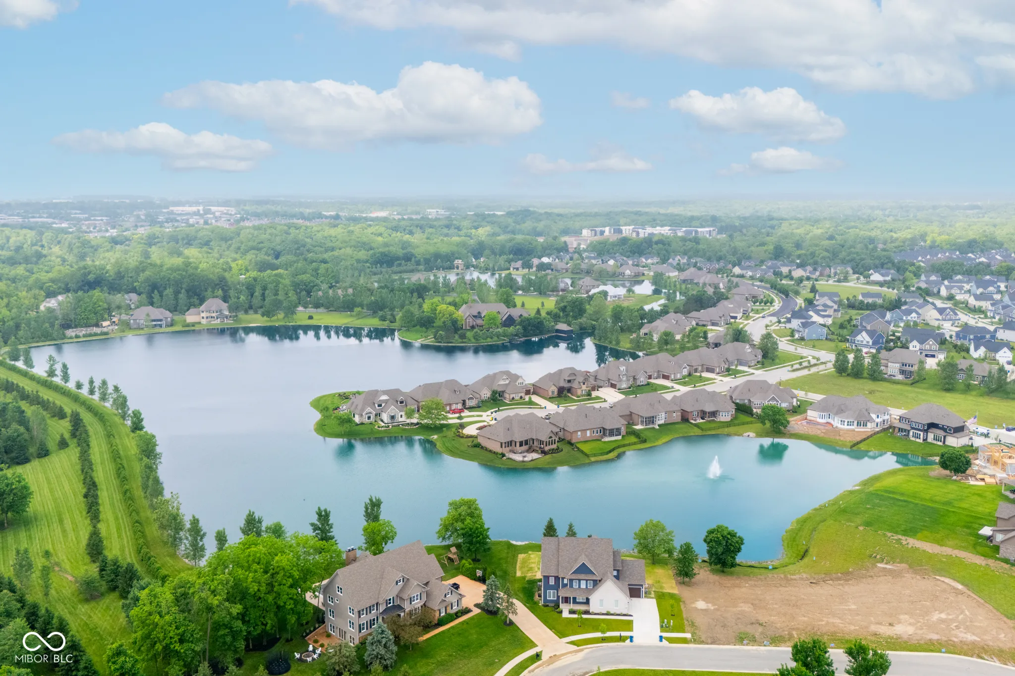 Nestled along the tranquil waterfront in the prestigious Waterfront at West Clay community, 4359 Prairie Falcon Drive offers a rare opportunity to own an exceptional lakefront property. Breathtaking water views greet you from the moment you arrive, and the meticulously maintained ranch-style home is thoughtfully designed to celebrate its idyllic setting. Whether sipping coffee on the covered patio or watching sunsets glisten over the lake, the seamless indoor-outdoor flow creates a peaceful retreat. Built in 2020 on a beautifully landscaped 0.38-acre lot, this 4,394 sq ft residence blends timeless elegance with modern comfort in the heart of Zionsville. The stately brick and cement exterior speaks to the home’s quality craftsmanship. A three-car garage and irrigation system enhance its functionality. Inside, 9-foot ceilings and cathedral-style touches amplify the airy ambiance, while thermal windows frame stunning lake views. The main level includes three spacious bedrooms-including a luxurious primary suite-and a fourth bedroom in the finished basement. A spectacular great room with a cozy gas fireplace offers wide-open lake views and connects effortlessly to the gourmet kitchen with an oversized island, breakfast bar, walk-in pantry, and stainless-steel appliances. Both formal and casual dining areas overlook the water, perfect for any occasion. The primary suite is a peaceful haven with a spa-like ensuite bath, double sinks, soaking tub, separate shower, and large walk-in closet. Downstairs, the finished basement adds flexible living space with a family room, bedroom, full bath, and exercise area-ideal for guests or entertaining. Additional highlights include a main-level laundry, hardwood flooring, programmable thermostat, and high-speed internet. Located in Carmel Clay Schools and close to shopping, dining, and recreation. Discover the lifestyle at www.waterfrontofwestclay.com.