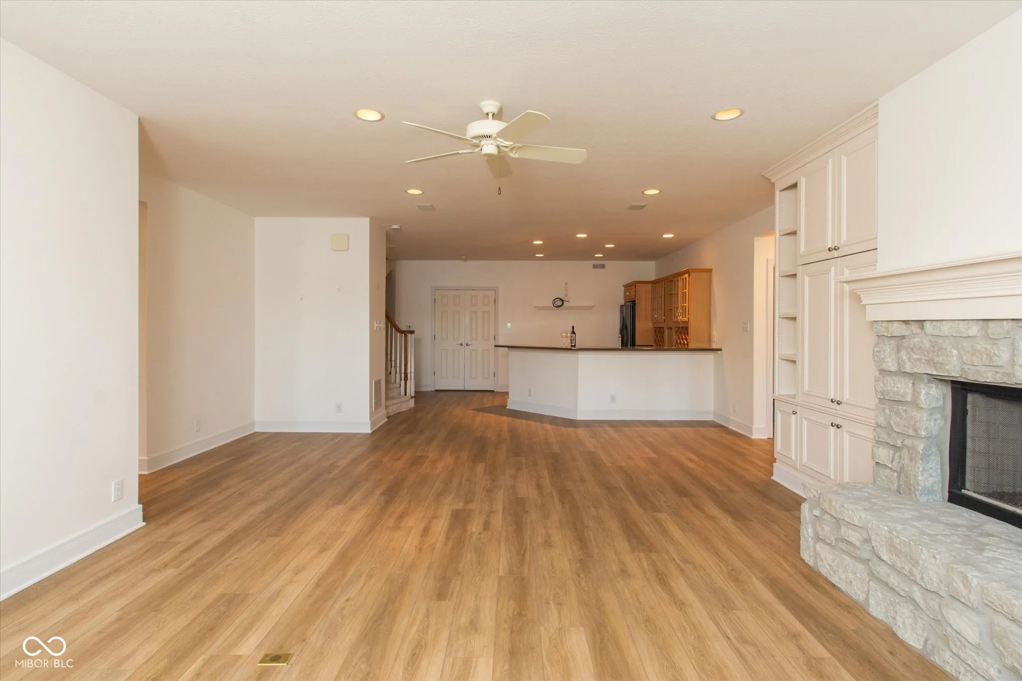 Back on the Market with UPDATES! New Flooring, Paint, Lighting, +more to see! Discover the beauty of this charming, one-of-a-kind neighborhood: LAKE STONEBRIDGE. It’s like being on vacation everyday! Custom built John McKenzie home on an irreplaceable 70 acre PRIVATE LAKE with a boat slip and WATER VIEWS from almost every room! Enter this quality ranch home with beautiful leaded glass around the front door, custom built-ins in the great room, along with the double-sided fireplace and a wall of floor to ceiling windows showing the fabulous lake views! Kitchen is open to the breakfast nook and hearth room w/hrdw flooring. Kitchen island, breakfast bar, Large pantry, gas range, & prep sink. The primary suite offers a private retreat, complete with a tray ceiling, floor to ceiling windows with LAKE VIEWS and crown molding that adds a touch of elegance, as well as an ensuite bathroom that promises relaxation and pampering; unwind in the jetted tub after a long day on the lake, or enjoying the convenience of the double vanity, walk-in shower and large walk-in closet. This property offers a spacious new trex deck and retractable awning where you can savor morning coffee or host evening gatherings enjoying the water view. Some updates needed but not to the Dock -is 2 years new with floats and Trex decking($25k) plus NEWER WINDOWS throughout ($125k) Rare, long driveway allows ample room for guests to park. Heading down to the lower level- rec./family room with stone fireplace, wet bar with full fridge. Plus a HOME THEATRE-ready for movies and comes with comfy recliners. 2 Large bedrooms w/walk-in closets and 2 FULL bathrooms Plus large storage room! Walk out onto a large patio and custom pavers leading to the lake. Grab your lake toys and head out to enjoy all the outdoor water activities! Minimum mntc. community takes care of the lawn care, edging, mulching, trimming, snow removal plus MUCH more! Lake Stonebridge is a hidden gem – come see for yourself!