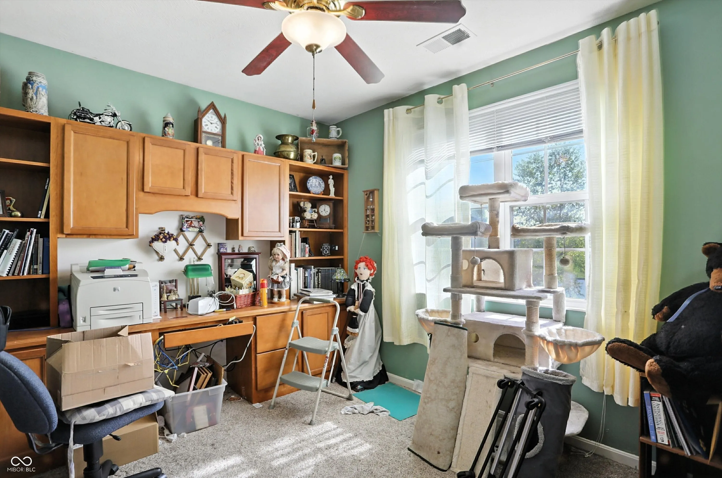 Rare 2 Bedroom + Den / Office, 2 full Bath + detached 2 car garage spaces (rare feature) main level unit (no stairs!) in well-kept Lancashire at Oak Manor! Open floorplan includes spacious Great Room, Dining Room and Office/Den with built-in desk and cabinetry. You’ll love the updated walk-in shower with flip-up teak seat, dual sinks, LVP flooring and huge walk-in closet in the Primary suite. Both bedrooms have walk-in closets! Newer stainless steel appliances and washer/dryer (all less than 2 years old) convey with property. The spacious, private covered patio overlooks peaceful, well-maintained pond (no neighbors behind). Close to Westfield’s Midland Trail, Grand Park, Pebble Brook Golf course and restaurants/shopping. Neighborhood amenities include clubhouse and swimming pool. Extra storage space found in sought-after 2 garage spaces with pegboard. Owner-occupants only.