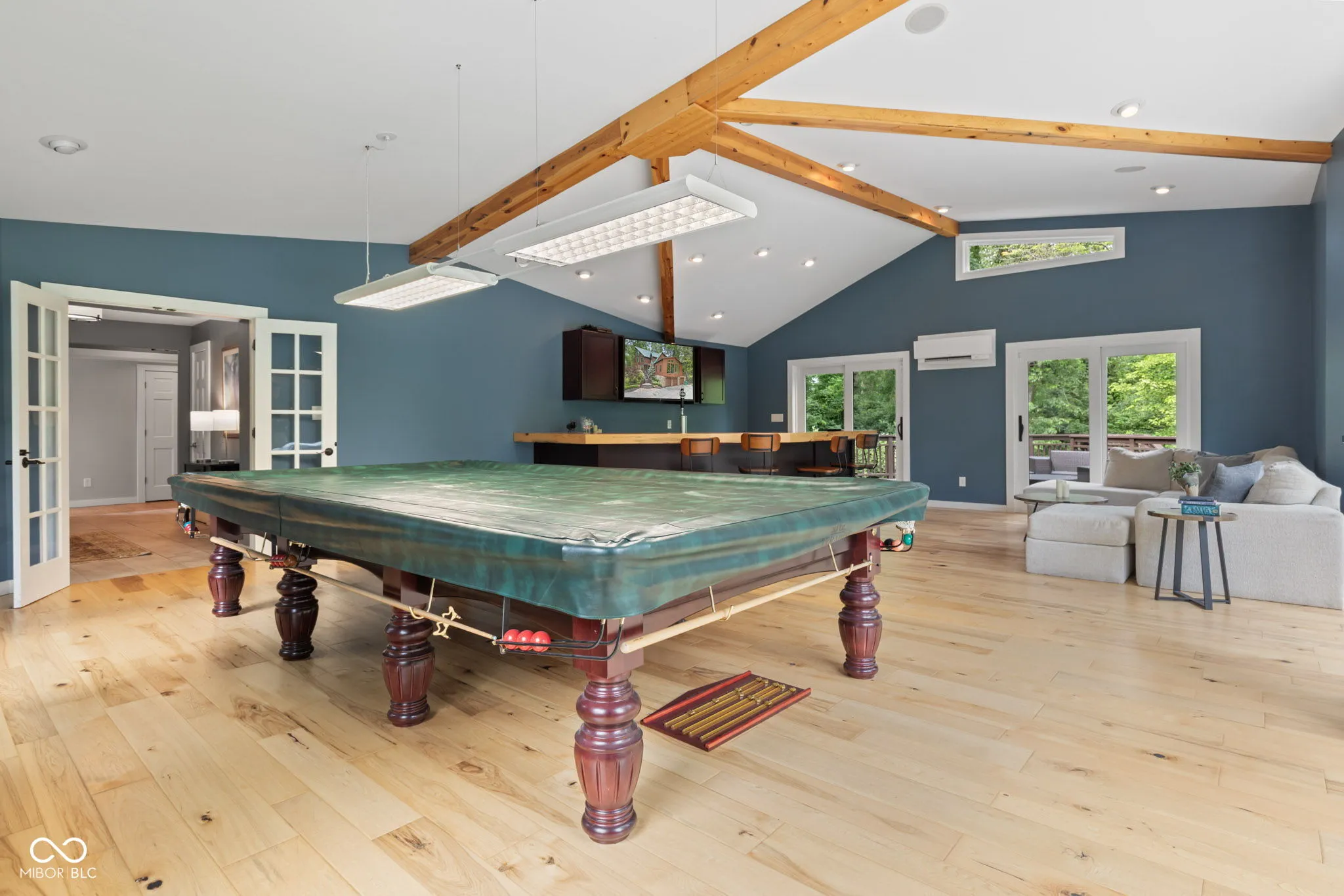 **We kindly ask that all visits be scheduled in advance to respect privacy and safety.** Welcome to your private retreat in the heart of Hamilton County! This one-of-a-kind 7,000 sq. ft. custom log cabin offers luxury living with the rustic charm of a true country estate. Situated on 20 breathtaking acres, this property is the perfect blend of tranquility, upscale amenities, and outdoor adventure. Step inside to find an updated, high-end kitchen designed for both everyday living and entertaining, featuring multiple seating areas, custom cabinetry, and stone countertops. The spacious living areas boast soaring ceilings, multiple fireplaces, exposed wood beams, and floor-to-ceiling windows that bring the beauty of the outdoors in. With 5 generously sized bedrooms and multiple living spaces, there’s room for everyone. The home also includes an entertainment room with a custom bar – ideal for hosting game nights, gatherings, or just relaxing in style. Step outside and enjoy the ultimate outdoor lifestyle with a sparkling inground pool, a pole barn with horse stalls, and wooded trails perfect for horseback riding, hiking, or ATV adventures. Whether you’re an equestrian enthusiast, a nature lover, or simply seeking peace and privacy, this property has it all.