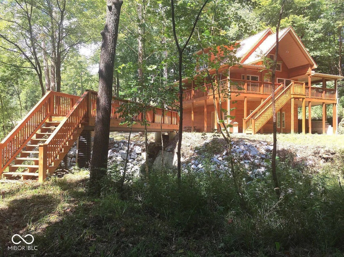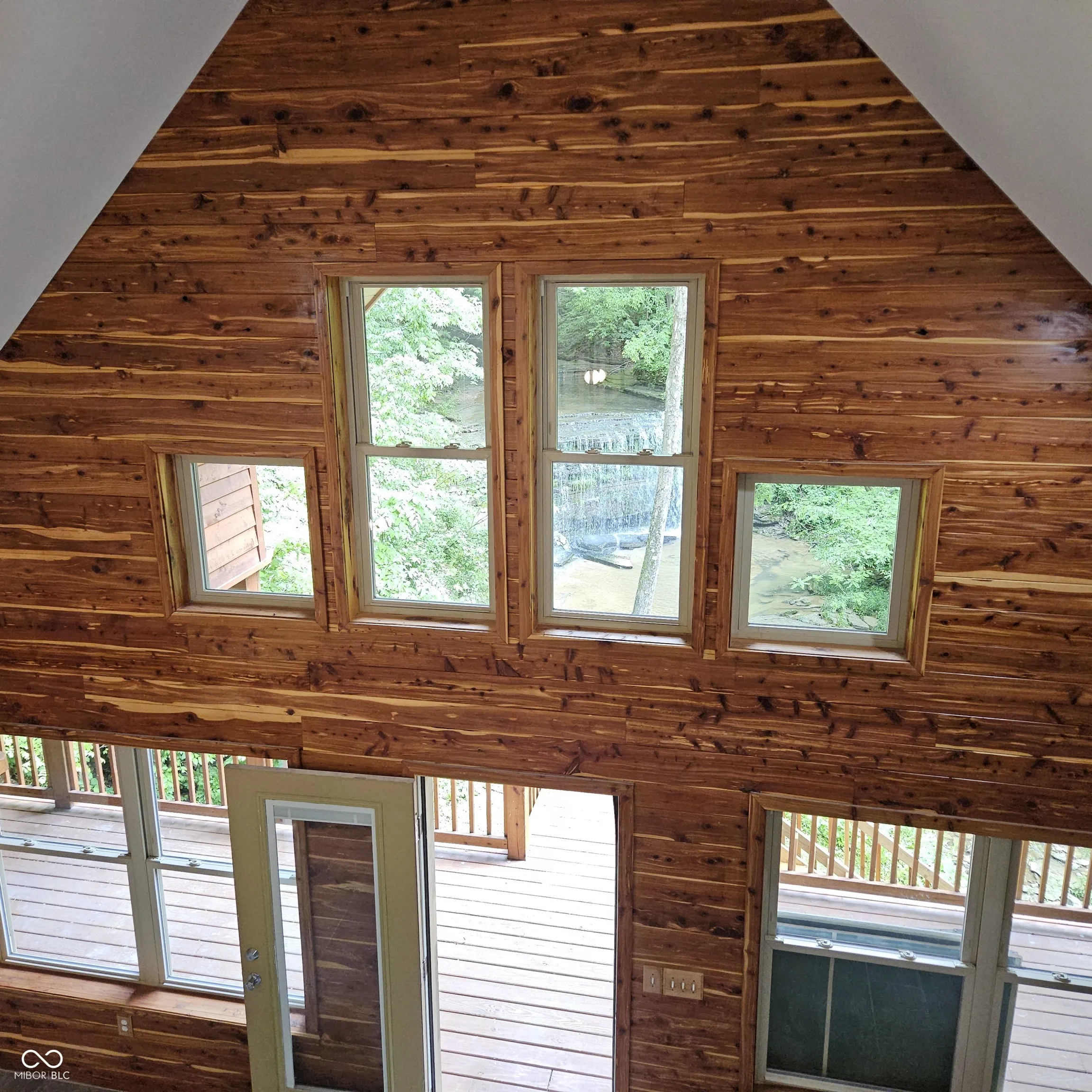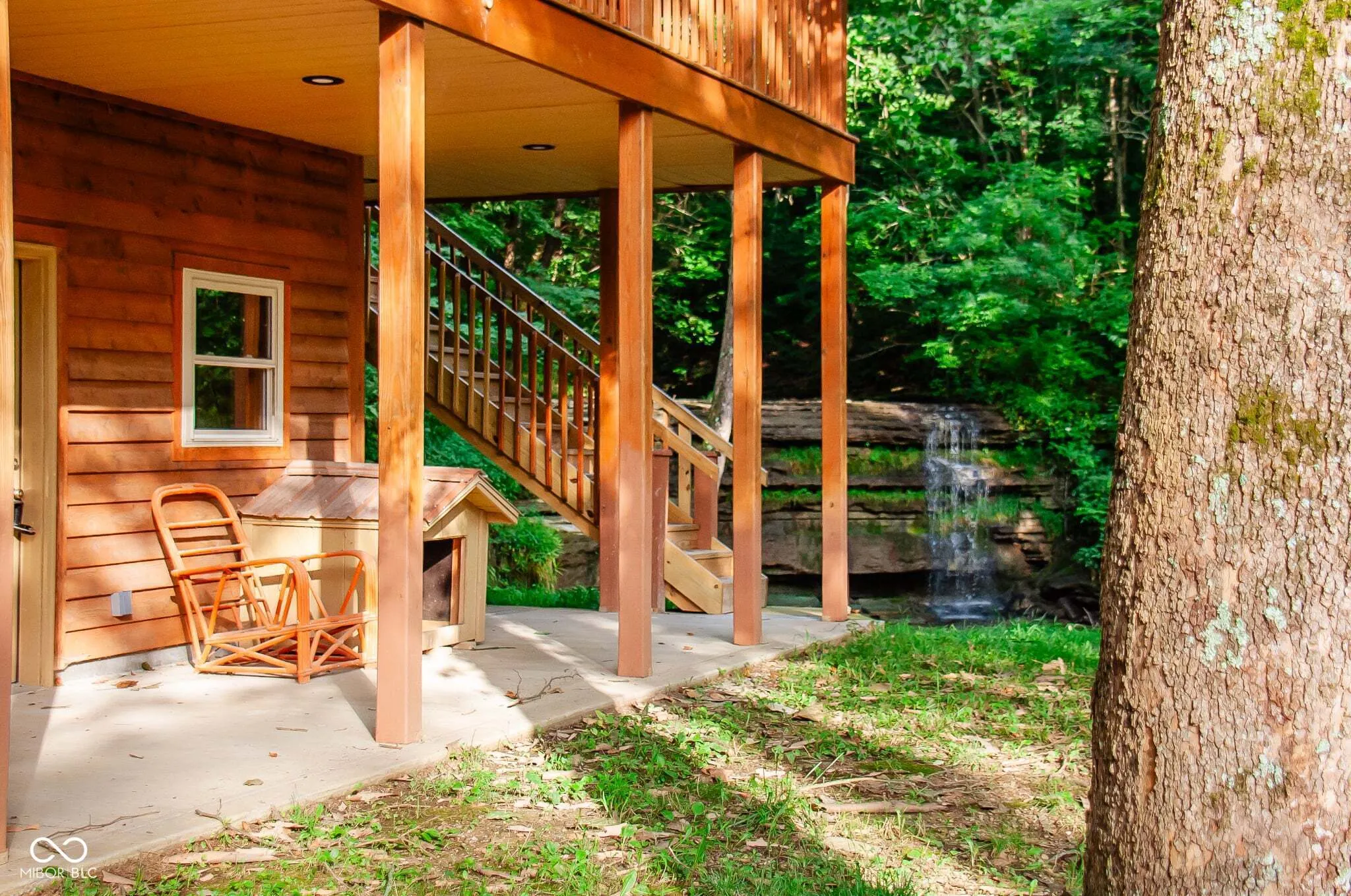 Unique “WATERFALL PROPERTY” w/ GAS WELL. This CEDAR home is for the buyer that wants seclusion & privacy but needs to be 15 minutes from town. Enjoy Amazing views & sounds of the waterfall from all levels of this home & property. The PORCH and upper covered DECK wraps around 3 sides of the home where you will enjoy nature, sounds of the waterfall & birds-eye views of the property. The kitchen is all brand new in 2025 with stainless steel appliances and opens to the 2 level dining area/great room w/stone fireplace. 3 levels of space. Main level in-law suite w/gas fireplace & full bath w/shower, & a 2 Car Attached Garage. The 2nd level features the Great Room/Dining, Kitchen, Bedroom, Full Bathroom & Laundry Room The 3rd level features a 1/2 Bath, Bedroom, and a Den that overlooks the 2nd level. Split level bedrooms provides privacy. Durable Metal roof with a life span of 40-50 years. Picturesque bridge over a small creek that runs from the waterfall and provides access to the lower level of the land. Layers of Limestone are the back drop of the waterfall. This home is ready to be lived in and enjoyed. The current owner only used the mother in law suite 1 day a week. The property is being subdivided and will include approx 1 acre. The lower property and workshop will not be included. The line will be at the edge of the lower driveway. This property will include the creek, bridge and waterfall. This property is a true one of a kind treasure.