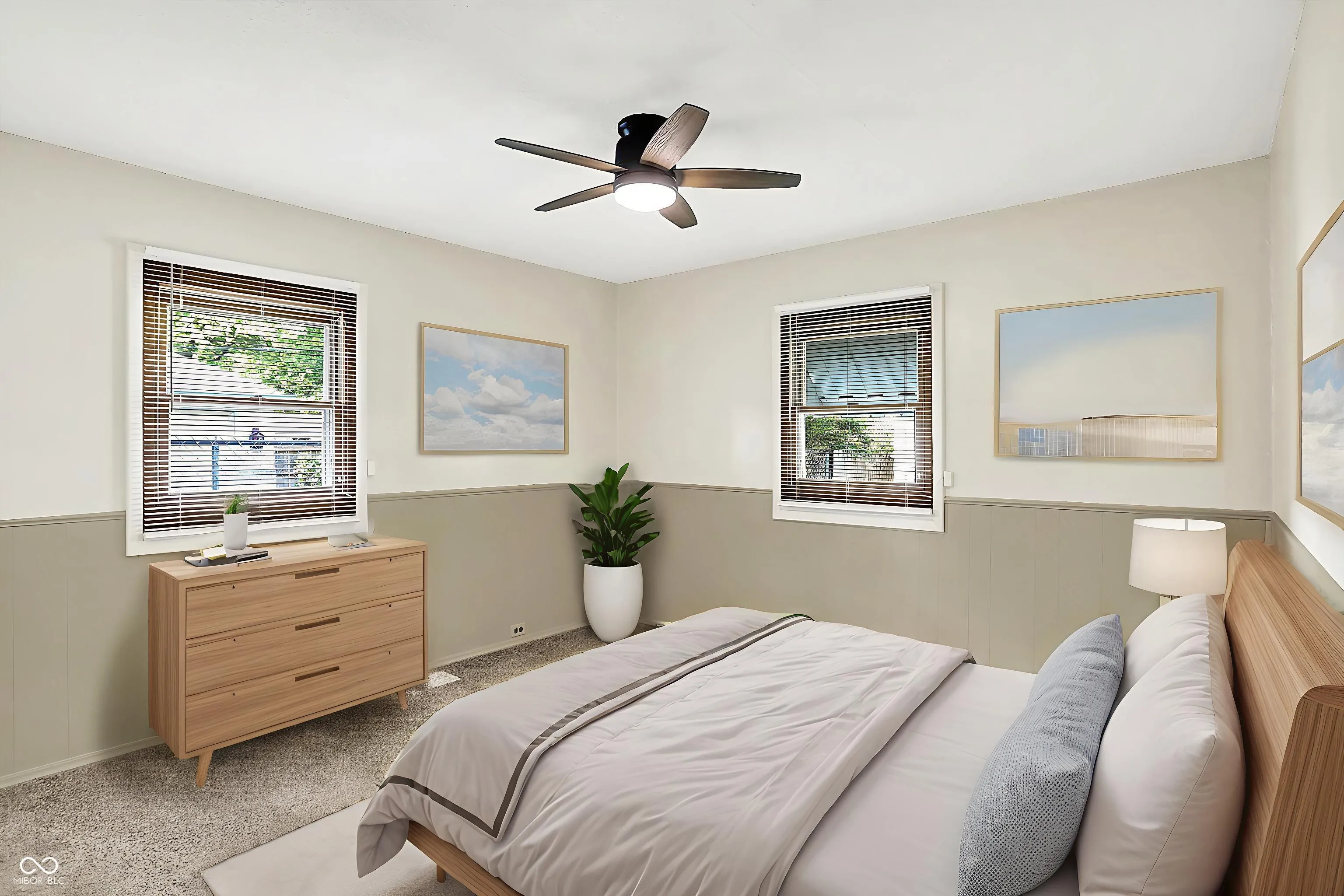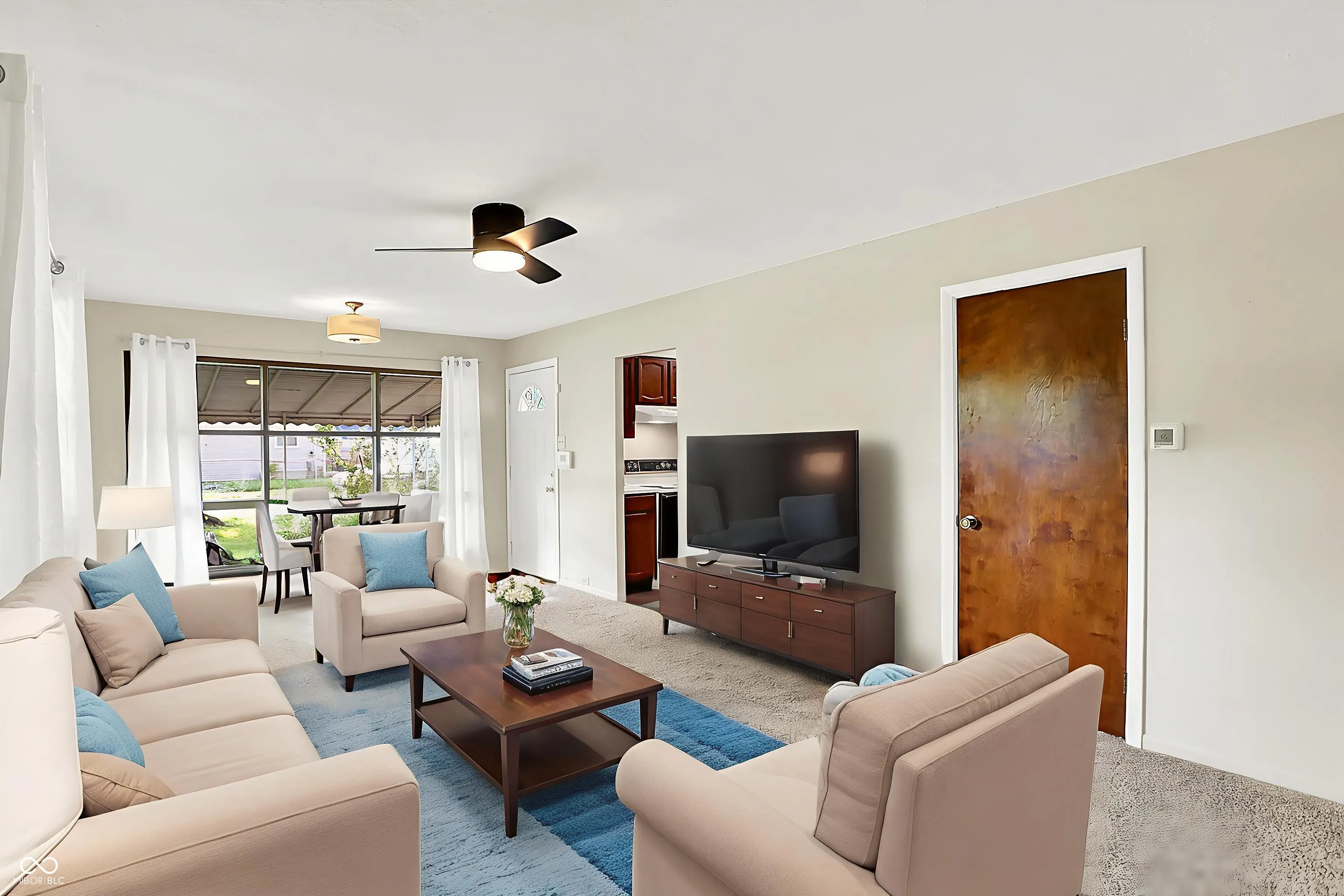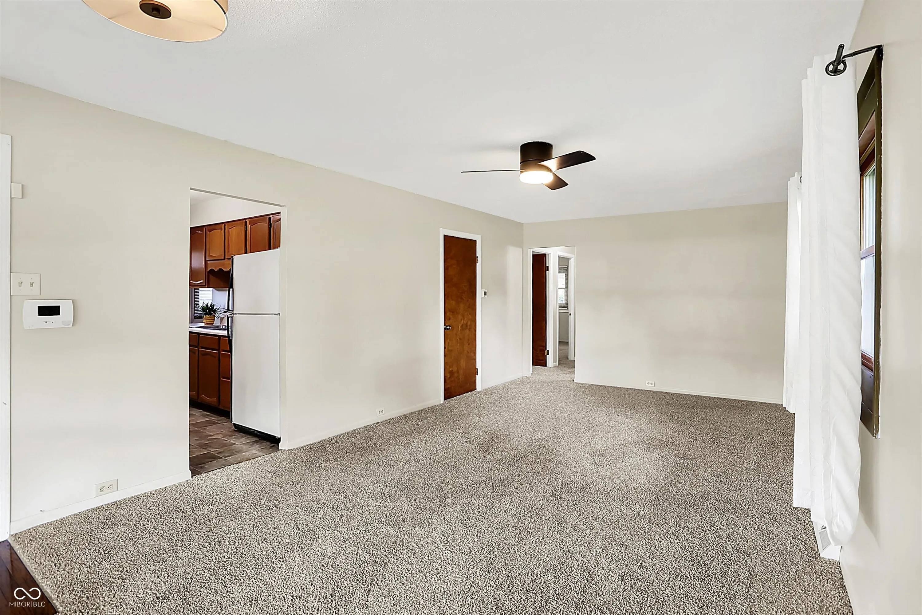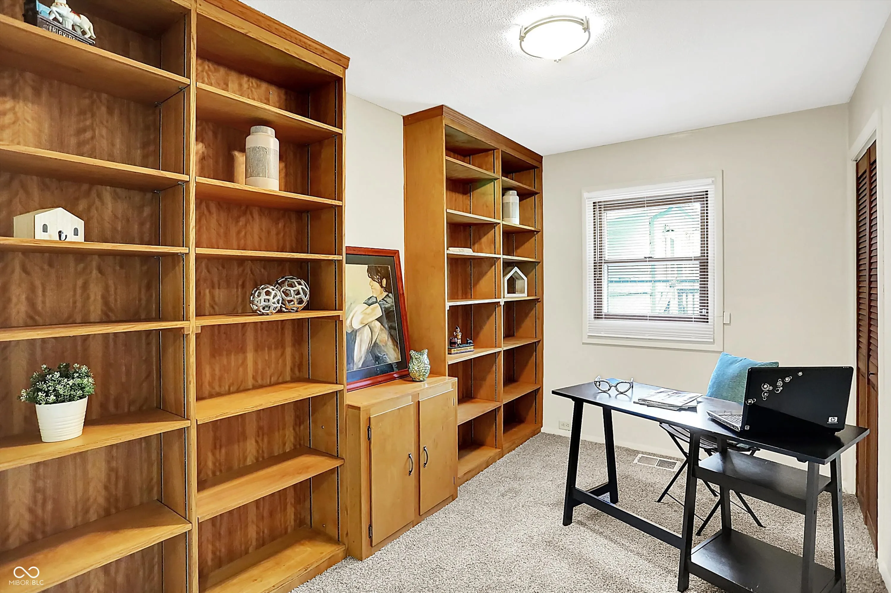 Nestled at 1868 N Hawthorne LN, INDIANAPOLIS, IN, this single-family residence is located on a large corner lot in the Community Heights neighborhood. The charming covered front porch, open patio, and beautiful landscaping invite you into this mid century bungalow. With 960 square feet of living area, the residence offers a comfortable layout featuring a living room/dining combination, three bedrooms, kitchen and bathroom providing ample space for rest and relaxation. One bedroom features built-in bookcases and is currently staged as a private office. The home has new carpet (hardwood floors under all the carpet), new light fixtures and ceiling fans, and fresh paint throughout. Resting on a generous 10237 square foot lot, this property provides an expansive outdoor canvas for creating your private oasis. Picture cultivating a vibrant garden, designing an entertainment area, or simply enjoying the serenity of your own yard. The possibilities are as vast as your imagination. Built in 1952, this one-story home offers a glimpse into the charm of mid-century architecture. This INDIANAPOLIS residence is conveniently located near I-70, with easy access to downtown and all the dining and shopping that the Irvington neighborhood has to offer.