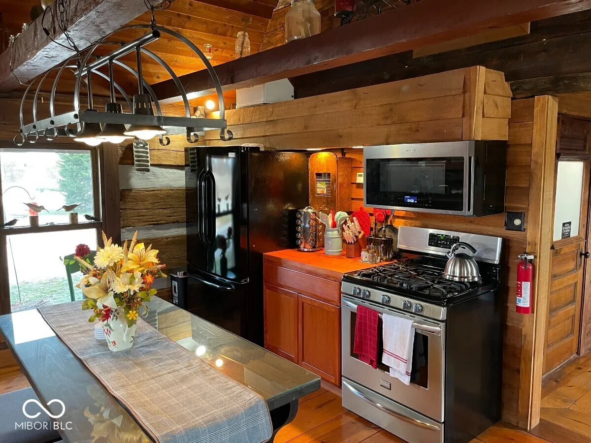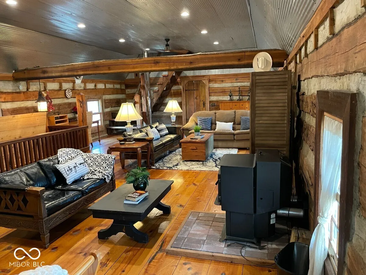 1866 Hand hewn log cabin that is a one of a kind estate in the country. The “Red Rose Ranch” sits on two lots for a combined 5 acres, originally built in 1866, but moved to this location in 2001. Three levels with a combined 4000 sq. ft. Three individual log cabins were combined to make one big beautiful and unique home. Custom touches are everywhere from the custom built kitchen cabinets to the custom made antique hardware on the doors. Oriented to see beautiful sunrises in the morning and sunsets in the evening. Also includes a 70×50 handcrafted event barn, which has hosted many weddings, graduations, and other events. Small orchard with apple and peach trees. Creek runs across the lower portion of the property. A one of a kind peaceful retreat with plenty of room to breathe and relax.