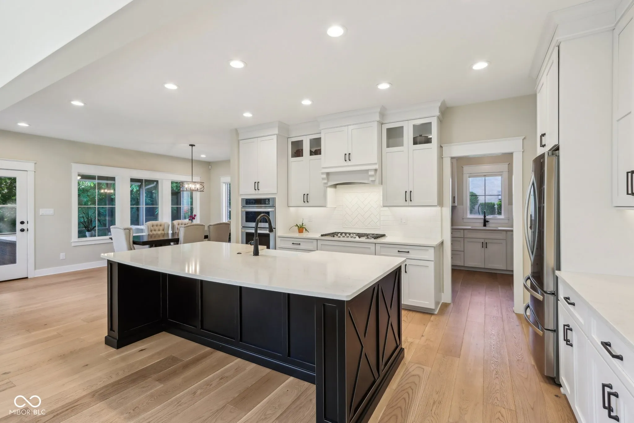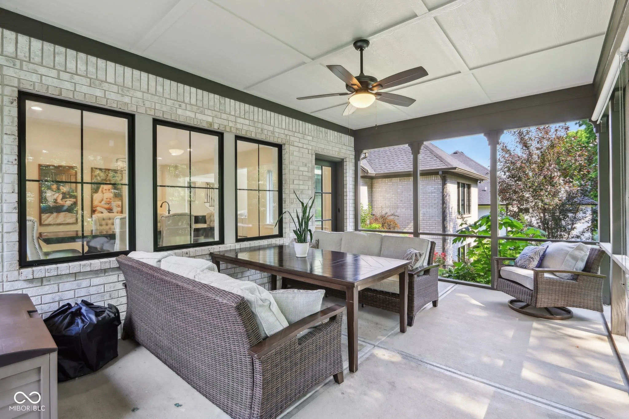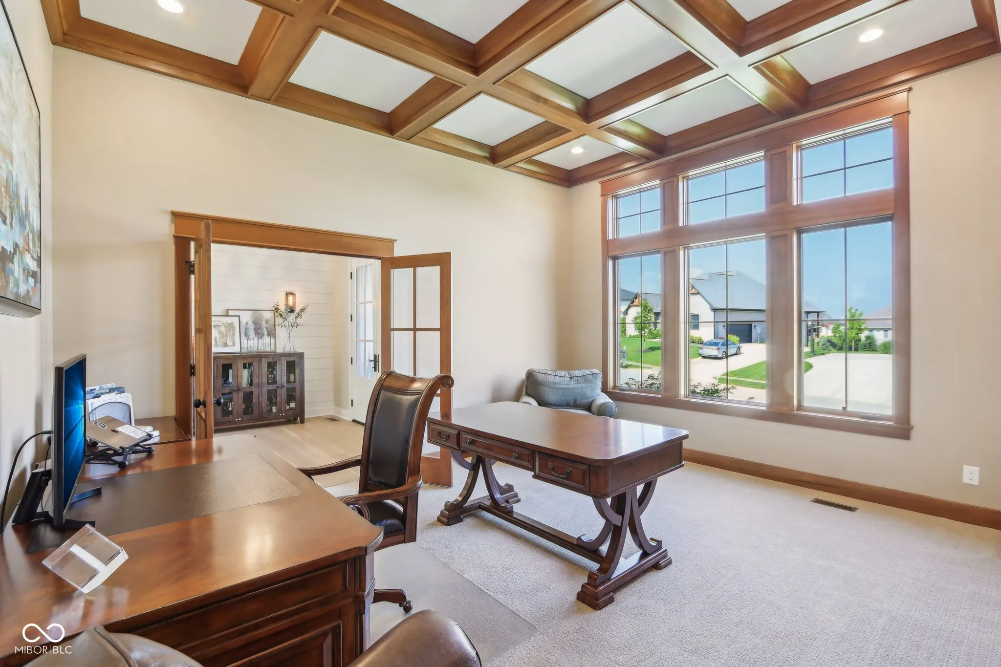 Welcome to this stunning all-brick masterpiece featuring exceptional craftsmanship, showcasing custom finishes and thoughtfully designed trim that elevate every room into a sophisticated living space. Each detail, from the coffered ceilings to the built-in bookcases, reflects a meticulous attention to quality and style, making this residence a true standout. Boasting 4 bedrooms, 3.5 baths, and a serene tree-lined lot, this home offers both elegance and functionality. The main level features gorgeous wood flooring, a family room with vaulted ceilings, built-in shelving anchoring a cozy gas fireplace, and expansive windows overlooking the private backyard. The chef’s kitchen sparkles with its large center island with apron sink, Quartz countertops, and soft-close custom cabinetry set in neutral tones accented with classic tile backsplash design. A butler’s pantry with a prep sink, coffee station, and wine fridge complete the space. A private office with french doors, coffered ceilings, and built-in bookcases adds sophistication. A thoughtfully designed drop zone and main floor laundry room enhance convenience. The main level owner’s suite impresses with a tray ceiling, custom-built closet, spa-like bath with a freestanding tub with filler and hand shower, spacious tiled shower w/ niches, dual vanities, and private water closet. Wide open wood staircase leads to additional spacious bedrooms with walk-in closets, and a large full bath. The daylight-filled basement includes oversized windows, a large fourth bedroom with an ample sized closet, a full bath, and abundant storage room. Outside, enjoy the screened porch, private tree lined yard in a picturesque setting. This exquisite home truly offers a perfect blend of luxury and practicality.