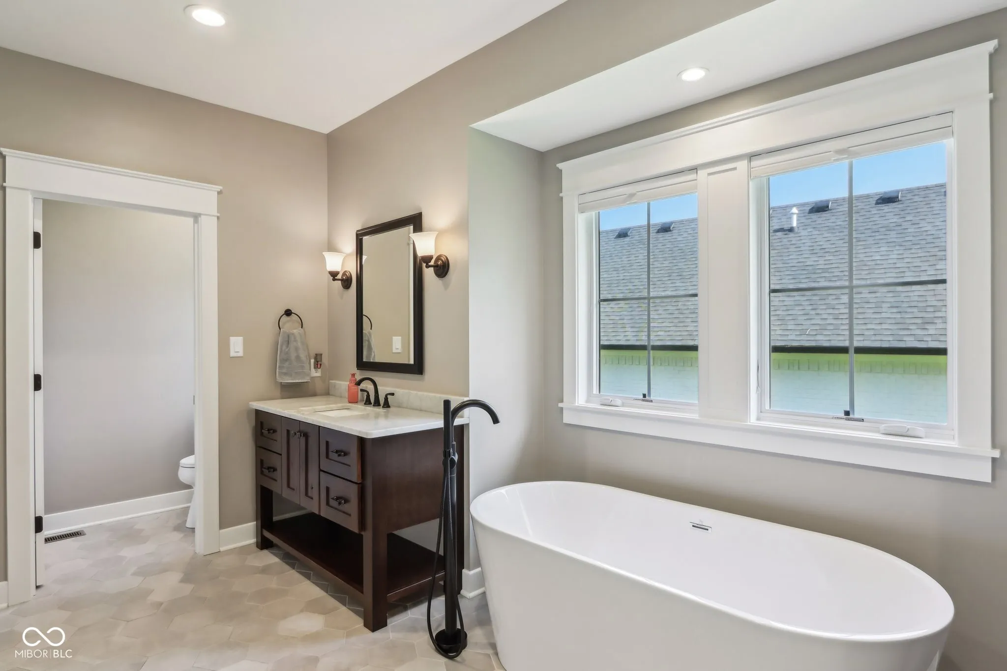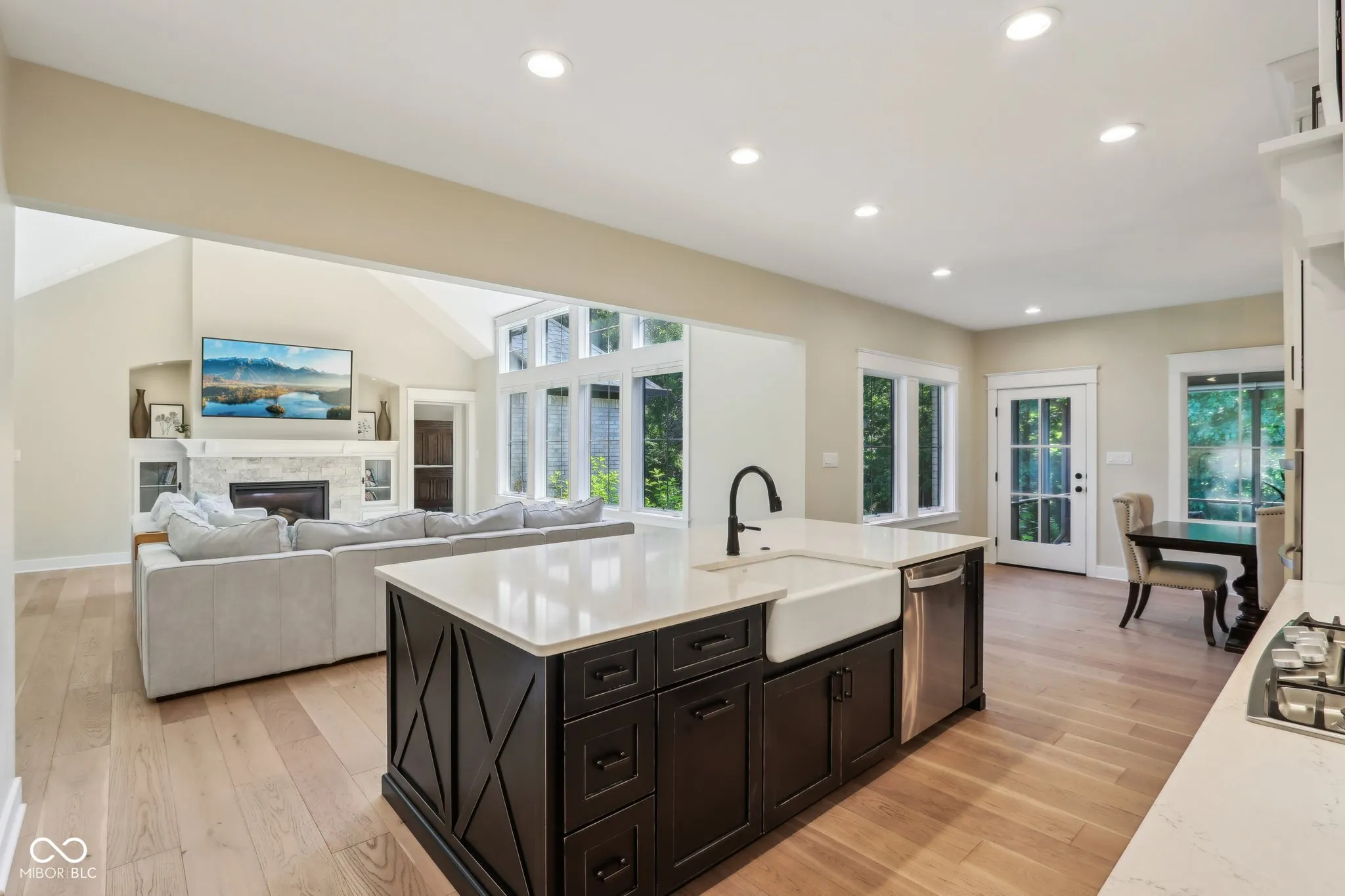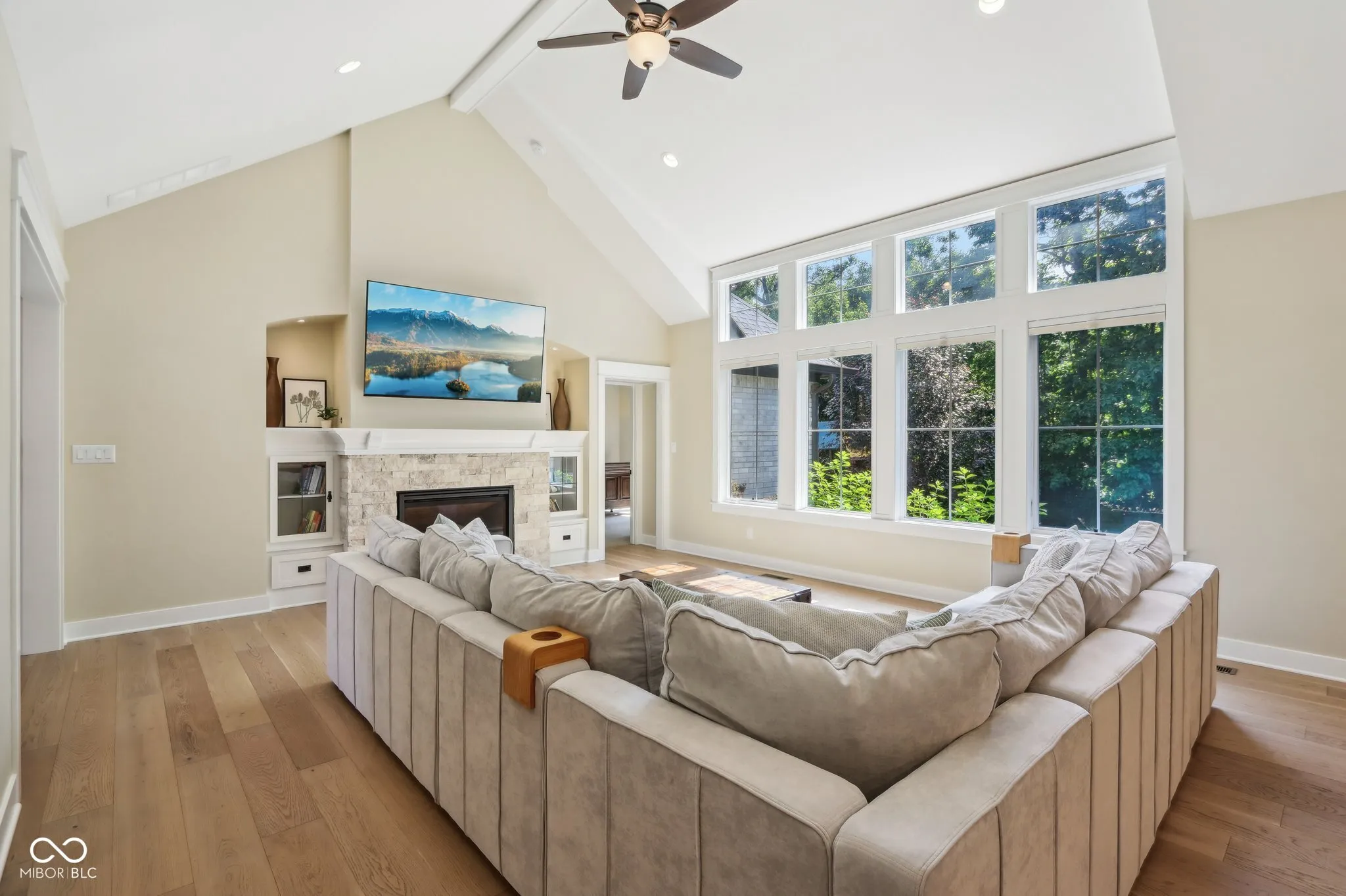 Welcome to this stunning all-brick masterpiece featuring exceptional craftsmanship, showcasing custom finishes and thoughtfully designed trim that elevate every room into a sophisticated living space. Each detail, from the coffered ceilings to the built-in bookcases, reflects a meticulous attention to quality and style, making this residence a true standout. Boasting 4 bedrooms, 3.5 baths, and a serene tree-lined lot, this home offers both elegance and functionality. The main level features gorgeous wood flooring, a family room with vaulted ceilings, built-in shelving anchoring a cozy gas fireplace, and expansive windows overlooking the private backyard. The chef’s kitchen sparkles with its large center island with apron sink, Quartz countertops, and soft-close custom cabinetry set in neutral tones accented with classic tile backsplash design. A butler’s pantry with a prep sink, coffee station, and wine fridge complete the space. A private office with french doors, coffered ceilings, and built-in bookcases adds sophistication. A thoughtfully designed drop zone and main floor laundry room enhance convenience. The main level owner’s suite impresses with a tray ceiling, custom-built closet, spa-like bath with a freestanding tub with filler and hand shower, spacious tiled shower w/ niches, dual vanities, and private water closet. Wide open wood staircase leads to additional spacious bedrooms with walk-in closets, and a large full bath. The daylight-filled basement includes oversized windows, a large fourth bedroom with an ample sized closet, a full bath, and abundant storage room. Outside, enjoy the screened porch, private tree lined yard in a picturesque setting. This exquisite home truly offers a perfect blend of luxury and practicality.
