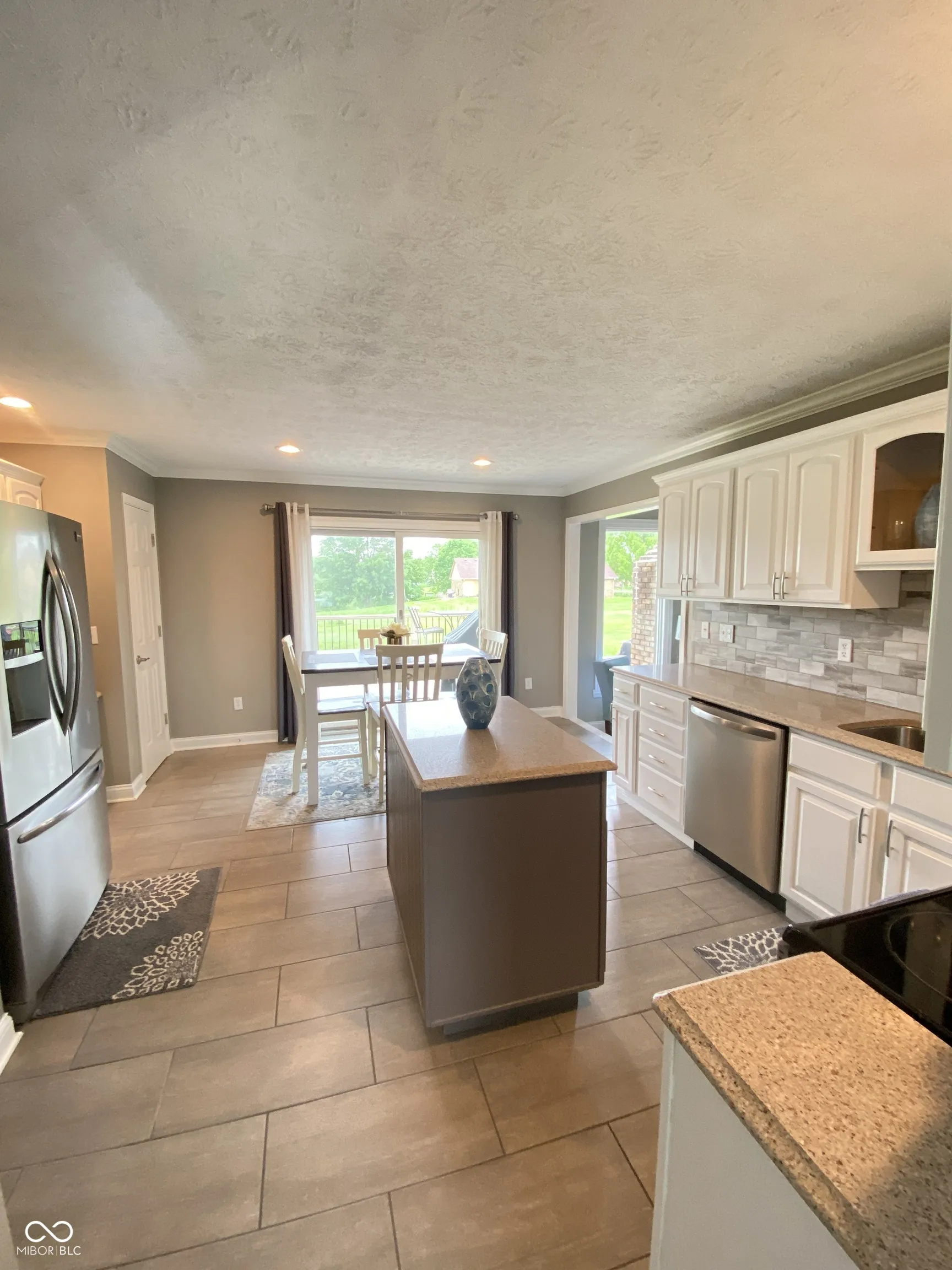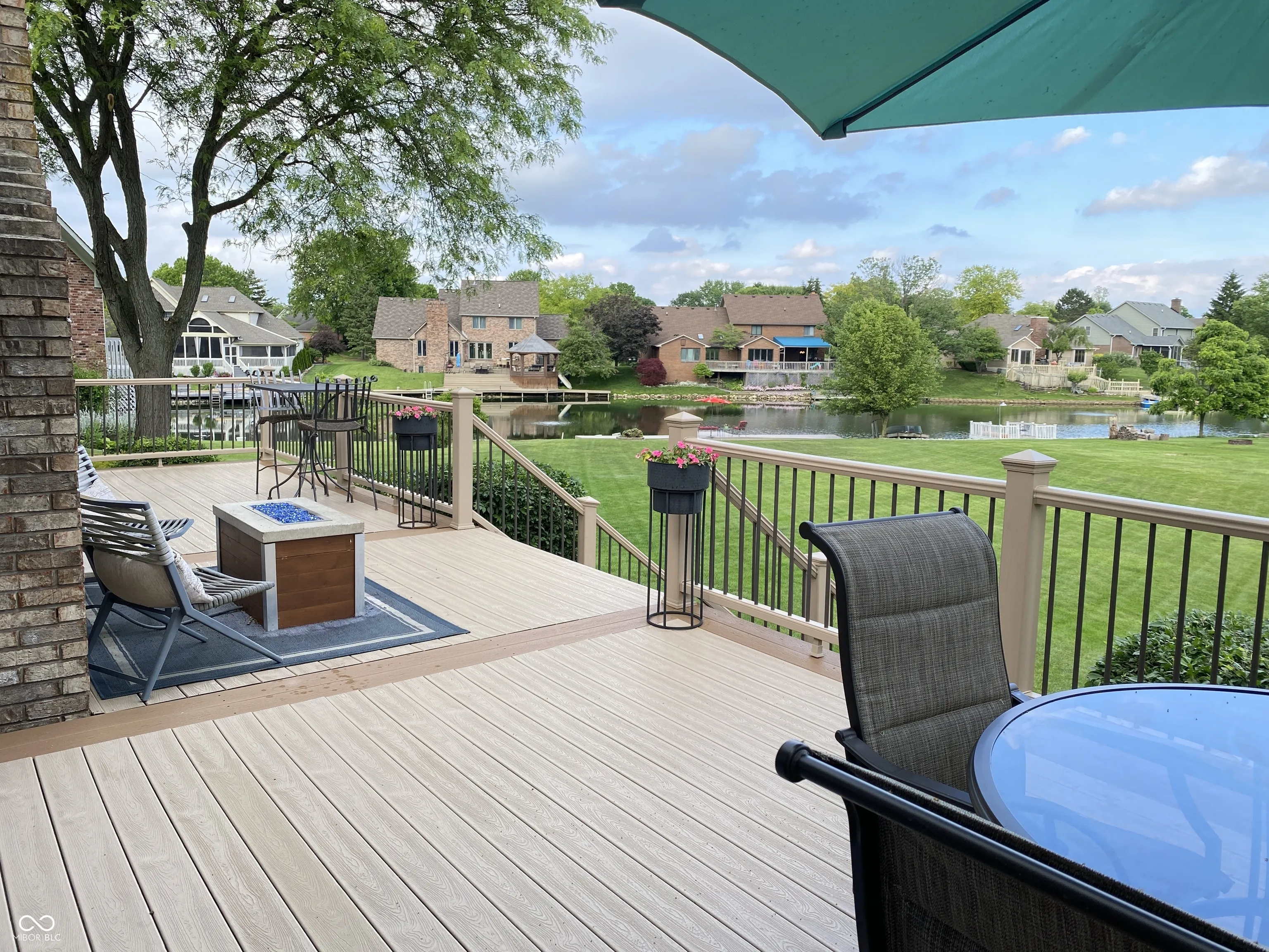 Wow! This 3 bedroom 2 bath waterfront home not only has gorgeous curbside appeal, but is also located on a cul-de-sac lot with full irrigation system! Enjoy afternoons on the 500+ square foot deck overlooking the private 7-acre stocked lake. Take a ride from your dock on a small fishing boat that comes with the house. This contemporary all-brick, custom built ranch home boasts a split floor plan with a bright, open feel, extra large sunken great room, and plenty of updates. It’s an absolute gem of a home located in Mt Vernon schools! As you walk through the front door you have a tiled entry that leads you into the great room with vaulted ceilings and plenty of natural light with perfect views of the lake. Off of the great room there is a bar area with sink and small fridge. The sunroom has plenty of windows with great views. The large kitchen has tile flooring, a center island and coffee bar. The Frigidaire Gallery SS appliances includes the electric range with double oven, micro-hood, large refrigerator with pull out freezer and a dishwasher. The dining room (which is currently used as a sitting room) has tile flooring and a tray ceiling. In this split floor plan the master bedroom has engineered flooring with a large walk-in closet. The master bath has double sinks, whirlpool tub and separate walk-in shower. A home office is in the same hallway and has engineered flooring. The other two bedrooms are the same size with engineered hardwood flooring and plenty of closet space. A laundry room with tiled flooring and cabinets is off of the 2 car finished garage with bump out for extra space. Need more storage? The garage has over head storage above the garage door as well as the pull down attic stairs leading to more storage area. The 520 sq/ft maintenance free deck can be accessed via the kitchen, bar area or sunroom. There is natural gas hook ups for the grill and fire pit. Enjoy the views of the .68 acre lot and the lake. It’s a mini-vacation right in your backyard.