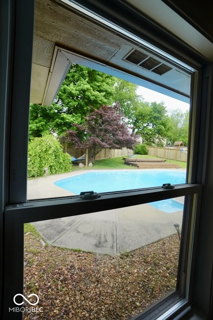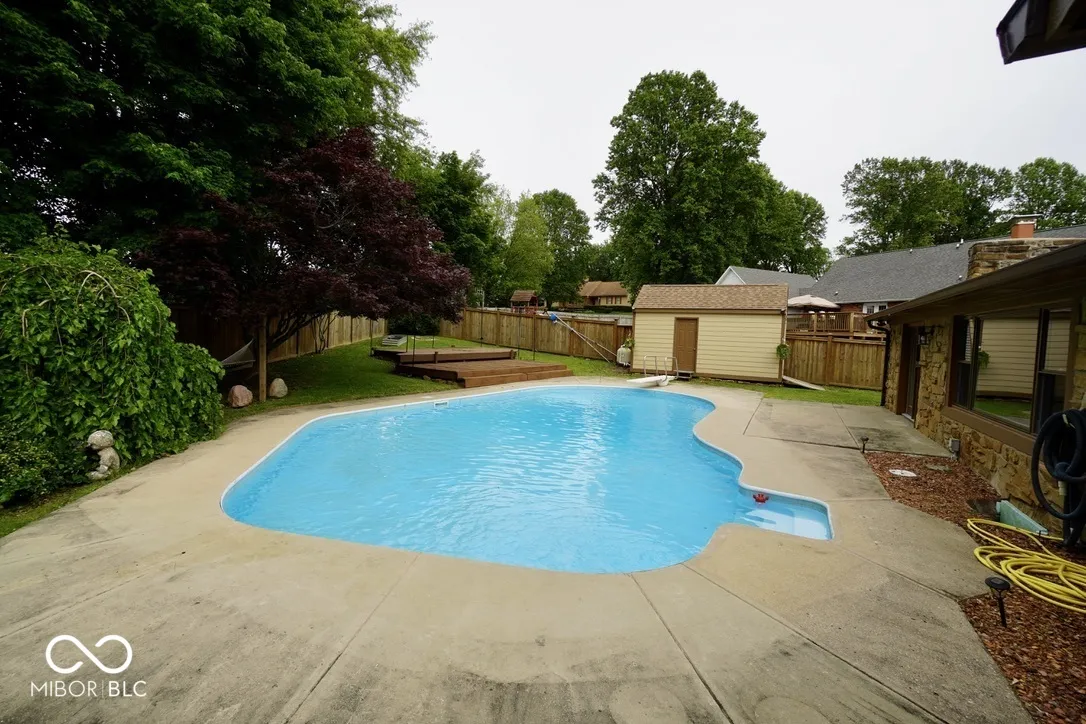 Dive into Your Private Oasis Experience the epitome of relaxation and entertainment with your very own sparkling concrete pool, the centerpiece of this meticulously maintained ranch-style home. Surrounded by mature trees and vibrant raised flower beds, the pool area offers unparalleled privacy and a resort-like ambiance, perfect for both tranquil afternoons and lively gatherings. Thoughtful Updates & Modern Comforts Since 1999, the dedicated homeowners have lovingly cared for and enhanced this property, ensuring it meets the highest standards of comfort and style. Recent upgrades include: 2025: New vanities, countertops, fixtures, and fresh interior paint. 2024: Installation of energy-efficient windows and service doors, exterior paint refresh, and tankless water heater. 2019: New roof and gutters, providing peace of mind for years to come. Additional Features: Modern 200-amp electrical service, new dishwasher and range, gas furnace and central air system (2014), luxury vinyl plank flooring throughout, new carpet in all bedrooms and office/dining area, updated ceiling fans and lighting fixtures, freshly painted cabinets, and new door hardware. Outdoor Enhancements Mini Barn: A 2-year-old structure offering additional storage or workspace. Landscaping: Well maintained with privacy fence, mature trees, and raised flower beds, creating a serene outdoor environment. Crawl Space: Freshly conditioned for optimal home health and energy efficiency. Interior Highlights Primary Suite: Features dual closets (“his and hers”) and a newly tiled walk-in shower. Living Spaces: Open-concept layout with a cozy masonry fireplace, ideal for Indiana winters. Flooring: Durable luxury vinyl plank flooring complemented by plush new carpeting in bedrooms and office/dining area. Community & Location Situated in the desirable MARK II 2nd subdivision, this home offers the tranquility of a well-established neighborhood without the constraints of an HOA