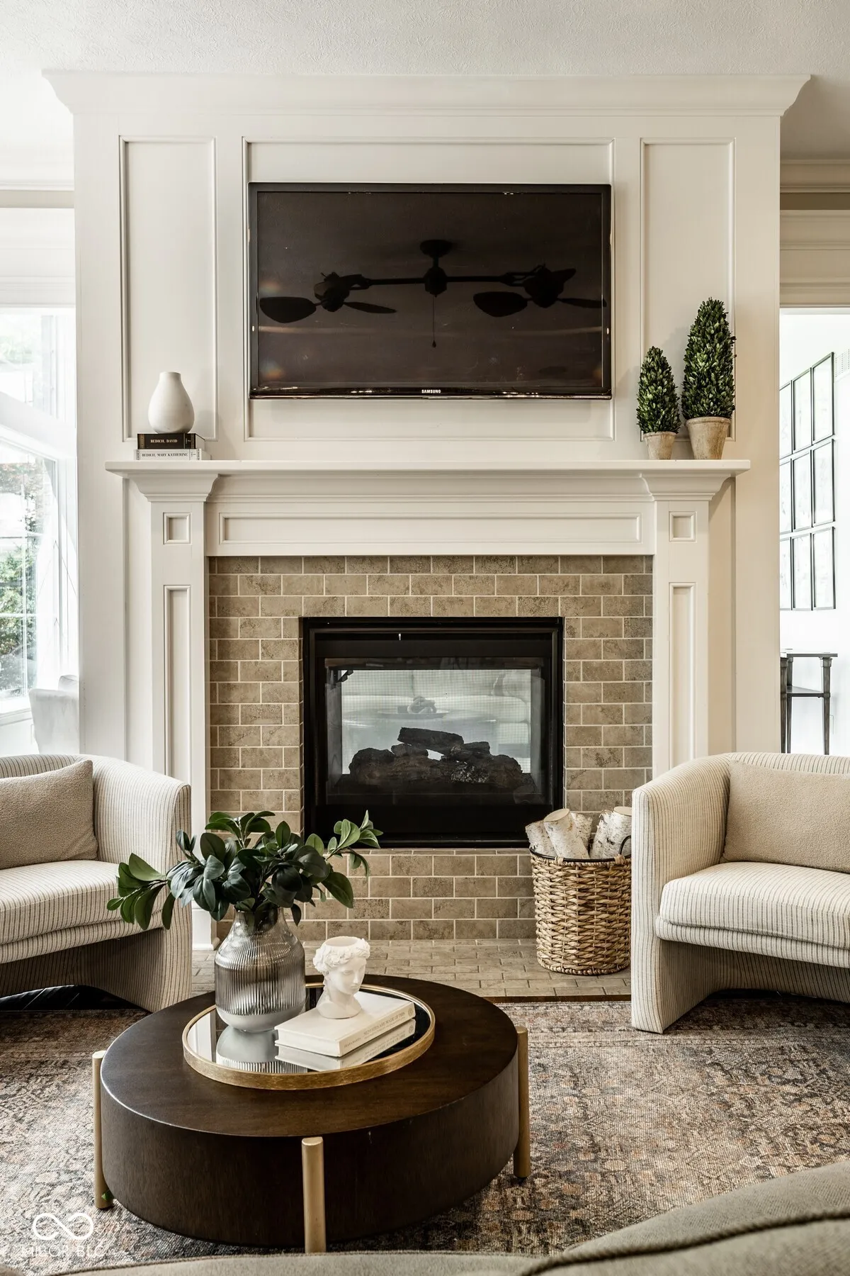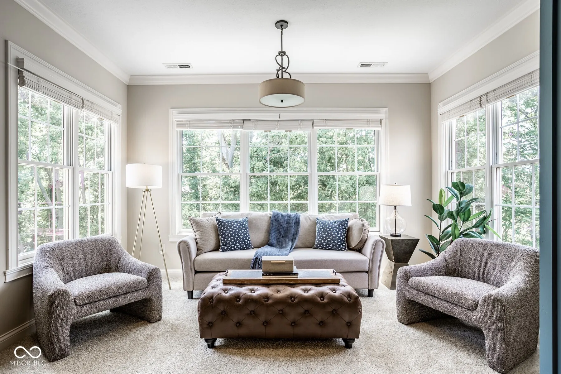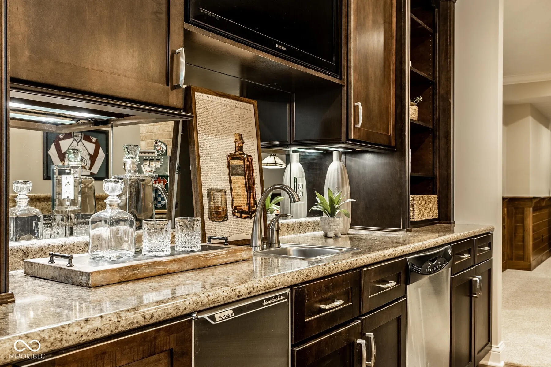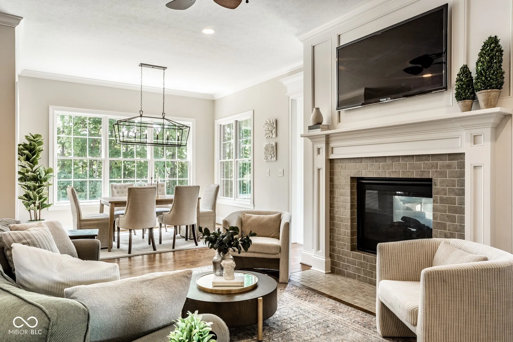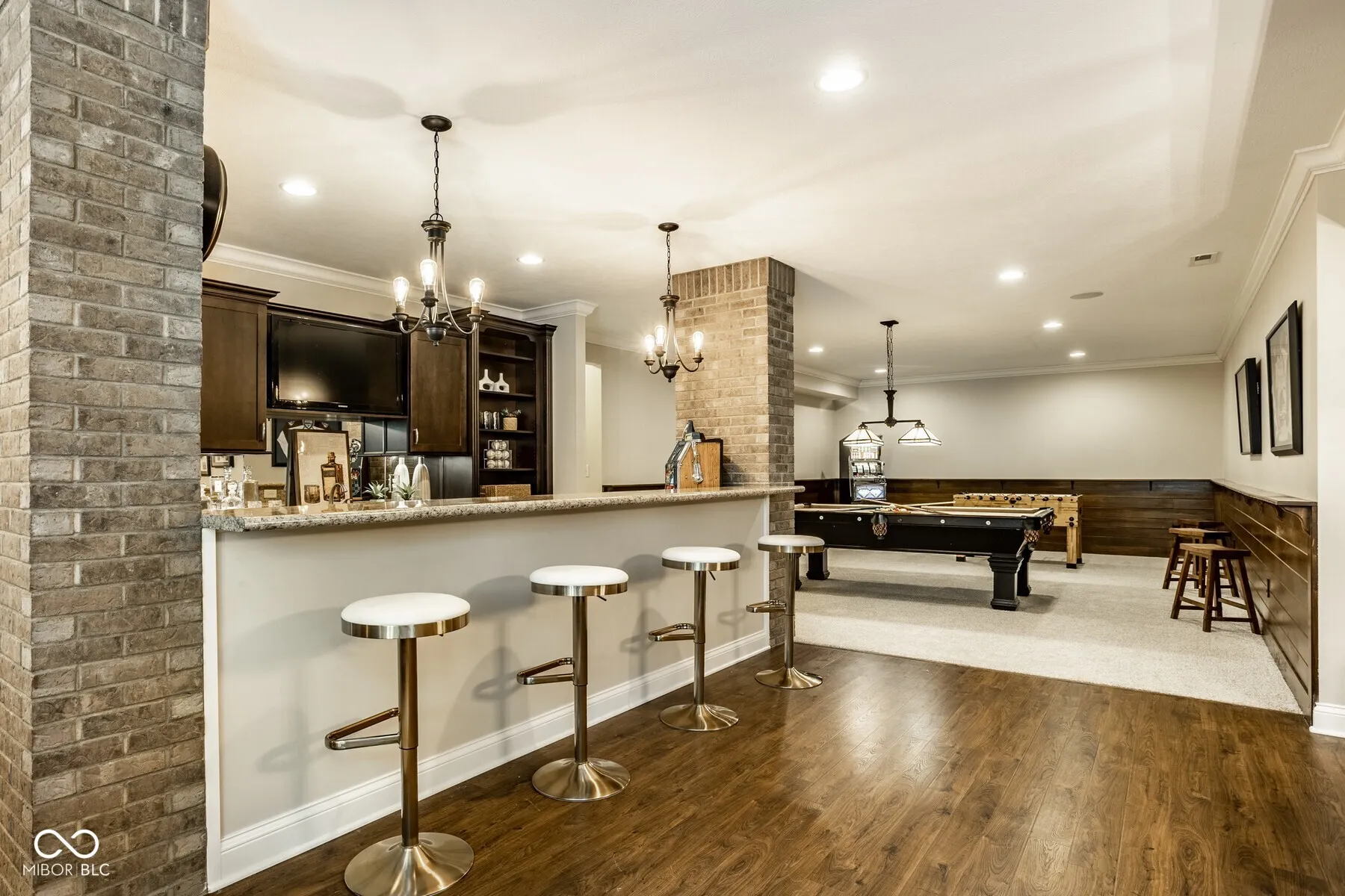 Nestled in the heart of West Carmel’s High Grove neighborhood, this exceptional 6,000 sq ft custom home by Shamrock Builders offers the perfect blend of craftsmanship, functionality, & timeless design. Built in 2010 & situated on a private, tree-lined lot, this 5-bedroom, 4.5-bath residence is thoughtfully finished with luxury details throughout. The main level features solid 3/4″ oak hardwood floors, solid wood interior doors, & extensive custom millwork. The dramatic great room showcases a cathedral coffered ceiling, floor-to-ceiling windows, & a dual-sided fireplace that connects seamlessly to the hearth room & spacious eat-in kitchen. Designed for serious cooking & entertaining, the chef’s kitchen includes a large center island, 6-burner gas Dacor cooktop, double Thermador ovens, a walk-in pantry, & walks out to a covered Trex deck-ideal for enjoying serene views of the private, tree-lined backyard. Additional main level highlights include a formal dining room with custom trim, a stylish home office, & a well-appointed mudroom with built-in lockers & storage. Upstairs, you’ll find four generously sized bedrooms, 3 baths, including a spacious primary suite with an adjoining sitting area, offering ample space, & abundant natural light. Also on the second floor is a large laundry room & semi-finished attic space. The finished daylight basement features exposed brick accents, a full bar with dishwasher, generous rec space, a guest bedroom with full bath, & abundant storage. The oversized 3.5+ car garage includes three doors with 9-foot openings & space to accommodate four vehicles or additional storage. This home is a rare opportunity-blending enduring quality & custom detail in Carmel Clay schools. Every inch of this home was designed & finished to stand the test of time.