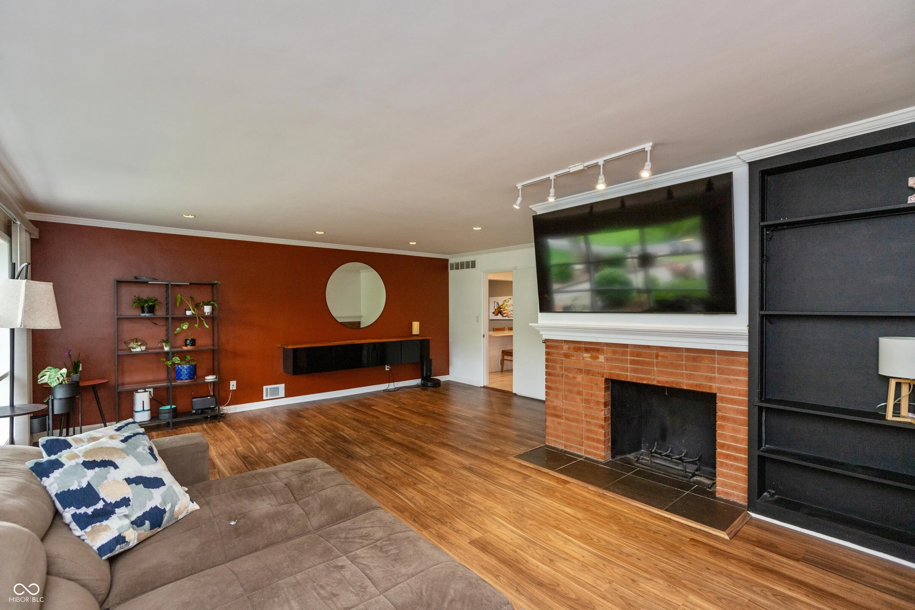 Enjoy the park-like setting in desireable Sunset Parkway with this 3 BR, 2 BA stone and wood ranch home on a large tree-shaded lot; tiled entry leads to a spacious living room highlighted by a brick wood-burning fireplace and vinyl plank flooring; applianced kitchen features vintage Youngstown cabinetry, subway tile backsplash overlooks a spacious family/dining area with vaulted ceiling, skylights and breakfast bar; primary bedroom with oak hardwood flooring; middle bedroom with brick fireplace and built-in bookshelves could be an in-home office; hall bath features a double-sink vanity and whirlpool tub/shower; BASEMENT offers an additional family/game room with daylight windows plus great storage space and potential living area; 10×15 screened porch leads to a privacy-fenced backyard including a generous-sized deck and swimming pool area plus outdoor kitchen ideal for entertaining guests; 1-car attached garage with opener; Emerson Elementary School district.
