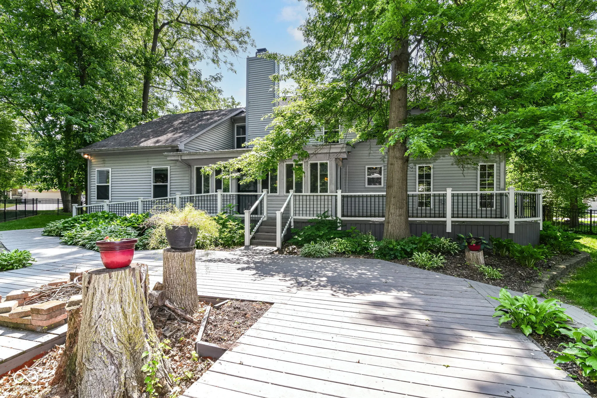 Nestled in the desirable city of Fishers, this single-family residence presents an attractive wooded property in great condition.The living room offers a comforting space, enhanced by the warmth of a fireplace, promising cozy evenings and inviting gatherings. The kitchen, truly the heart of the home, is equipped with a backsplash, an extra large peninsula, and granite countertops, combining functionality with style for a delightful culinary experience. Retreat to the bedroom, where an ensuite bathroom provides a private oasis, ensuring a serene and convenient start and end to each day. The bathroom itself becomes a sanctuary with its double vanity, tiled walk-in shower, and tile tub, offering a spa-like atmosphere. The two primary bedrooms allow flexibility for family visits or in-laws. The sunroom provides a nice escape, inviting moments of relaxation and enjoyment of the surrounding landscape.The property boasts five bedrooms and 3 full baths. The large first floor living area provides ample space for comfortable living. There’s also a basement that can be a playroom or another entertainment area. The house also includes a large laundry room right off of the garage, adding to the home’s convenience. A walk-in closet offers generous storage, keeping belongings organized and easily accessible. Step outside onto the deck and enjoy the expansive .40 acre lot, perfect for outdoor entertaining or simply unwinding in your own private retreat. This residence offers a harmonious blend of classic charm and modern living.