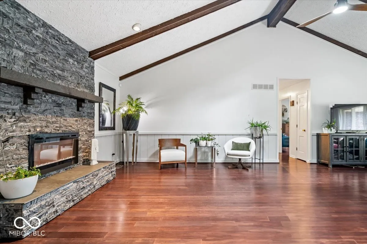 A place to call home! 434 Verwood Court is one of those homes that feels like a quiet discovery. Nestled in a peaceful cul-de-sac and surrounded by mature trees, this home backs to green space and a scenic walking trail that invites you to slow down, breathe deeper, and enjoy the rhythm of nature right in your own backyard! This 3-bedroom, 2-bath home, and 2-car attached garage blends comfort and charm with an open, airy layout. Vaulted ceilings with rich wood beams draw the eye upward as you enter the home, while beautiful hardwood floors run throughout the living space. The oversized Primary bedroom features an updated double vanity ensuite bath. The secondary bedrooms are large and offer great storage. The natural light in this home is soft and constant, creating a sense of ease from the moment you step inside. The open connection from the updated kitchen, dining area and living space is great for entertaining! Outdoors, the experience continues. The front yard is wide and welcoming, with an opened porch that feels like it belongs in a storybook. In the back, a large deck stretches toward the trees, offering the perfect spot for quiet mornings or hosting under the stars. The landscaping has been masterfully designed, transforming the yard into a private, living work of art. What makes this home truly rare is the convenient location. Tucked away between Indianapolis and Avon, this is a place where opportunity and tranquility meet. 434 Verwood Court isn’t just where you live. It’s where you exhale.