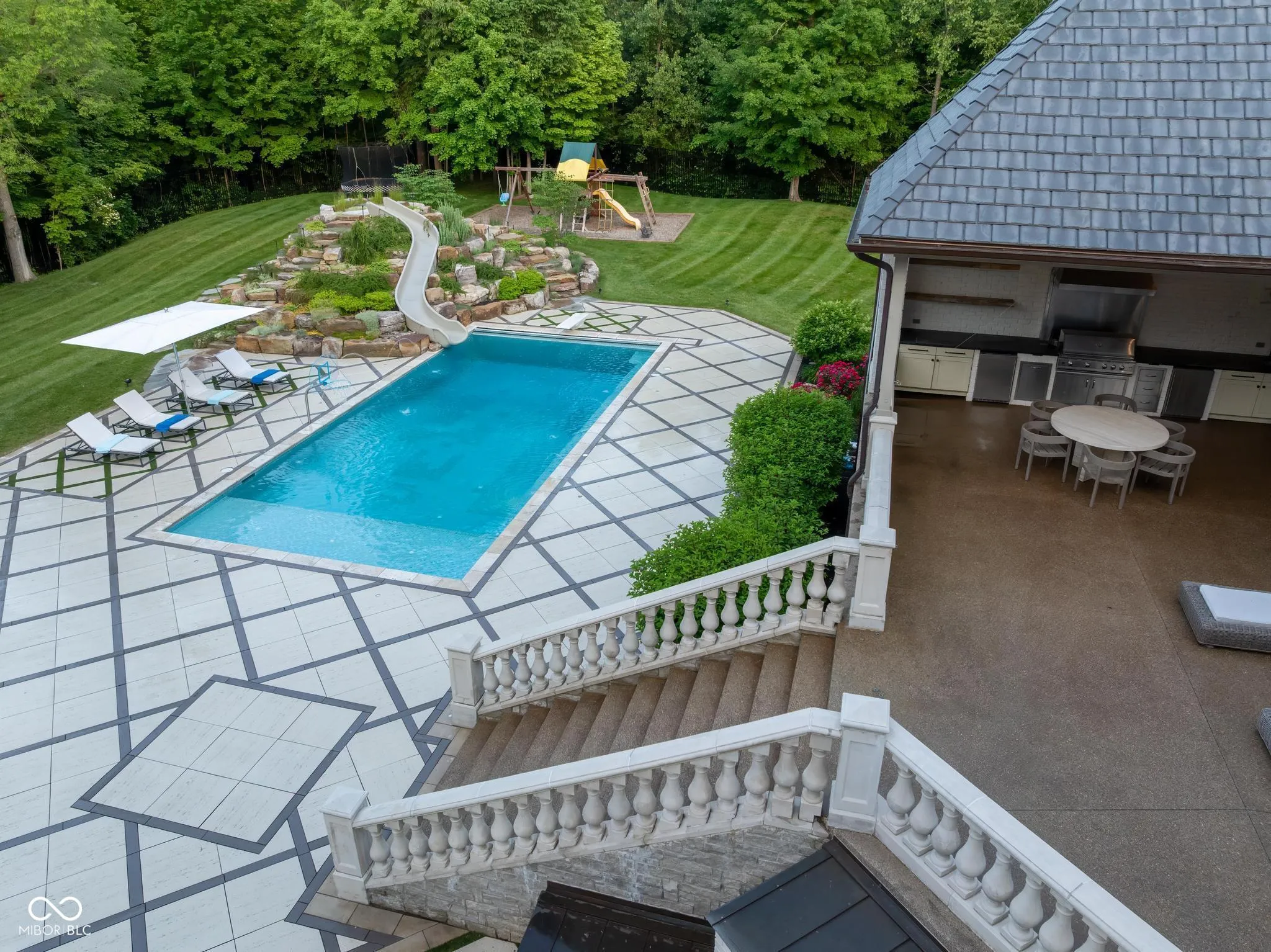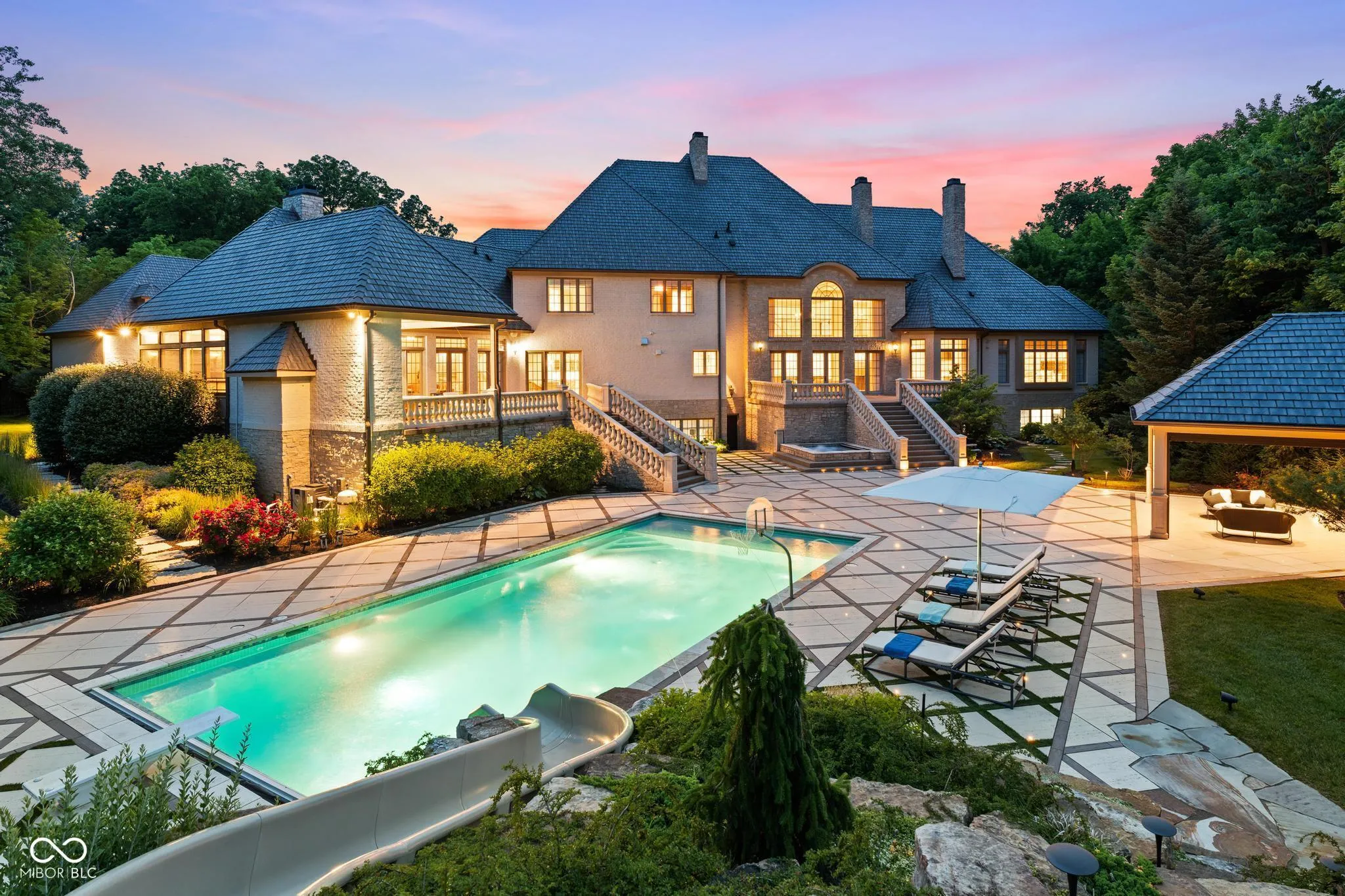 Welcome to 11101 Hawthorn Ridge-a true custom masterpiece tucked behind private gates on 6.81 acres in the prestigious Hamilton Proper community. Designed for privacy, comfort, and elevated living, this estate blends timeless architecture with modern upgrades and a resort-style experience rarely seen in Central Indiana. A dramatic two-story great room with floor-to-ceiling windows greets you, alongside a grand formal dining area and a stunning gourmet kitchen-both beautiful and functional-ideal for daily living and entertaining. The main-level primary suite is a serene retreat with a sitting room, two-sided fireplace, full marble bath, dual walk-in wardrobes, and a private coffee bar. Upstairs, every bedroom includes motorized window coverings, updated lighting, and high-end finishes. A nanny suite also features a newly added closet. The home is fully integrated with a premium ELAN smart home system for lighting, video intercom, security, and remote access. Enjoy two three-season rooms-one with hanging beds and a TV-plus a home theatre, wine cellar, and new bunk room in the lower level. A luxury spa suite includes an endless pool, cold plunge, dry sauna, and space for yoga or massage. Outdoors, a rebuilt pool deck features techno block pavers, built-in lighting, a basketball hoop, slide, and tiled pool/spa. A built-in storage system blends seamlessly with the home’s exterior. Host year-round gatherings in the custom “Pizza Hut” with a Mugnani wood-burning oven from Italy, fireplace, TV, drop-down screens, heaters, and fans. Additional highlights include Brava faux slate roofing by Universal Roofing, copper gutters, lush landscaping, flagpole, and upgraded garages by California Closets-with shelving, cubbies, and a dog bath station. Both garages are freshly painted, and the gated entry now offers Summit app remote access. A rare blend of luxury, lifestyle, and craftsmanship-one of Fishers’ most extraordinary estates.