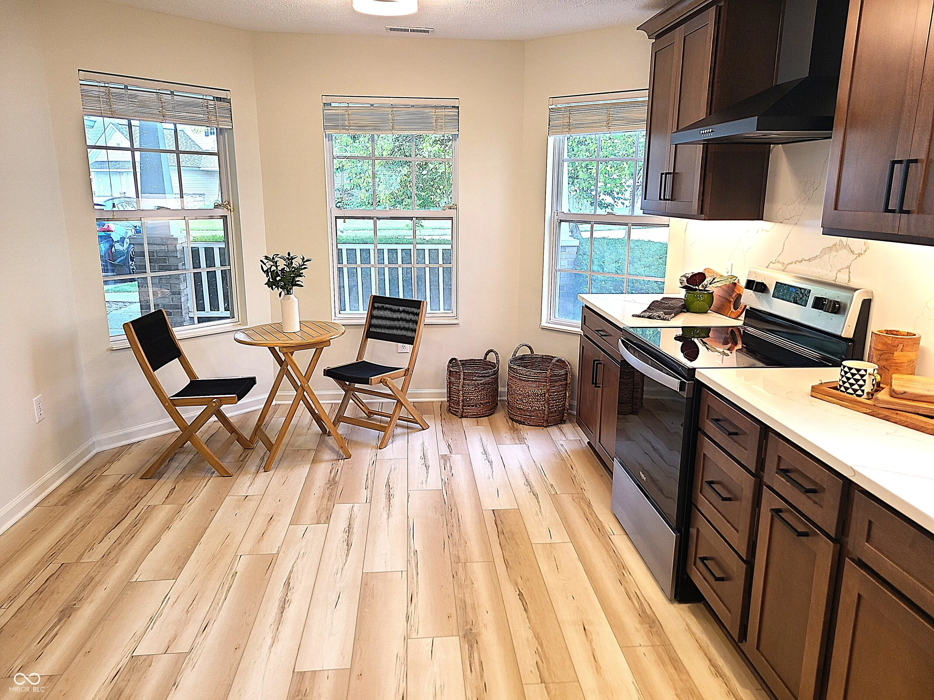 Full renovation by premium contractor, Chateau Kitchens & Renovations. Large welcoming front porch & entry foyer w/accent wall, new light wood style flooring leading to stunning floor to ceiling tile firepl, 2 skylites stream sunshine in to this home boasting high quality kitchen cabinets, 42″ wall units w/under cab lighting, quartz countertops & backsplash to ceiling on stove/range w/direct exterior vent, commercial style kit faucet+R-O water filtration & softener system, custom LED lighting opens to dining & grt rm accented by stained beam, cathedral ceiling, all new lighting & paint throughout. Stunning primary bedrm spa-like suite, features cathedral ceiling, custom roller style natural wood door into bath w/floating vanity w/dbl bowls, striking accent wall w/sconce lighting, walk-in shower in soothing Autumn Leaf print wall tile to ceiling & 2 shower heads, private toilet rm, 2 additional bdrms on main level, Laundry rm w/wall cab+shelving, washer & dryer, huge upper fam rm+4th bdrm or private study w/cathedral ceiling w/decor wood beam. Extend entertaining space w/screen porch & patio featuring privacy screens overlooking vista park-like setting backyard. Additional walk-in attic storage areas, sizable 2-car. Owner occupied buyer qualifies for Homestead exemption reducing the property tax amount substantially.