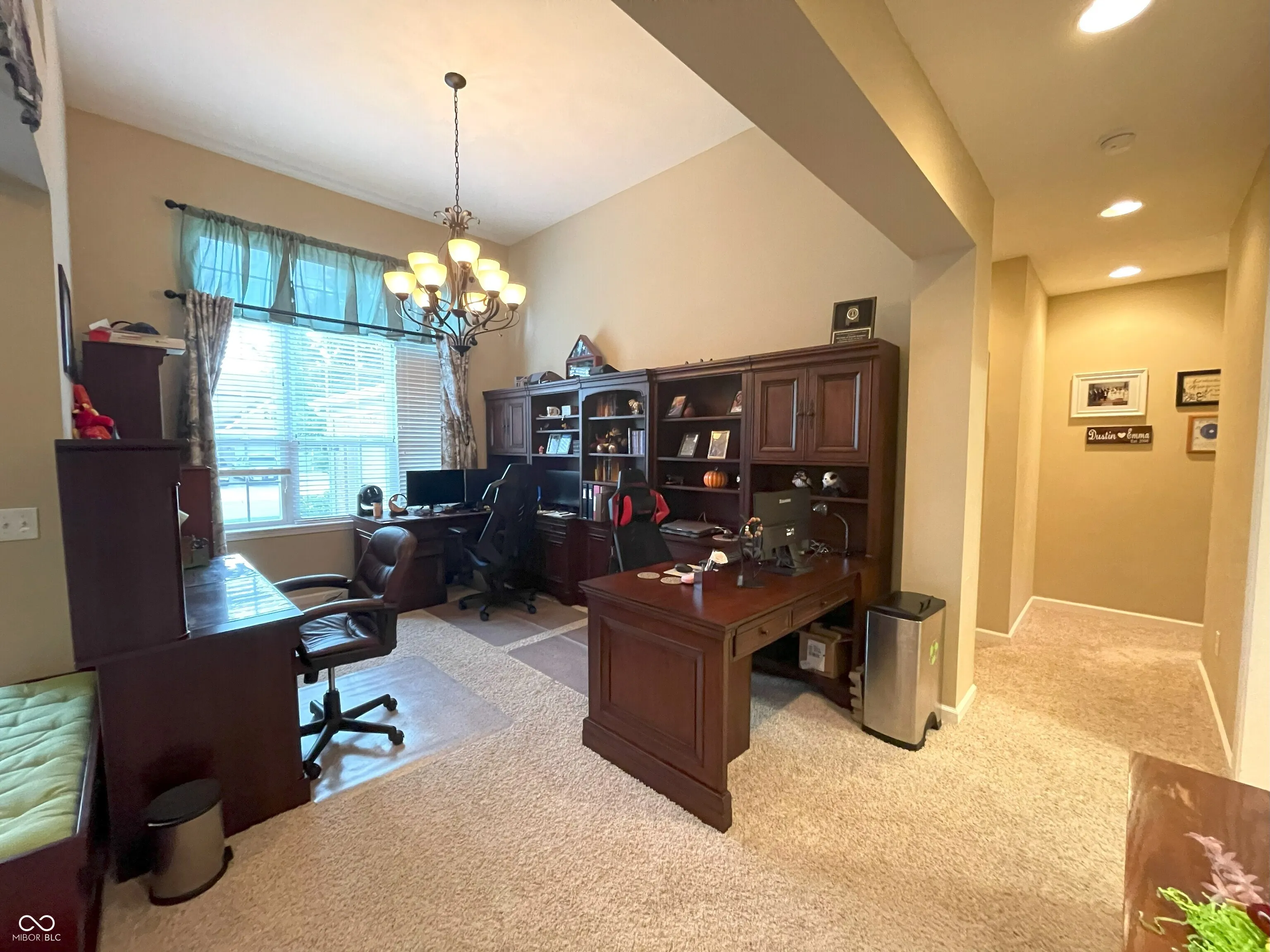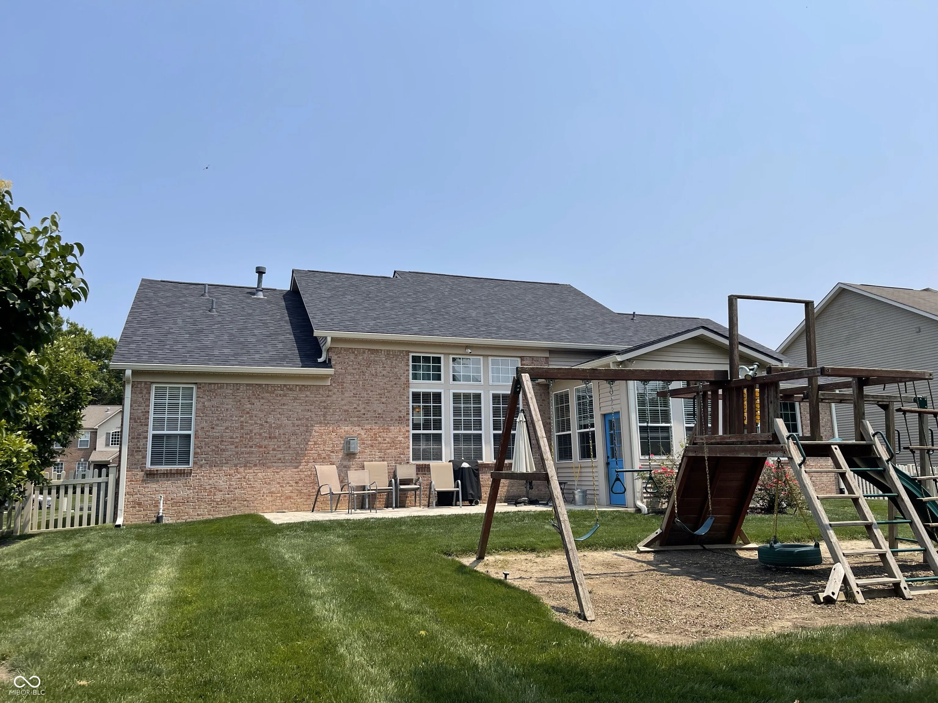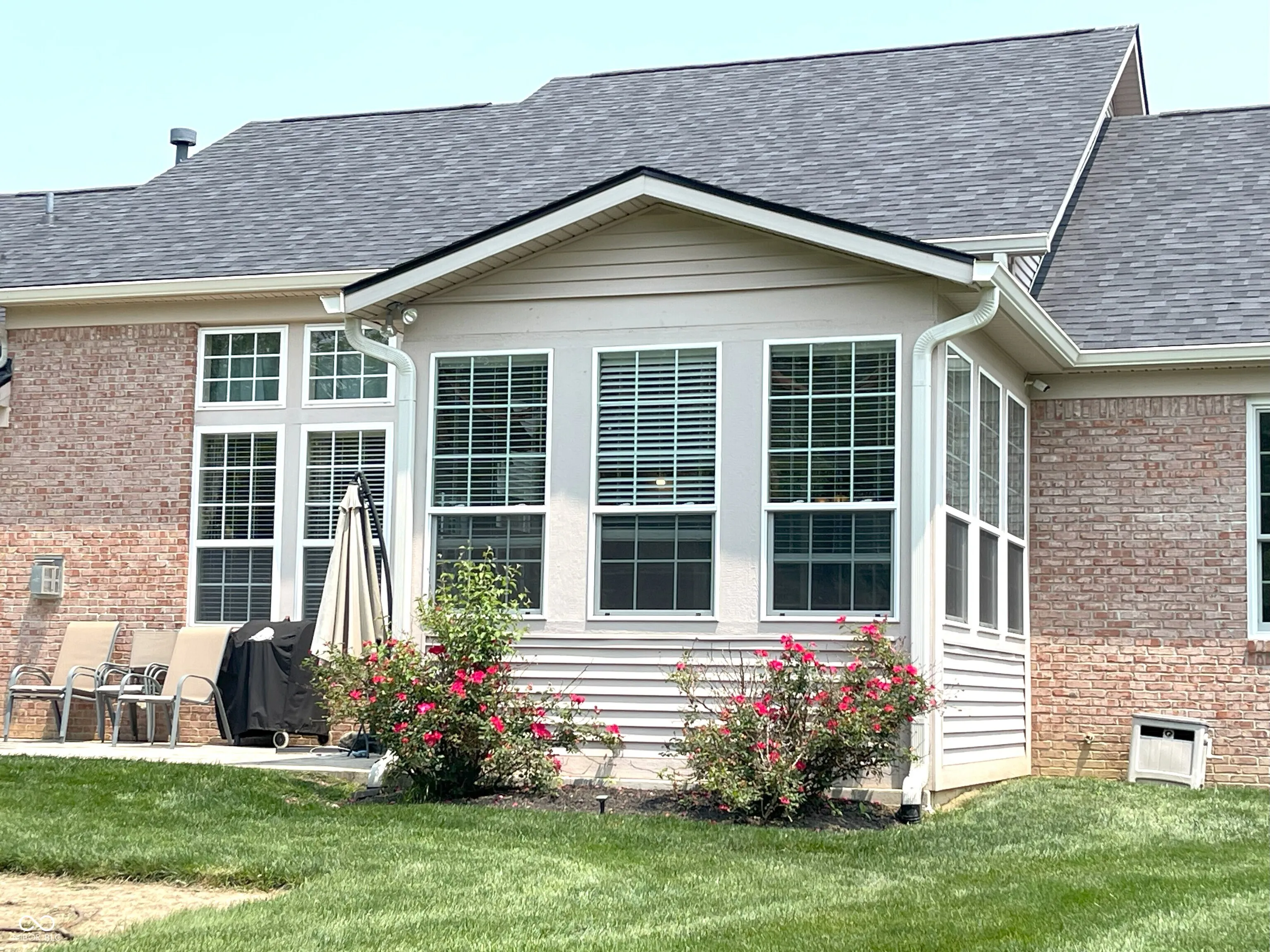 Prepare to be enchanted by the delightful, well-maintained, 12′ ceilings, all brick ranch waiting for you! This home is known in the neighborhood as the home with “The Blue Door” making it easy for for family and friends to find you. This attractive property is practically begging you to come inside and see all the recent updates: New roof, Renewal by Anderson windows in master bedroom and bath, gutters, downspouts, Rhinoshield painting outside upgradlighting; extended driveway and installed stamped concrete patio; water softener, reverse osmosis systems; and installed security camera wiring, too many updates to list here. Step into the living room, where a crackling fireplace promises cozy evenings and storytelling sessions, all framed by elegant crown molding that adds a touch of sophisticated whimsy. The kitchen is calling all culinary adventurers, with boasting a large kitchen island practically begging for you to gather around it with friends and family with all new SS appliances included. The peninsula provides additional space for crafting delicious creations, all made easier by the convenience of a double oven and stovetop. The backsplash adds that final touch of pizzazz. The butler’s panty in the dining area can be used for your own coffee station. The master bedroom with the new windows and vaulted ceiling with plenty of room for furniture or workout equipment. The master bathroom is your own personal spa, featuring a double vanity where morning routines become a breeze, and a walk-in shower that invites you to wash away the day’s cares in a cascade of relaxation. The new window, shower, luxury vinyl plank flooring, commode and paint adds to the relaxation. Let’s not forget the his/her sized walked in closets. The split floor plan makes for privacy for everyone. There is a full bathroom with double sinks for use by the bedrooms. Lots of space to spread out with the sunroom to the unfinished basement waiting for you to make the space what you want