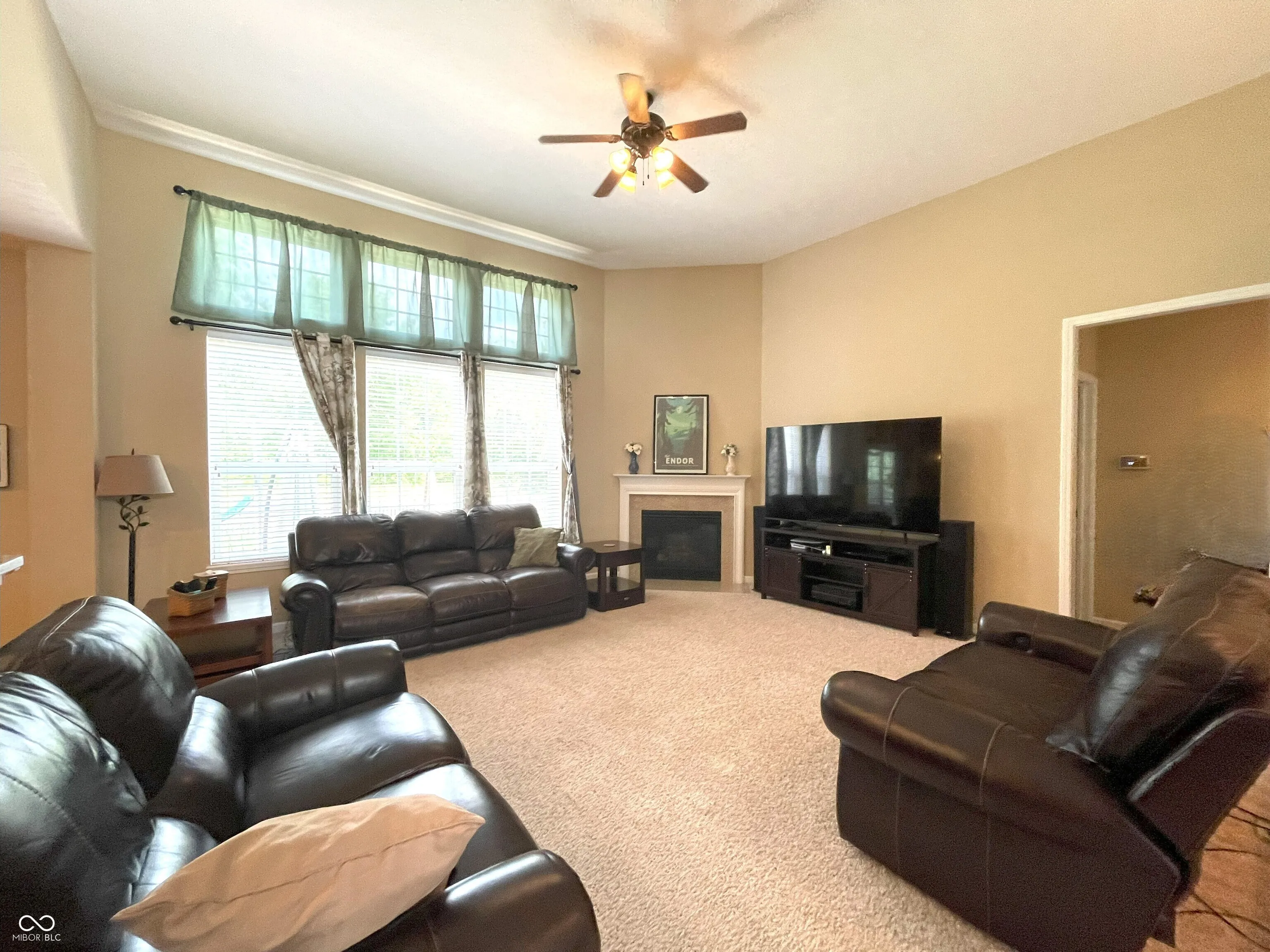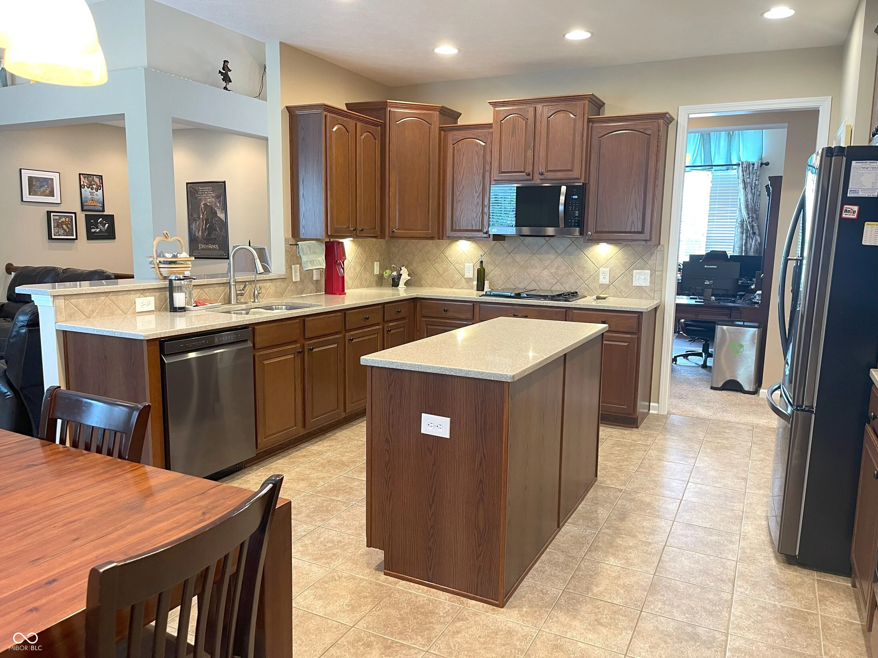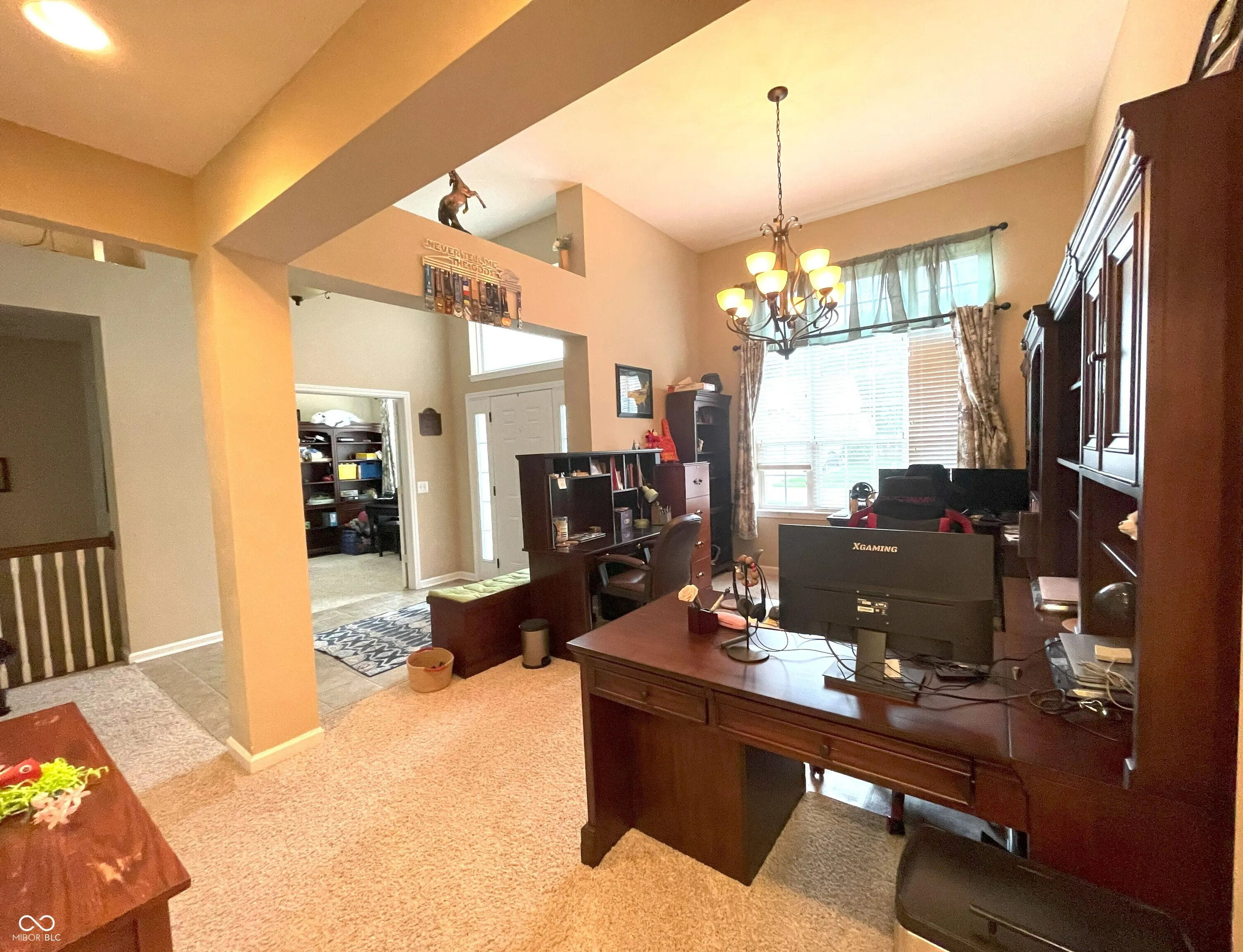 Prepare to be enchanted by the delightful, well-maintained, 12′ ceilings, all brick ranch waiting for you! This home is known in the neighborhood as the home with “The Blue Door” making it easy for for family and friends to find you. This attractive property is practically begging you to come inside and see all the recent updates: New roof, Renewal by Anderson windows in master bedroom and bath, gutters, downspouts, Rhinoshield painting outside upgradlighting; extended driveway and installed stamped concrete patio; water softener, reverse osmosis systems; and installed security camera wiring, too many updates to list here. Step into the living room, where a crackling fireplace promises cozy evenings and storytelling sessions, all framed by elegant crown molding that adds a touch of sophisticated whimsy. The kitchen is calling all culinary adventurers, with boasting a large kitchen island practically begging for you to gather around it with friends and family with all new SS appliances included. The peninsula provides additional space for crafting delicious creations, all made easier by the convenience of a double oven and stovetop. The backsplash adds that final touch of pizzazz. The butler’s panty in the dining area can be used for your own coffee station. The master bedroom with the new windows and vaulted ceiling with plenty of room for furniture or workout equipment. The master bathroom is your own personal spa, featuring a double vanity where morning routines become a breeze, and a walk-in shower that invites you to wash away the day’s cares in a cascade of relaxation. The new window, shower, luxury vinyl plank flooring, commode and paint adds to the relaxation. Let’s not forget the his/her sized walked in closets. The split floor plan makes for privacy for everyone. There is a full bathroom with double sinks for use by the bedrooms. Lots of space to spread out with the sunroom to the unfinished basement waiting for you to make the space what you want