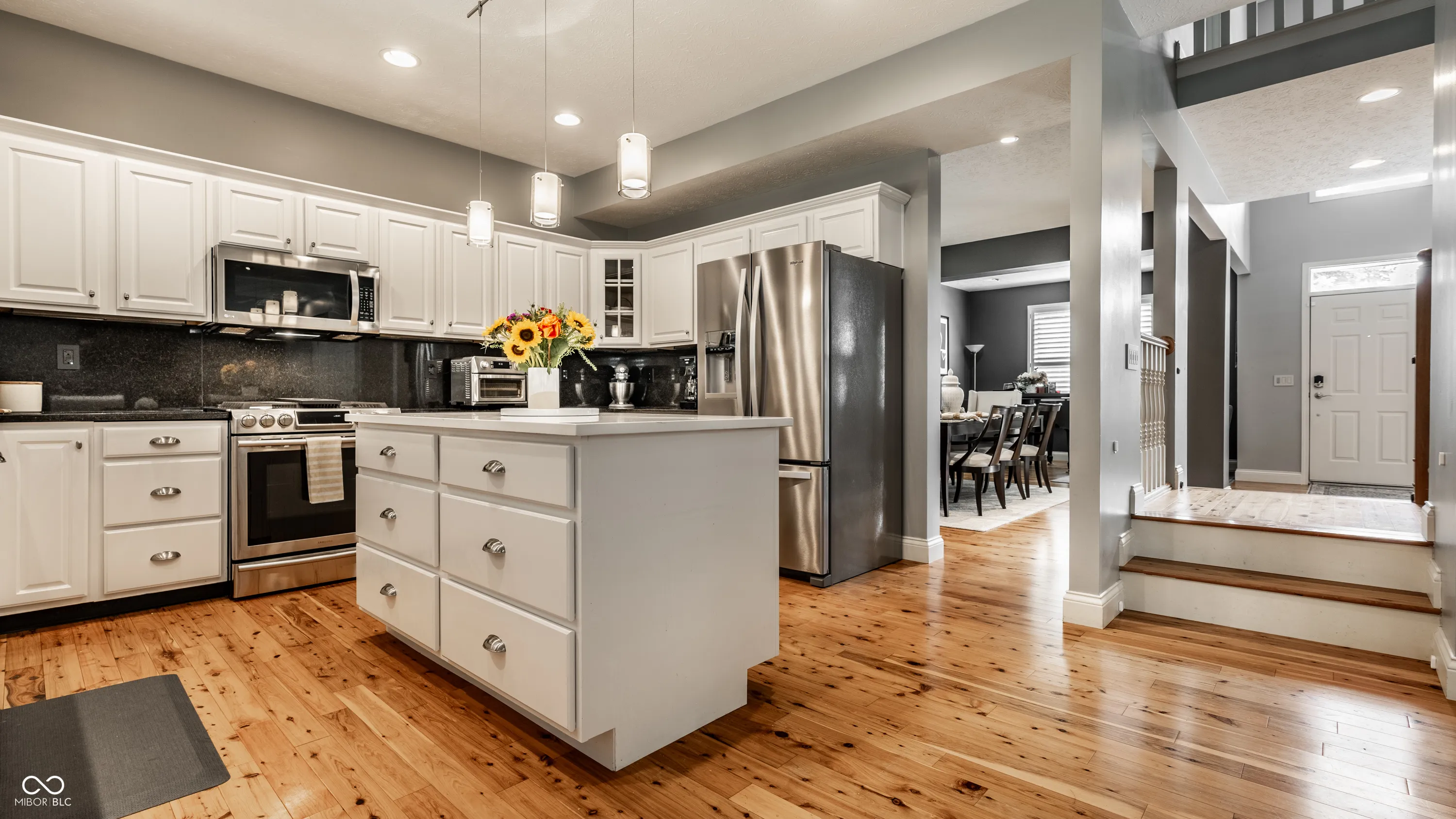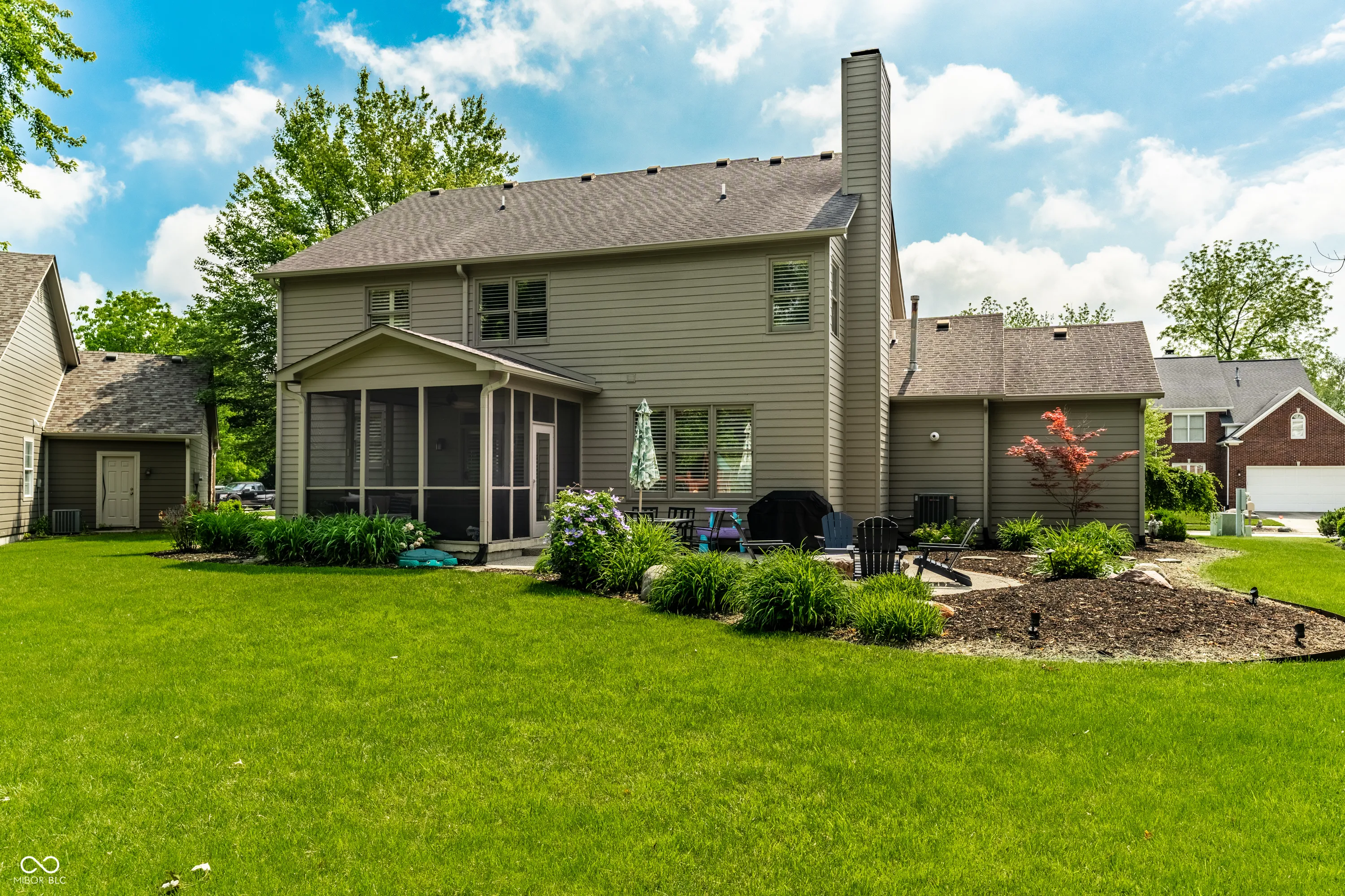 Welcome to your dream home overlooking Twin Lakes Golf Club! This beautifully maintained 4-bedroom residence offers incredible curb appeal with a stately brick exterior, professional landscaping & a new front walkway that sets the tone for what’s inside. Step through the front door & be greeted by gleaming hardwood floors, custom plantation shutters & elegant designer lighting that flow seamlessly throughout the main & upper levels. The inviting entryway opens to a formal living & dining room, plus a 2-sided staircase. The main-level office makes working from home a joy, featuring custom built-ins & a spacious desk setup. The fully updated eat-in kitchen is a chef’s delight with stainless steel appliances, generous counter space, a center island & pantry. It opens effortlessly into the breakfast area & cozy family room, where a gas fireplace & custom built-ins create a warm & inviting space. Upstairs, retreat to a luxurious primary suite with a vaulted ceiling, dual closets & a newly remodeled, spa-inspired ensuite bathroom. 3 additional bedrooms, a spacious loft/flex area, a 2nd full bathroom & a convenient laundry room complete the upper level. The finished basement is an entertainer’s paradise with high ceilings, recessed lighting & a custom wet bar in the expansive rec room. A 3rd full bathroom, a dedicated exercise/bonus room & additional storage offer exceptional functionality. Step outside to your private screened-in porch & relax while taking in serene golf course views. The new patio with a built-in fire pit is perfect for cozy evenings & weekend gatherings. Additional highlights include a finished 3-car garage with an EV charger & access to a vibrant, close-knit community with amenities like a pool, playground, tennis courts, scenic trails & neighborhood block parties. Don’t miss your chance to own this exceptional home in one of Carmel’s most sought-after locations!