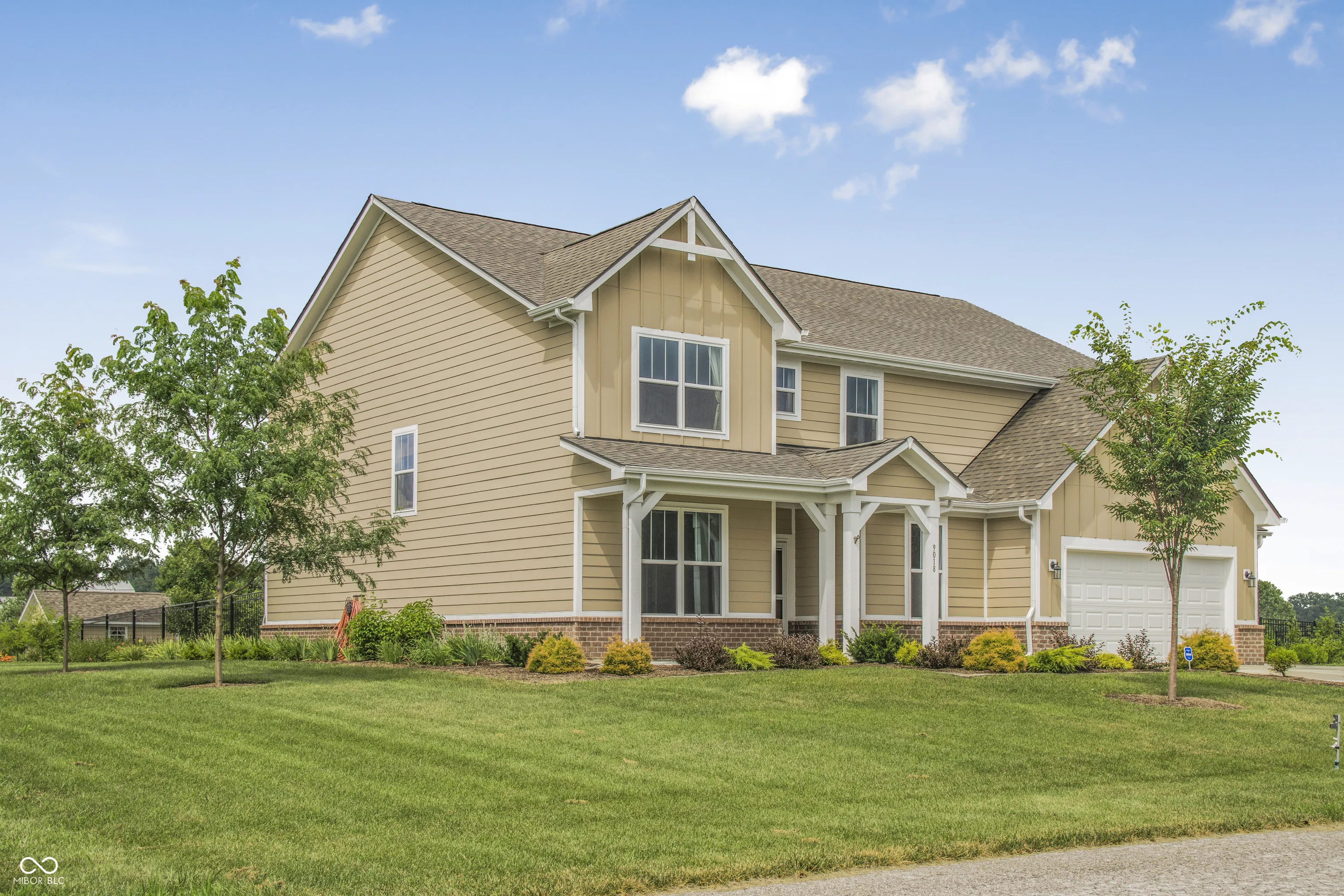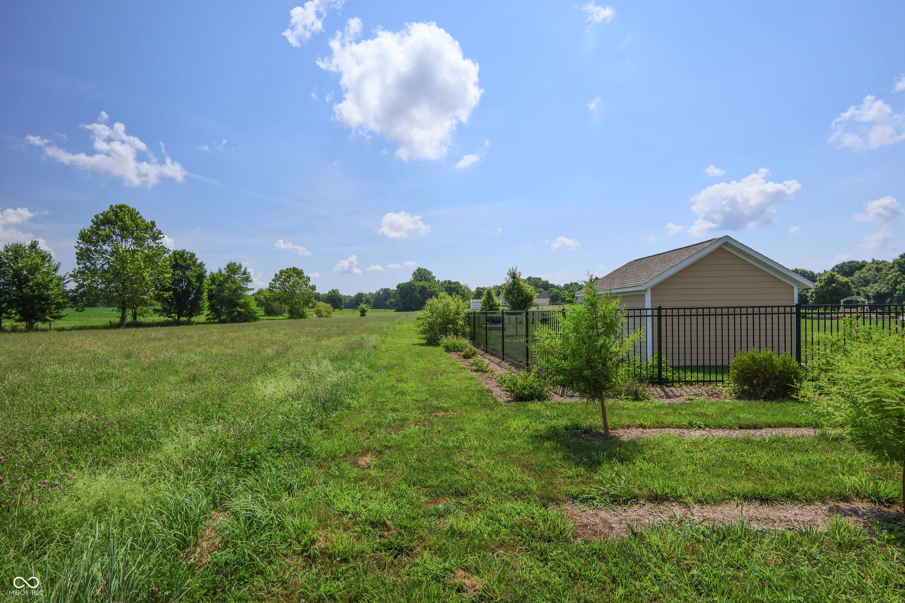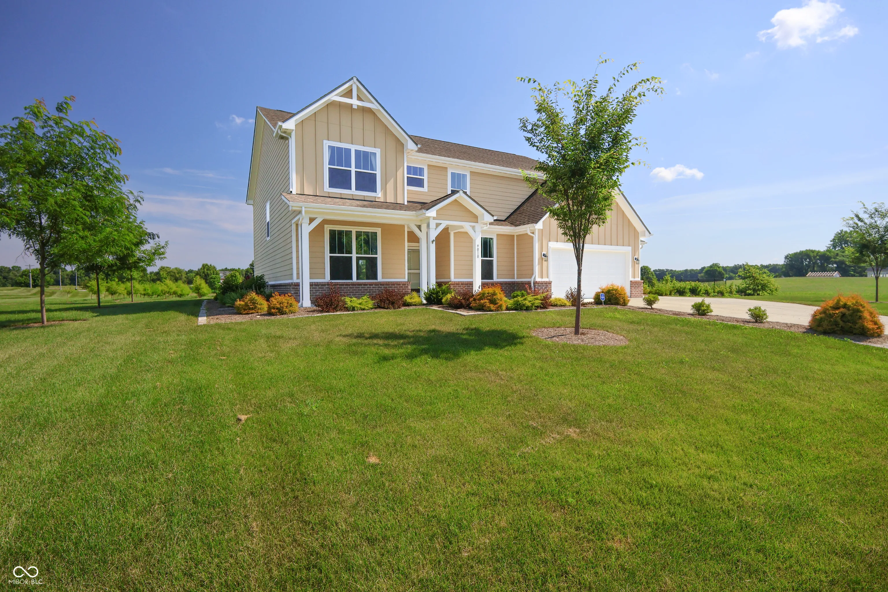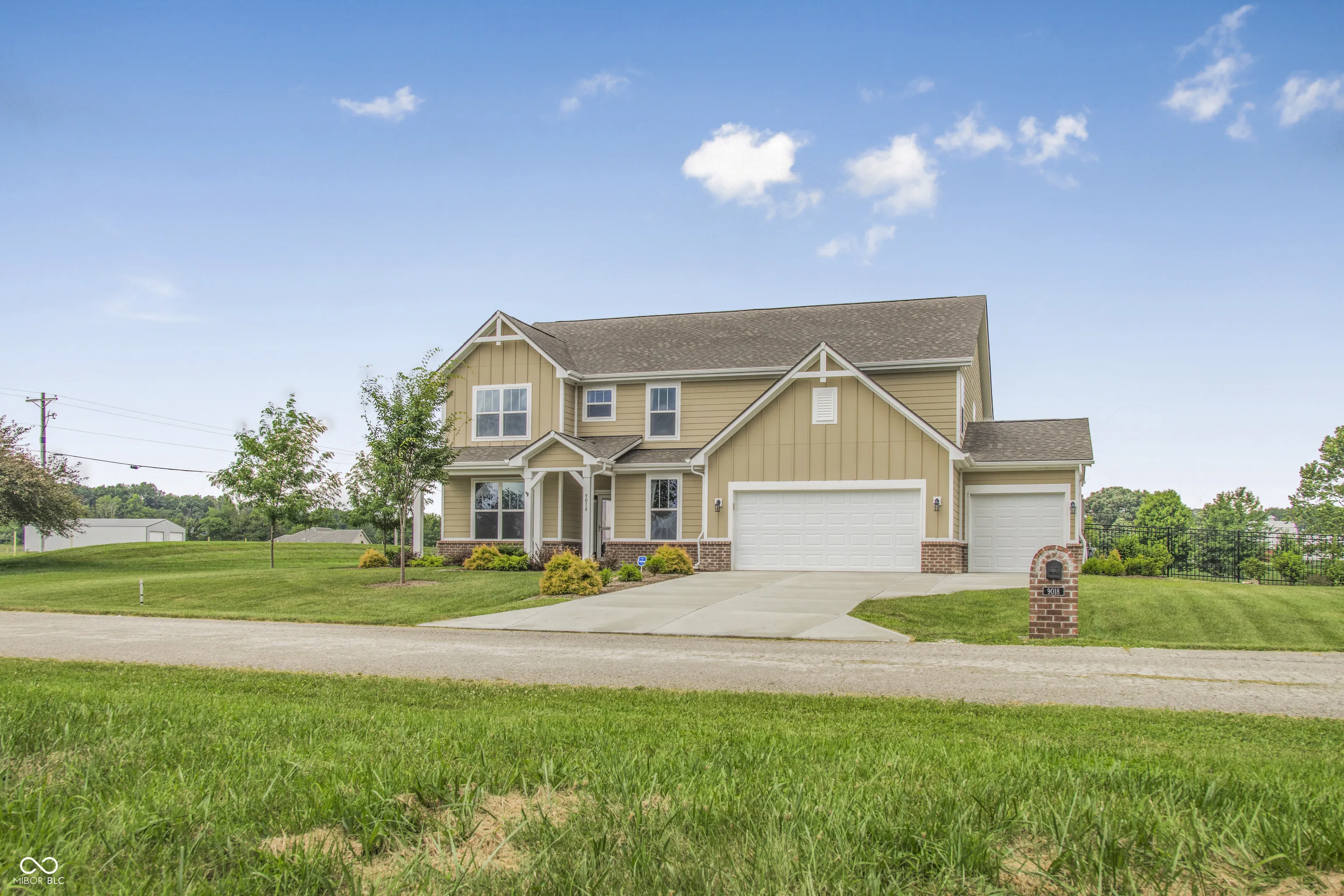 Welcome to 9018 E. Gayle Drive in the beautiful St. John’s Commons neighborhood in Morgantown. This gorgeous home built in 2023 sits on a 1 acre lot on a slight rise, offering panoramic views of the sunsets, sunrises, and picturesque countryside of Morgan County. This five bedroom, 2.5 bath home has many custom features and high- quality finishes. The gorgeous chef’s kitchen has abundant cabinet and pantry storage and two convection ovens. The large master suite boasts a custom walk-in tile shower and his and hers closets. With a bedroom, bonus room and large open living room wired for built- in speakers, the main level offers ample living space offers convenience and comfort. New LVP and carpet throughout the house, with tile in laundry and baths. The house is wired for 400 amp electrical service and has natural gas supply for a whole- house generator. 3 car garage has custom poured floors and lots of built- in shelving. The backyard is beautiful and large, featuring a steel wrought- iron fence for the dogs, patio, porch swing, and a 16 x 12 insulated shed on a poured concrete slab. Many interesting perennial plantings, including hazelnut, raspberry, cranberry and blueberry bushes, and rhubarb surround the outside of the fence, along with a windbreak of bald cypress along the west face of the house. Septic system is designed for a household of 8.