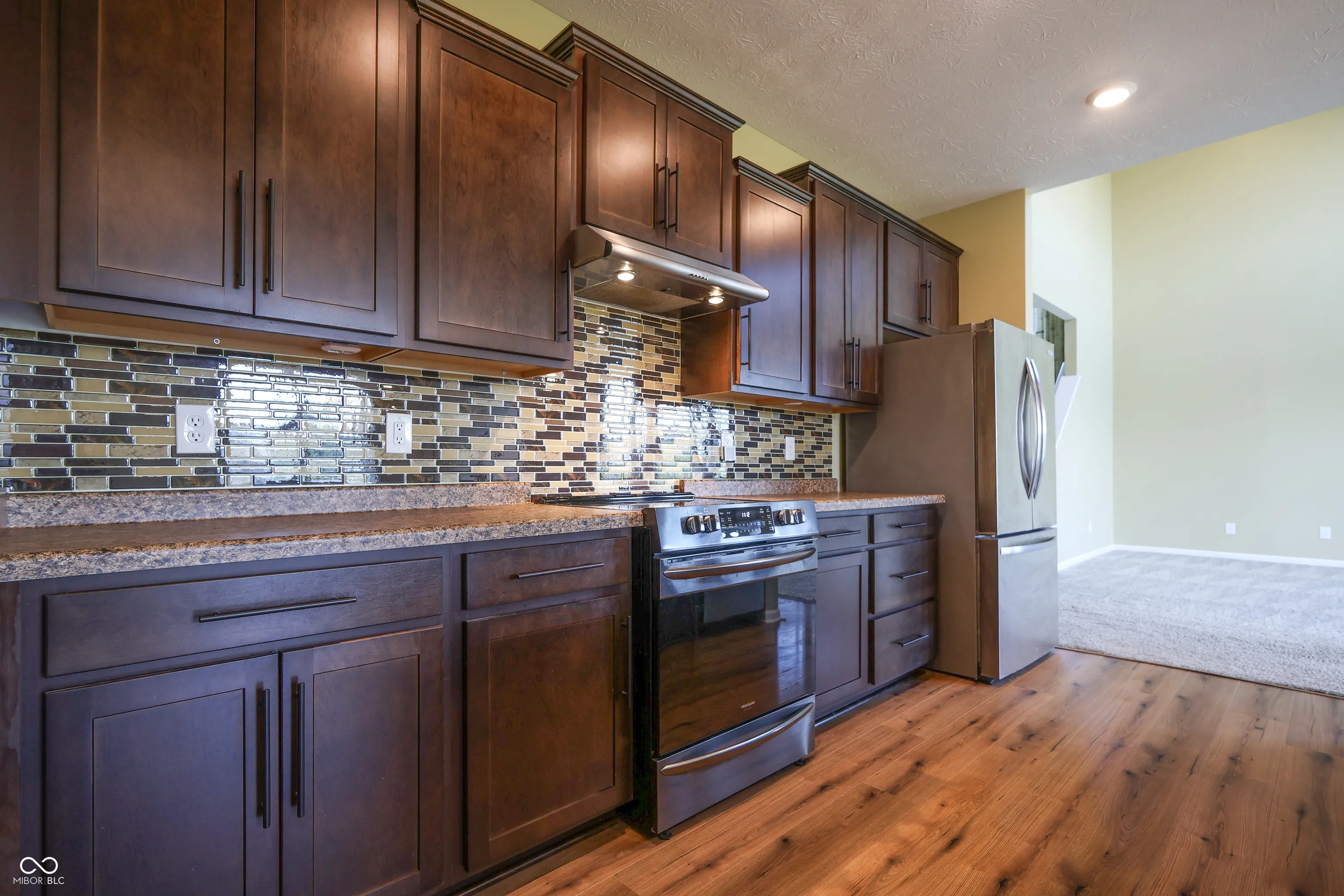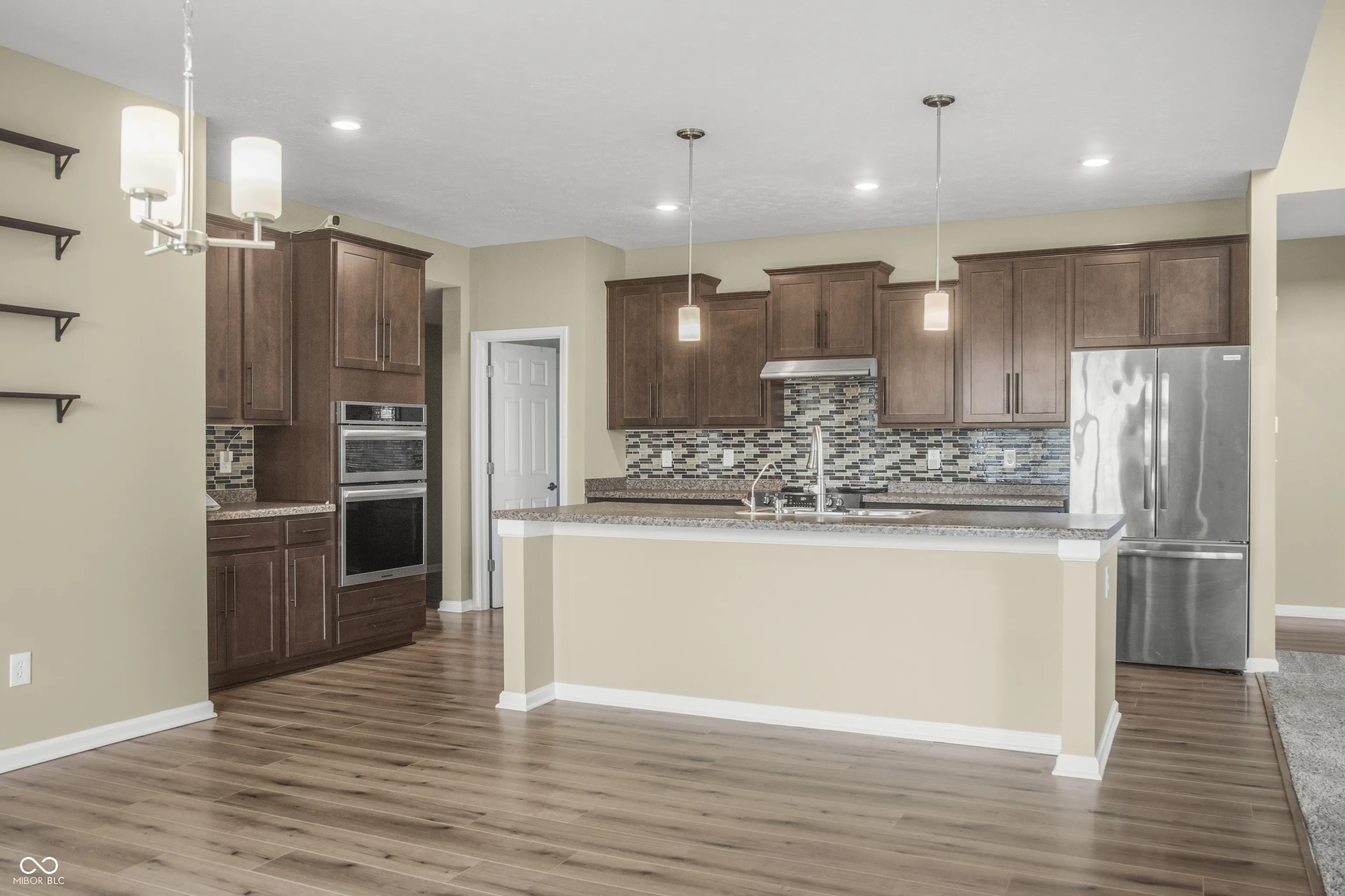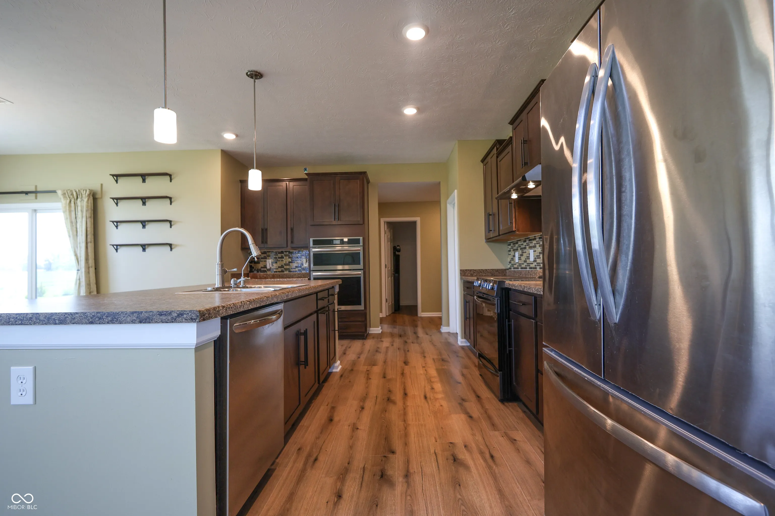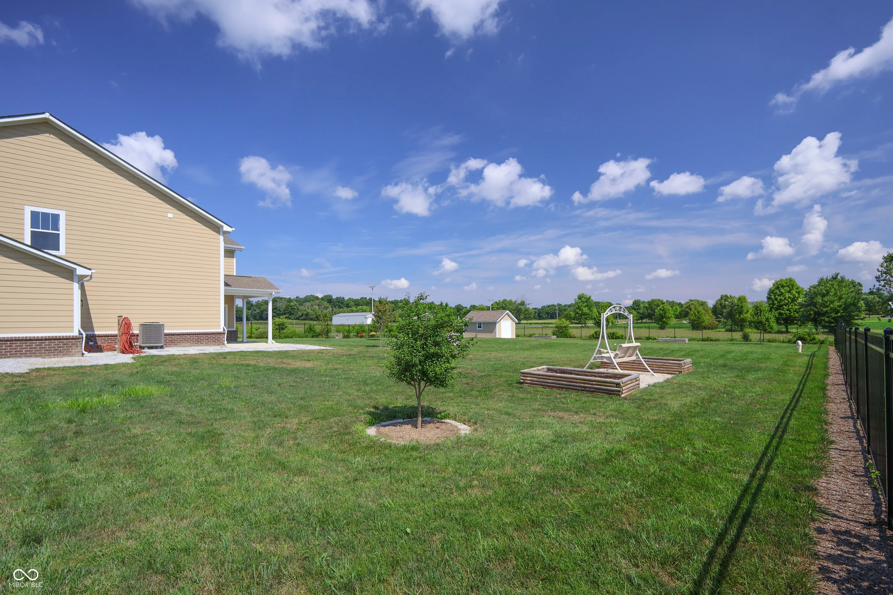 Welcome to 9018 E. Gayle Drive in the beautiful St. John’s Commons neighborhood in Morgantown. This gorgeous home built in 2023 sits on a 1 acre lot on a slight rise, offering panoramic views of the sunsets, sunrises, and picturesque countryside of Morgan County. This five bedroom, 2.5 bath home has many custom features and high- quality finishes. The gorgeous chef’s kitchen has abundant cabinet and pantry storage and two convection ovens. The large master suite boasts a custom walk-in tile shower and his and hers closets. With a bedroom, bonus room and large open living room wired for built- in speakers, the main level offers ample living space offers convenience and comfort. New LVP and carpet throughout the house, with tile in laundry and baths. The house is wired for 400 amp electrical service and has natural gas supply for a whole- house generator. 3 car garage has custom poured floors and lots of built- in shelving. The backyard is beautiful and large, featuring a steel wrought- iron fence for the dogs, patio, porch swing, and a 16 x 12 insulated shed on a poured concrete slab. Many interesting perennial plantings, including hazelnut, raspberry, cranberry and blueberry bushes, and rhubarb surround the outside of the fence, along with a windbreak of bald cypress along the west face of the house. Septic system is designed for a household of 8.
