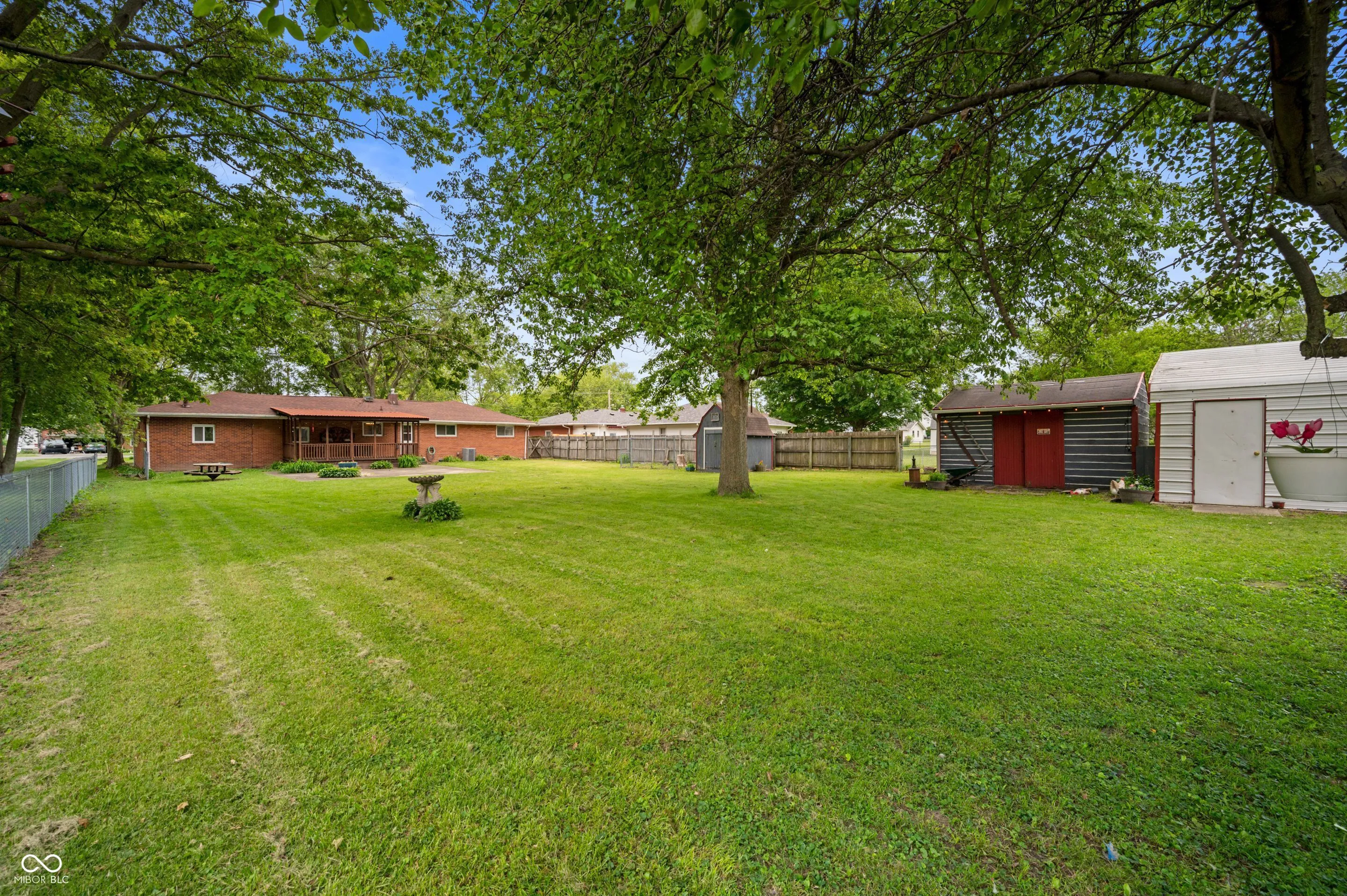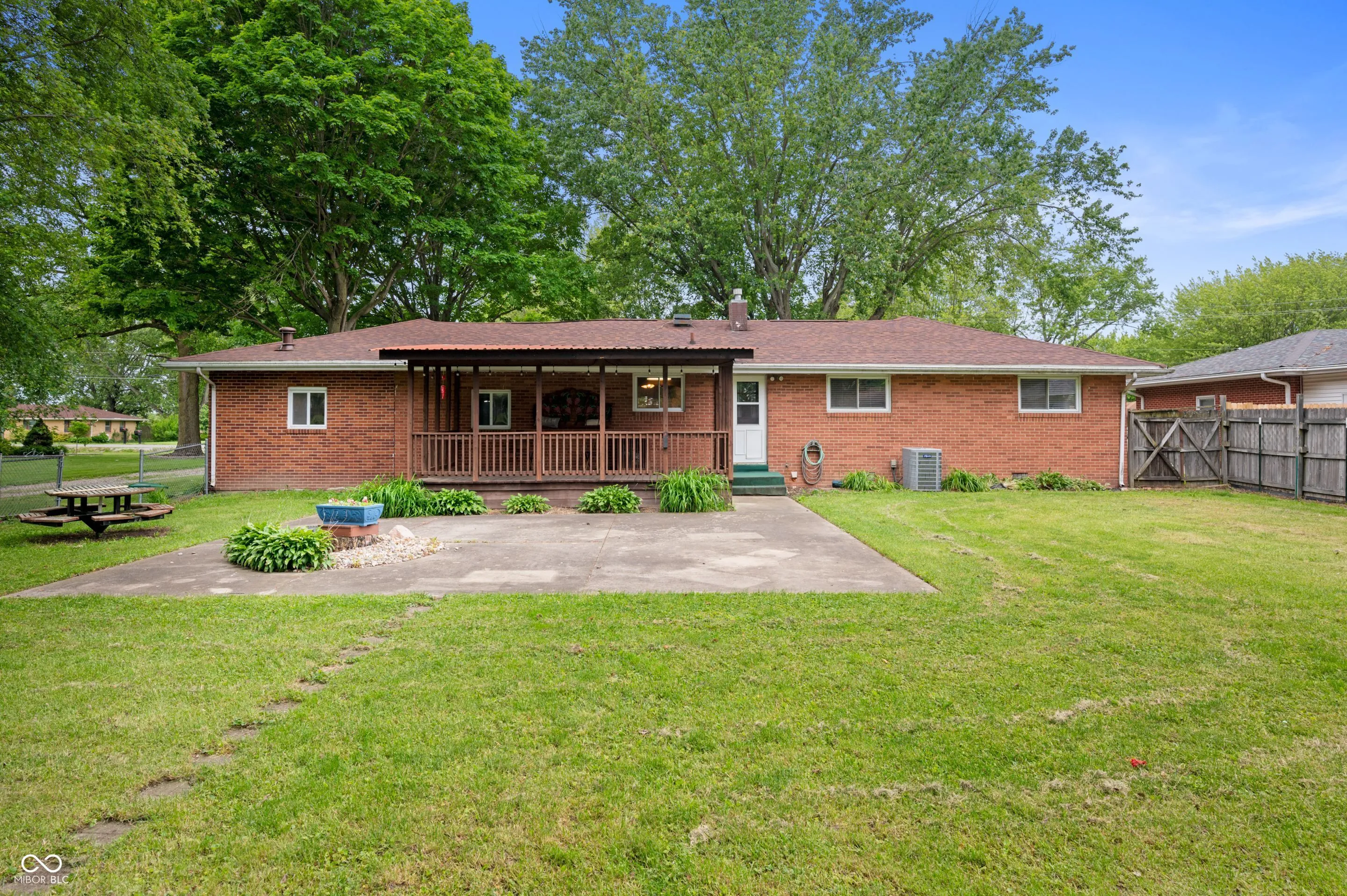 Charming Brick Ranch on a Large Lot in Pendleton Schools! Welcome home to this beautiful 3-bedroom, 1-bath brick ranch situated on a spacious lot within the desirable Pendleton school district. Step inside to find refinished hardwood floors that shine throughout the main living areas, complemented by a bright picture window in the living room that fills the space with natural light. The updated kitchen features brand-new appliances, offering both style and convenience. The primary bedroom includes a walk-in closet for ample storage, while two additional bedrooms provide flexibility for family, guests, or a home office. Enjoy outdoor living year-round with both a covered front porch and a generous covered back porch overlooking the fully fenced backyard-ideal for pets or entertaining. The property also boasts a large 22′ x 24′ outbuilding, perfectly sized for a two-car garage, plus 2 separate storage sheds for all your tools and extras. With a brand-new A/C system installed in 2025, this one-level home offers comfort and peace of mind. Don’t miss this move-in ready gem with classic charm and modern updates in a great location!