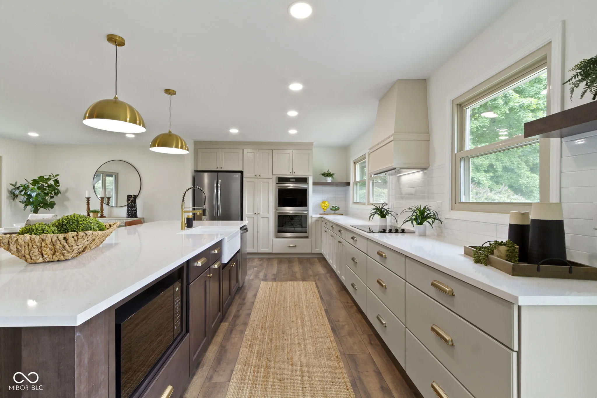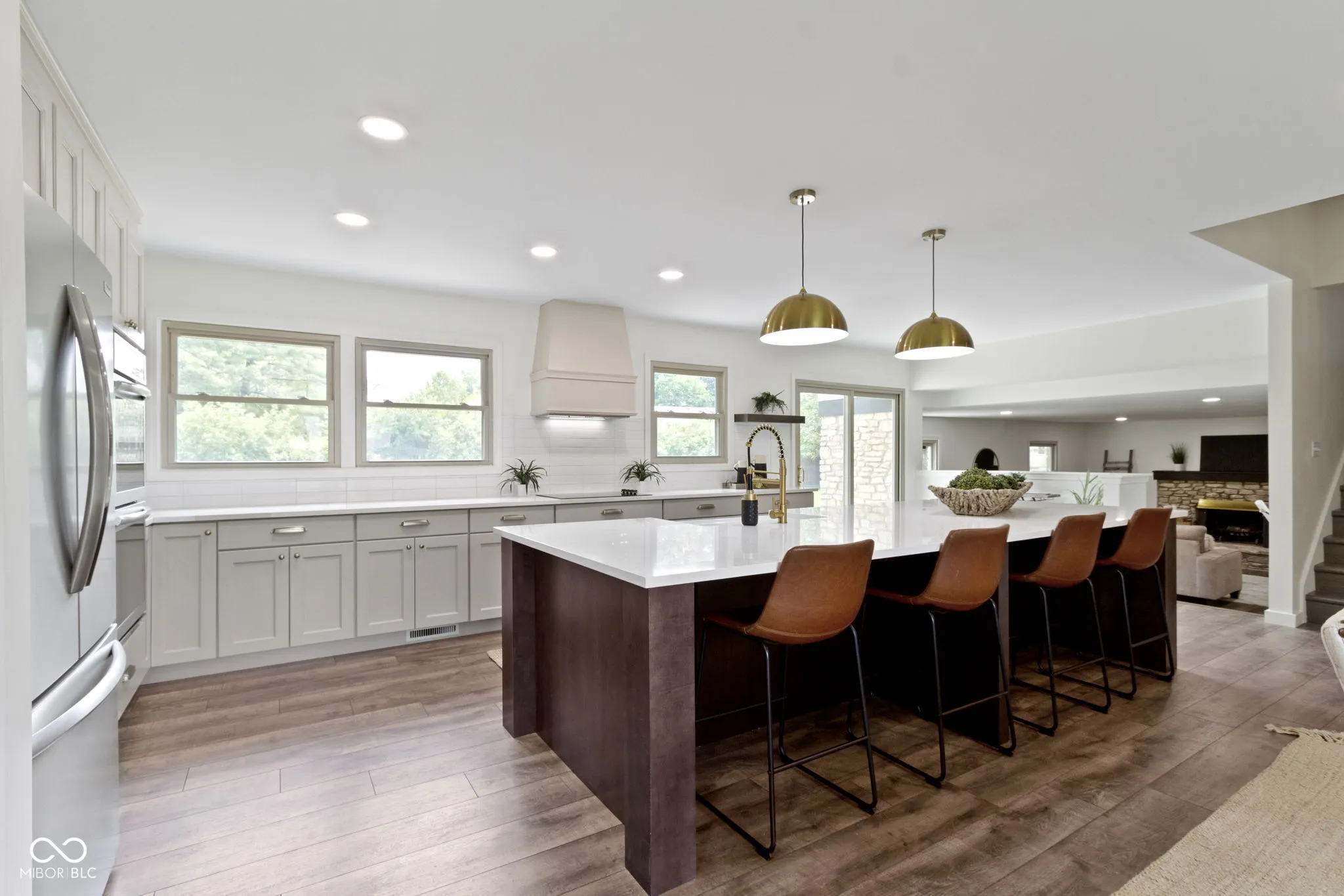 This fully updated Tudor-style home is tucked within a highly sought-after, well-established neighborhood, blending timeless architecture with modern design and comfort. From the moment you step inside, the attention to detail and thoughtful renovations are evident. The kitchen is the true centerpiece of the home, designed for both everyday living and entertaining. A large center island provides ample space for food preparation, casual dining, and conversation, and features a built-in sink, dishwasher, and microwave. The kitchen is further enhanced by a sleek electric cooktop, double ovens, a custom hood fan, and extensive cabinetry offering abundant storage. Whether you’re cooking for a crowd or enjoying a quiet evening in, this kitchen offers both function and beauty.The open-concept main level creates a seamless flow between spaces, allowing for flexibility in layout and use. It can serve as a large formal dining room, perfect for hosting holiday meals, or an additional living space depending on your needs. On the lower level of this inviting tri-level home, you’ll find a warm and welcoming family room complete with a stone fireplace that adds character and charm. A custom dry bar and built-in work area with shelving make this space ideal for entertaining or a comfortable home office setup. The lower level also includes a mudroom that keeps your everyday essentials organized, a spacious bedroom, a full bathroom, and a generously sized laundry room, providing convenience and functionality for guests or multi-generational living.Upstairs, the home features three additional bedrooms and two full bathrooms, including a luxurious primary suite. The primary bedroom offers a walk-in closet and a beautifully remodeled en suite bathroom with a large walk-in shower, double vanity sinks, and tasteful finishes that create a spa-like retreat. Outside, the home sits on a spacious lot that offers a touch of privacy and plenty of room to relax, garden, or entertain.