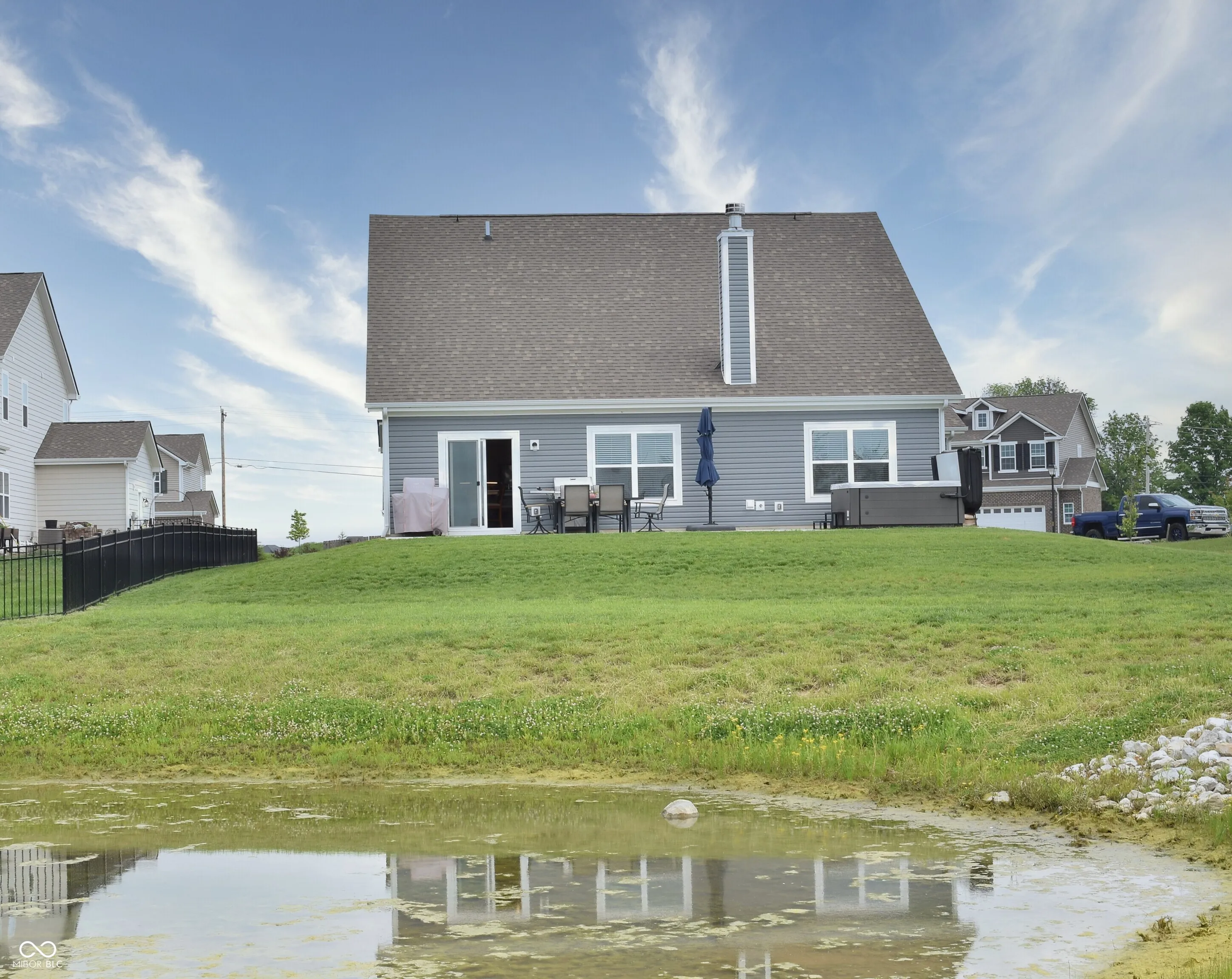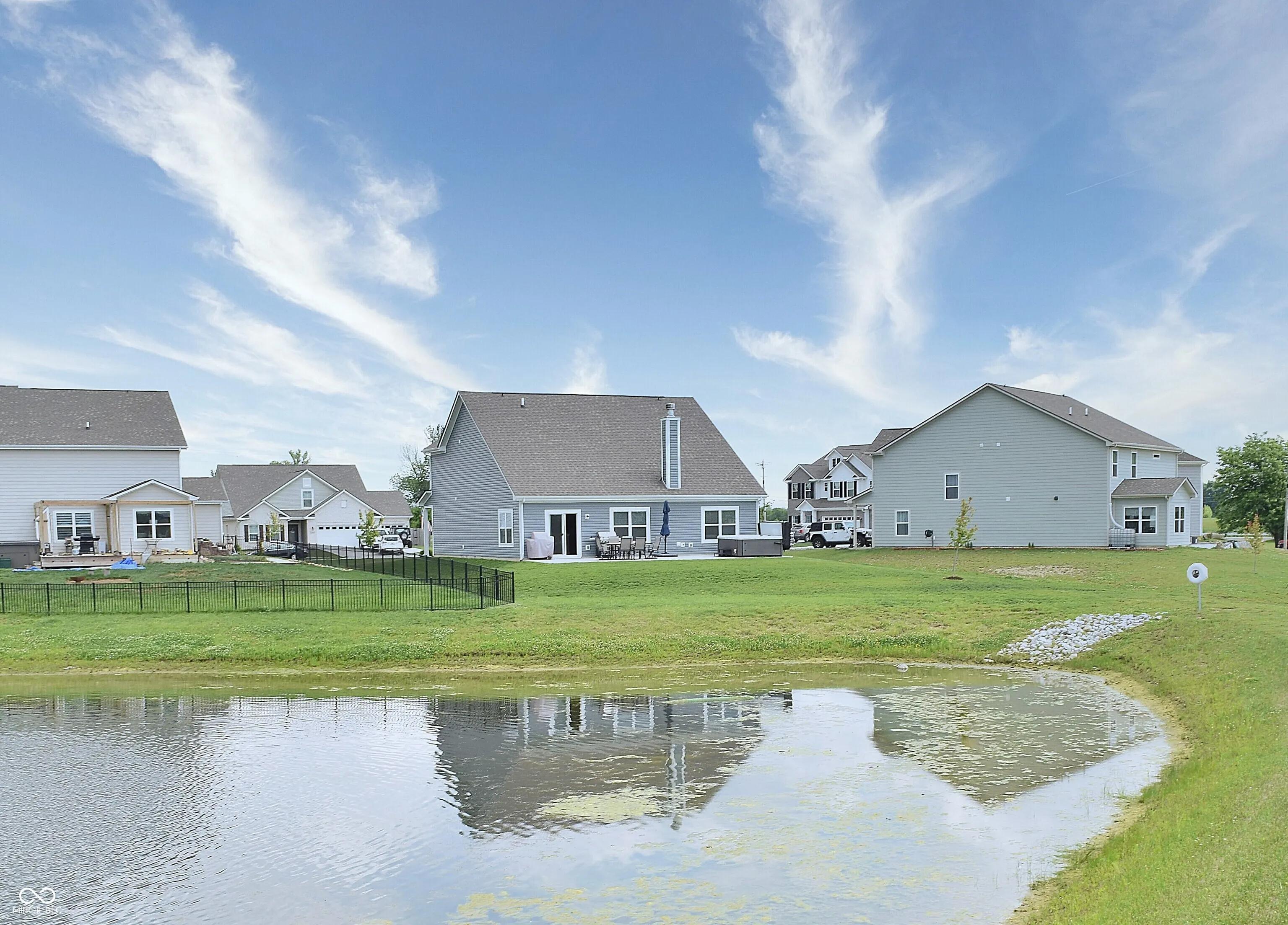 BEAUTIFUL home built just 2 1/2 years ago, loaded with options and located on cul-de-sac homesite with pond view! Main floor owner’s suite PLUS another main floor bedroom plus two bedrooms upstairs and a loft!! Main floor bedroom with a walk-in closet is currently used as an office/flex space, however sellers are willing to install a door should the next owner desire to utilize that space as a bedroom. Vaulted ceiling Great Room with wood-burning fireplace! 9′ ceilings and oversized 3-car garage add to the appeal! Owner’s suite complete with walk-in closet, large custom-tiled walk-in shower, soaking tub and quartz countertops! Additional options include HUGE 40X12 patio, hot tub, ceiling fans, water softener, soft-close cabinet doors and drawers in kitchen and bathrooms, raised bathroom vanities, tall toilets, custom window blinds throughout, upgraded luxury vinyl plank flooring, under-cabinet kitchen lighting, gas range/oven, custom shelving installed in pantry and owner’s suite walk-in closet. Washer and dryer included!