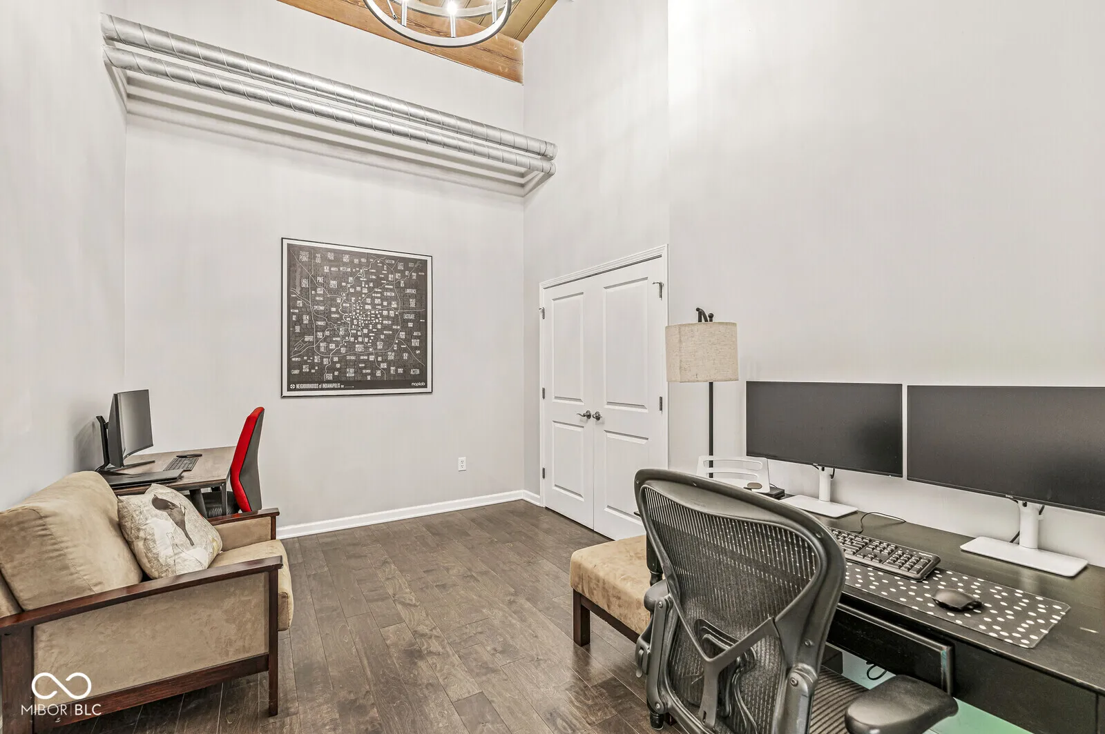 Welcome to 630 N College Ave, Unit 204, a stunning urban retreat nestled in the center of Indianapolis’ vibrant Mass Ave Cultural Arts District. Located in the historic Mill No. 9 building, this beautifully renovated 2-bedroom, 2-bath loft offers the perfect blend of industrial character and modern sophistication. As you step inside, you’re greeted by soaring 13′ ceilings and rich hardwood floors that flow throughout the open-concept space. The kitchen is a showstopper, featuring sleek cabinetry, quartz countertops, a massive peninsula perfect for casual dining or entertaining, stainless-steel appliances and a spacious pantry for extra storage. The kitchen opens seamlessly into a sun-drenched living and dining area, ideal for hosting friends or enjoying a quiet evening at home. Natural light pours in through oversized windows, highlighting the loft’s airy, inviting atmosphere. The primary suite is a true sanctuary, complete with a custom walk-in closet and a luxuriously renovated ensuite bath featuring dramatic tile flooring, double vanities, and a large walk-in shower. The second bedroom also includes a custom closet system and sits adjacent to a full bath – perfect for guests or a home office setup. A dedicated laundry room off the kitchen adds convenience and extra storage space. And when you’re ready to unwind, you can either head up to the shared rooftop deck, where you’ll enjoy breathtaking views of the Indianapolis skyline or relax in the shaded courtyard around the firepit. This unit includes two dedicated parking spaces – one in the garage and one in a private exterior lot – making city living even more convenient. Just steps from Mass Ave’s best restaurants, boutiques, nightlife, and walking trails, this home offers the ultimate in downtown living.