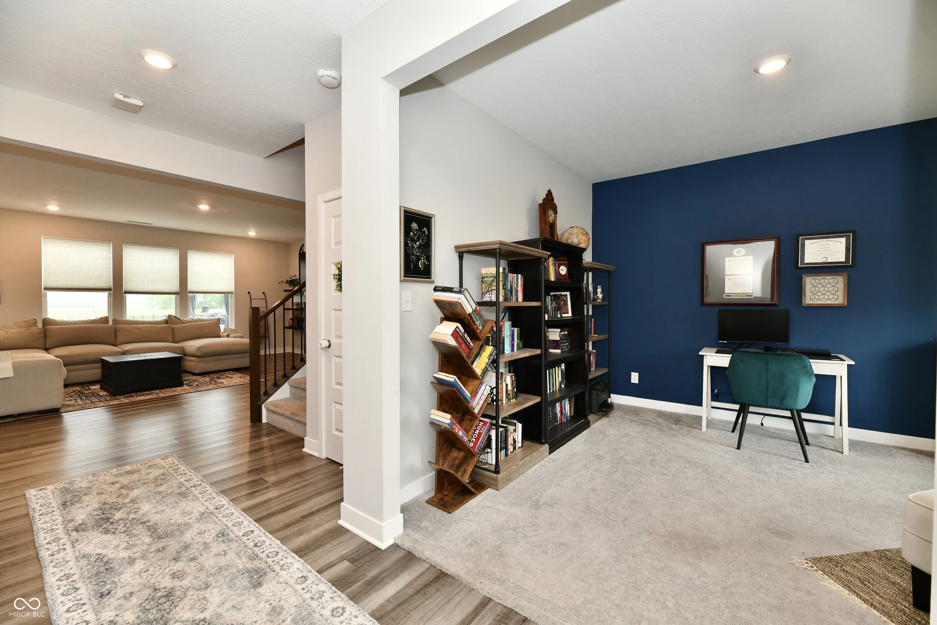 PRICED TO SELL – UNDER MARKET, PLUS IMMEDIATE POSSESSION! PICTURE PERFECT home – only 5 years old. WHY WAIT TO BUILD and deal with construction noise, traffic, and a bare neighborhood when you can move right into an established community? A welcoming entryway makes you FEEL right at home. The den/library is IDEAL for working from home or homeschooling. The open and spacious living room is FILLED with natural light and centered around a beautiful fireplace. The kitchen features a large island, abundant cabinetry, and a walk-in pantry. The dining room overlooks the LOVELY backyard and provides easy access to the patio. Upstairs, a spacious laundry room is conveniently located near the bedrooms. The loft adds EXTRA living space – perfect for a play area, home office, or media room. The hallway bathroom features a double vanity, making mornings EASIER for everyone. The primary bedroom suite has a large walk-in closet, double vanity, a beautifully tiled walk-in shower, and a view of the backyard. The additional three bedrooms are generously sized, FILLED with natural light, and offer ample closet space – perfect for family, guests, or hobbies. Fully fenced backyard, complete with a pergola for shade, an extended patio, and a cozy fire pit. Enjoy added privacy with NO neighbors directly behind. The street behind the home is used only by school buses. A finished 3-car garage provides plenty of room for vehicles, storage, and projects. The neighborhood offers FANTASTIC amenities, including a community pool with a covered seating area, restrooms, and a playground. You can also ENJOY the walking trails that lead directly to Kephart Park, Taxman Brewing, and Coffeehouse Five – making it easy to enjoy outdoor activities, local craft beer, and your favorite cup of coffee. All that’s missing is you.