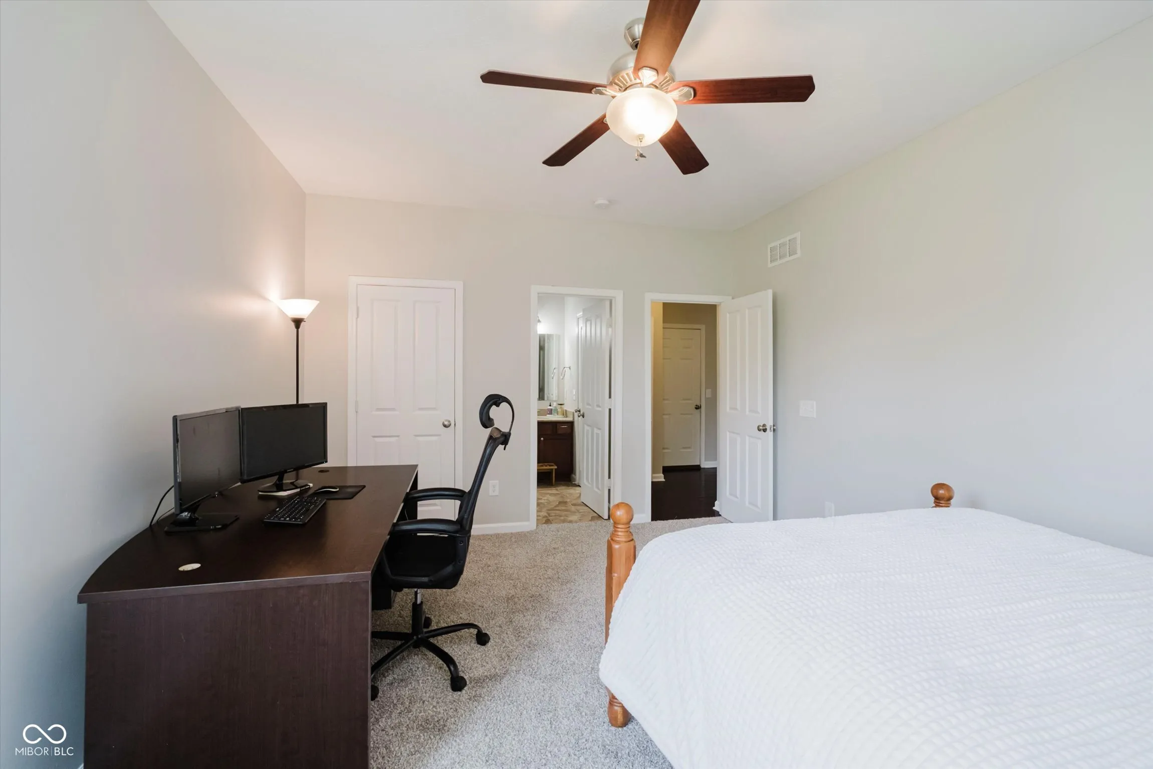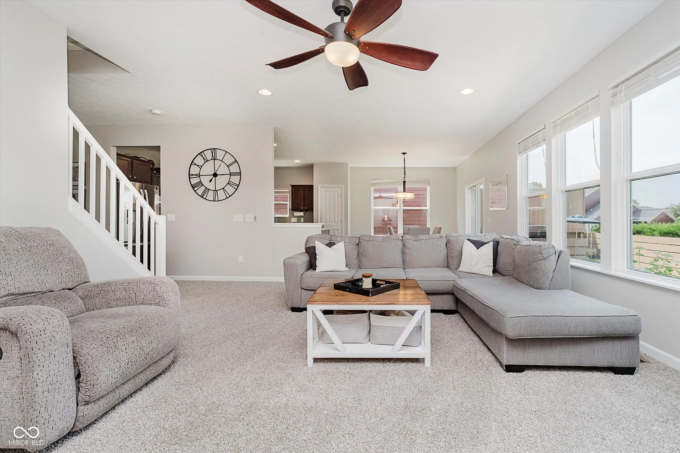 Listed $25K BELOW appraised value. Spacious and stylish, this 5-bedroom, 3-full bath Craftsman-style home offers the perfect blend of comfort, function, and location. A two-story entry welcomes you into a thoughtfully designed floor plan featuring 9-foot ceilings and beautiful hardwood flooring. The main level includes a guest bedroom and full bath-ideal for guests or multi-generational living. The gourmet kitchen is a chef’s dream with double ovens, granite countertops, center island, and 42″ cabinets, all open to the inviting living and dining spaces. Upstairs, the oversized owner’s suite includes a massive walk-in closet and spa-like bath with dual sinks, garden tub, and tile finishes. All bedrooms are generously sized with walk-in closets and ceiling fans. Fresh interior paint and brand-new carpet make this home move-in ready. The full unfinished basement with two egress windows offers endless potential for future living space, home gym, or theater. Step outside to enjoy a newly resurfaced deck and paver patio overlooking the fully fenced backyard-perfect for entertaining or relaxing in privacy. Neighborhood amenities include a pool and clubhouse, and you’re just minutes from dining, shopping, and entertainment on SR-37, Hamilton Town Center, and soon a new Kroger. With space, style, and unbeatable convenience, this home is a must-see.