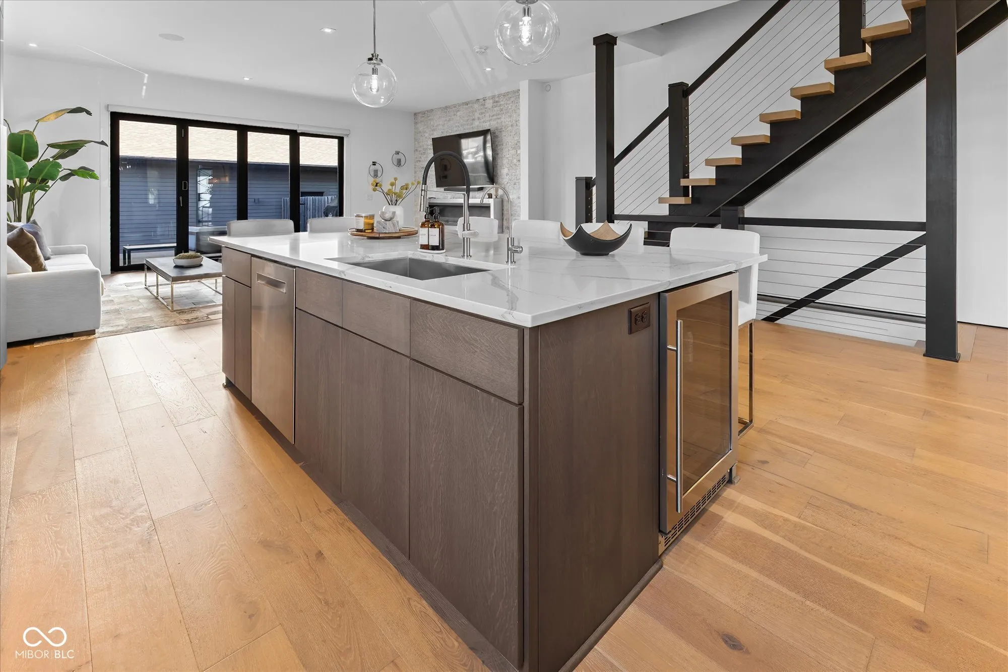 Major Price Improvement – Now offered at $799,900. A rare opportunity to own a statement home in Herron-Morton’s exclusive Penn Row community. Located at 1818 N Pennsylvania Street, this expansive 4,000+ sq ft residence delivers bold architecture, elevated design, and sweeping skyline views just minutes from downtown Indianapolis. Every detail was thoughtfully curated to blend modern luxury with timeless craftsmanship. The interior impresses immediately with 12-foot ceilings and wide-plank white oak flooring, creating an open and refined atmosphere. At the heart of the home is a chef-caliber kitchen featuring Caesarstone quartz countertops, marble backsplash, double ovens, a commercial-grade refrigerator/freezer, wine cooler, and an oversized island designed for both everyday living and entertaining. The living area offers a cozy yet sophisticated retreat with a fireplace and Bose surround sound, while a private home theater elevates movie nights to a true cinematic experience. The primary suite is a showpiece, complete with a built-in king bed, spa-inspired bath with dual vanities and walk-in shower, and a custom walk-in closet built for seamless organization. Additional features include a finished basement with half bath, motorized blinds, designer lighting, two fireplaces, and a detached two-car garage. Outdoor living is unmatched, with an upgraded rooftop deck finished in Trex decking and panoramic city views, along with a private fenced turf yard featuring a deck, patio, and built-in fire pit-ideal for entertaining or unwinding. Featured in the 2018 Indianapolis Home Show, this one-of-a-kind property offers modern luxury, thoughtful design, and historic character in one of Indy’s most desirable neighborhoods. An exceptional value at this new price-city living at its finest.