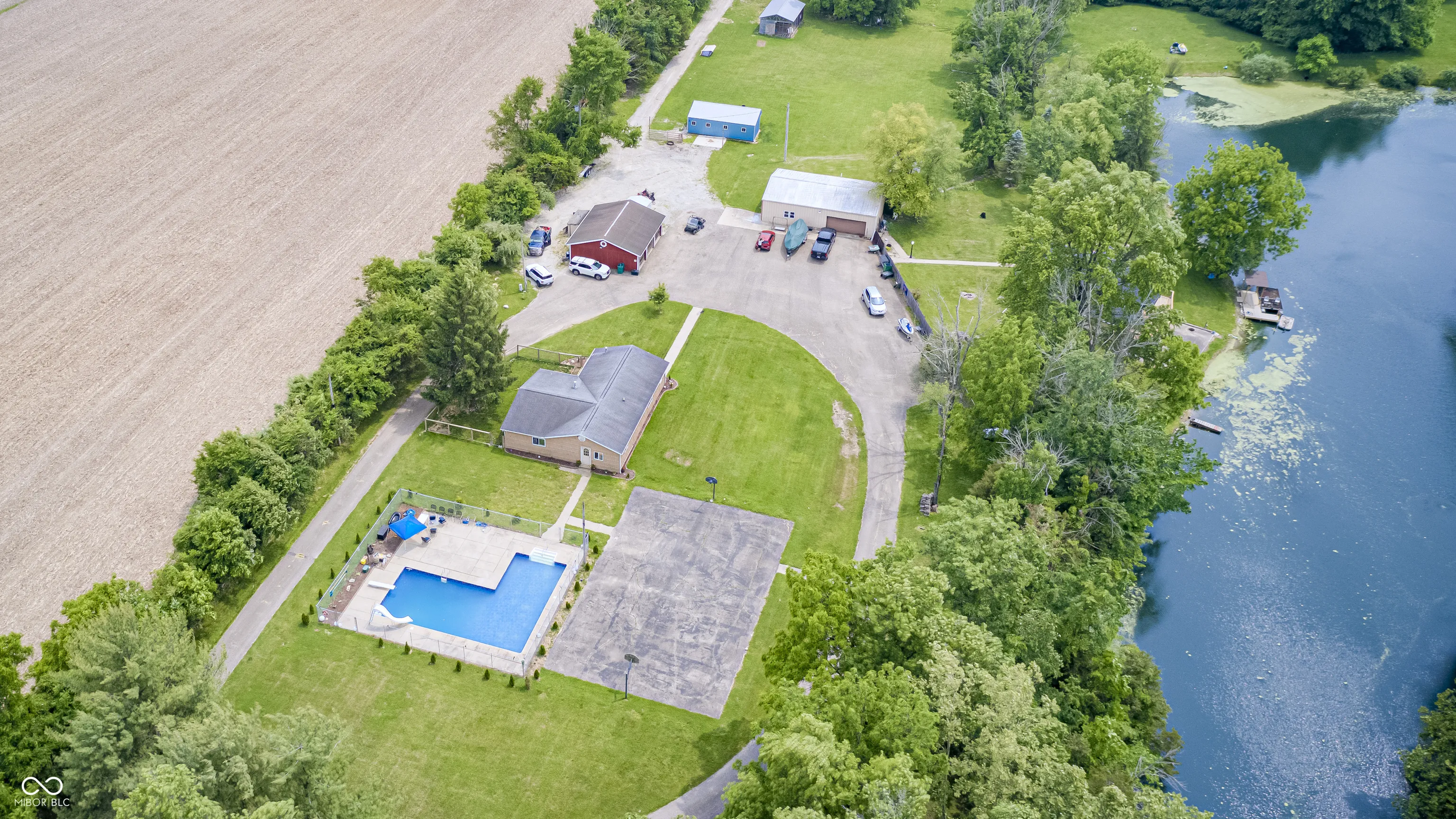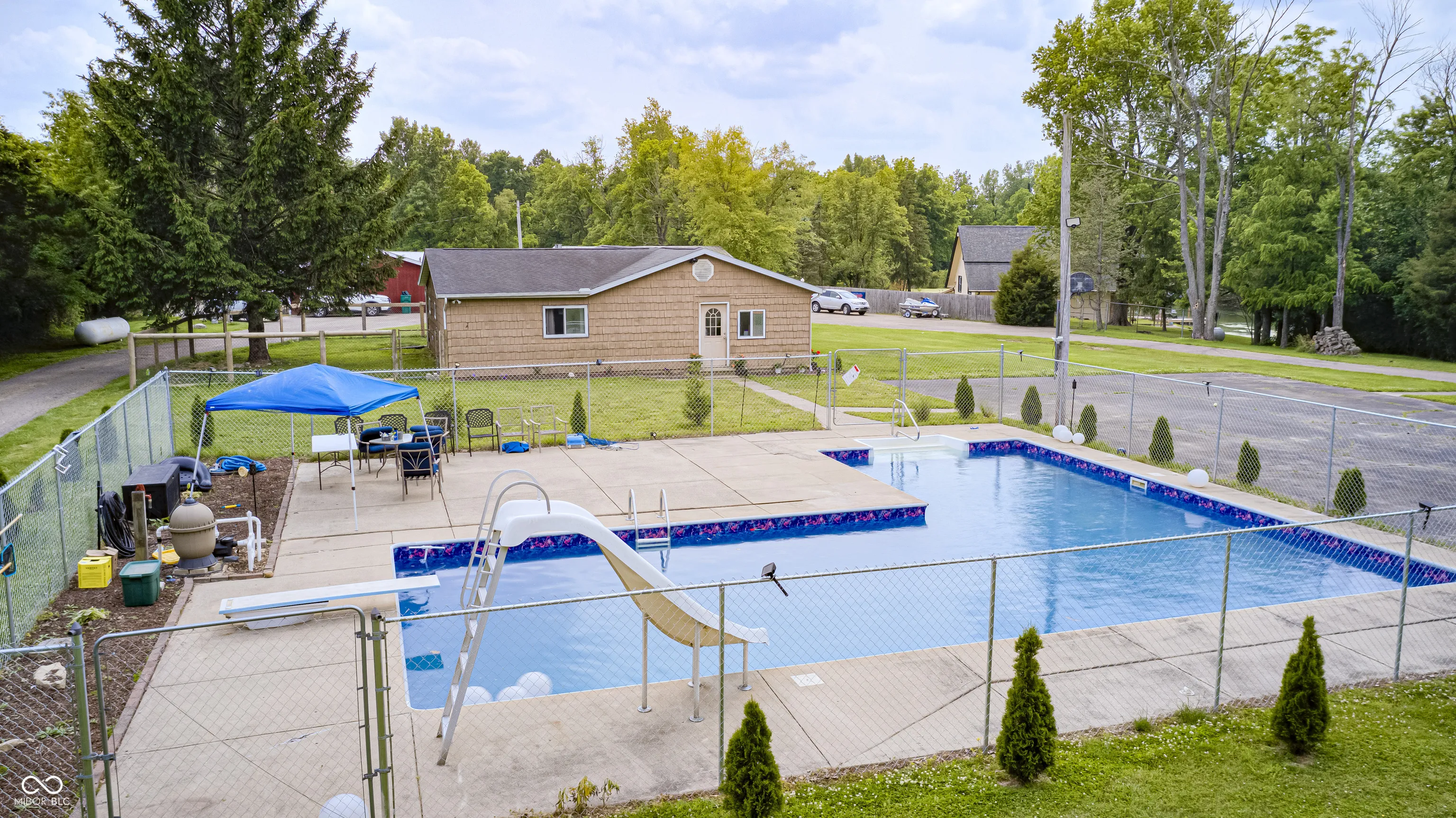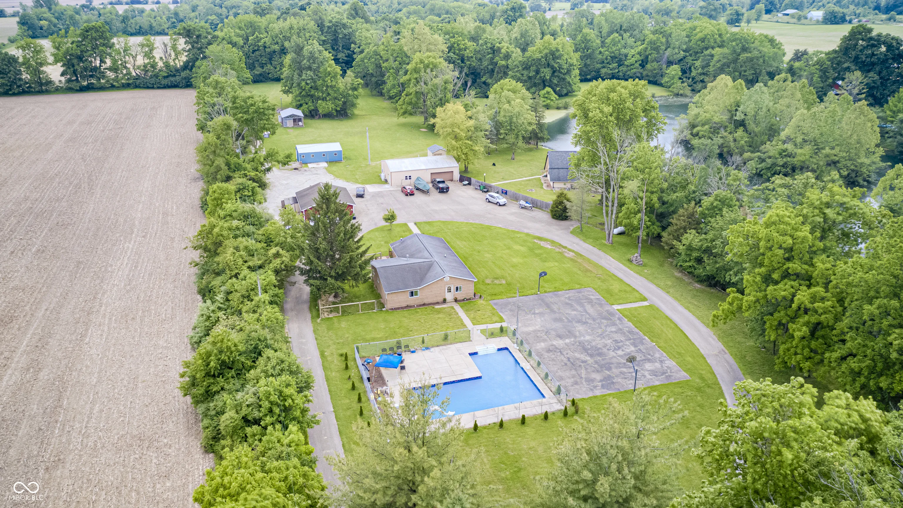 Aspiring to own a Hendricks County homestead? Look no further! Two parcels totaling 11.31 acres (five acres of which are a part of Hummingbird Lake) provide plenty of room to roam and grow. This property has a 3 bed 1 bath home tucked back off of CR 700 S in the Mill Creek Community School District, conveniently located only half of an hour from Indianapolis International Airport. The kitchen is cozy for cooking and includes all of its appliances. The family room has a rustic country feel and a double-sided fireplace that is shared with the master bedroom. Both the master bedroom and third bedroom have exterior access doors. The main bedroom’s door leads out to the fenced in yard. This home has its own septic system and private well. An in-ground swimming pool (9′ at its deep end) with a diving board and water slide make for a perfect summer hangout to host company! There’s even more room to play and entertain on the full-size basketball court and huge, upkept yard. The 3 car detached garage provides protected parking, is ideal for additional storage, and supplies workshop space for larger projects. Beyond the garage sits a smaller utility shed, and past that lies a 30’x12′ three-stall livestock barn with a built-in tack room. Continuing further on the property you will find a 30’x12′ custom built indoor/outdoor chicken coop. Two separate zip lines are tucked amongst the trees for a fun surprise! And at the very back of the property sits a large, flat, open area ready to be built upon. In fact, the soil evaluation has already been completed (see associated documents) on the proposed septic location, near the proposed building site. If constructing your dream home on a beautiful piece of property in the country is your goal, you’ve stumbled upon your perfect match. And then you’d already have a 3 bed 1 bath pool house. Do not miss your opportunity to turn this gorgeous homestead into your own!