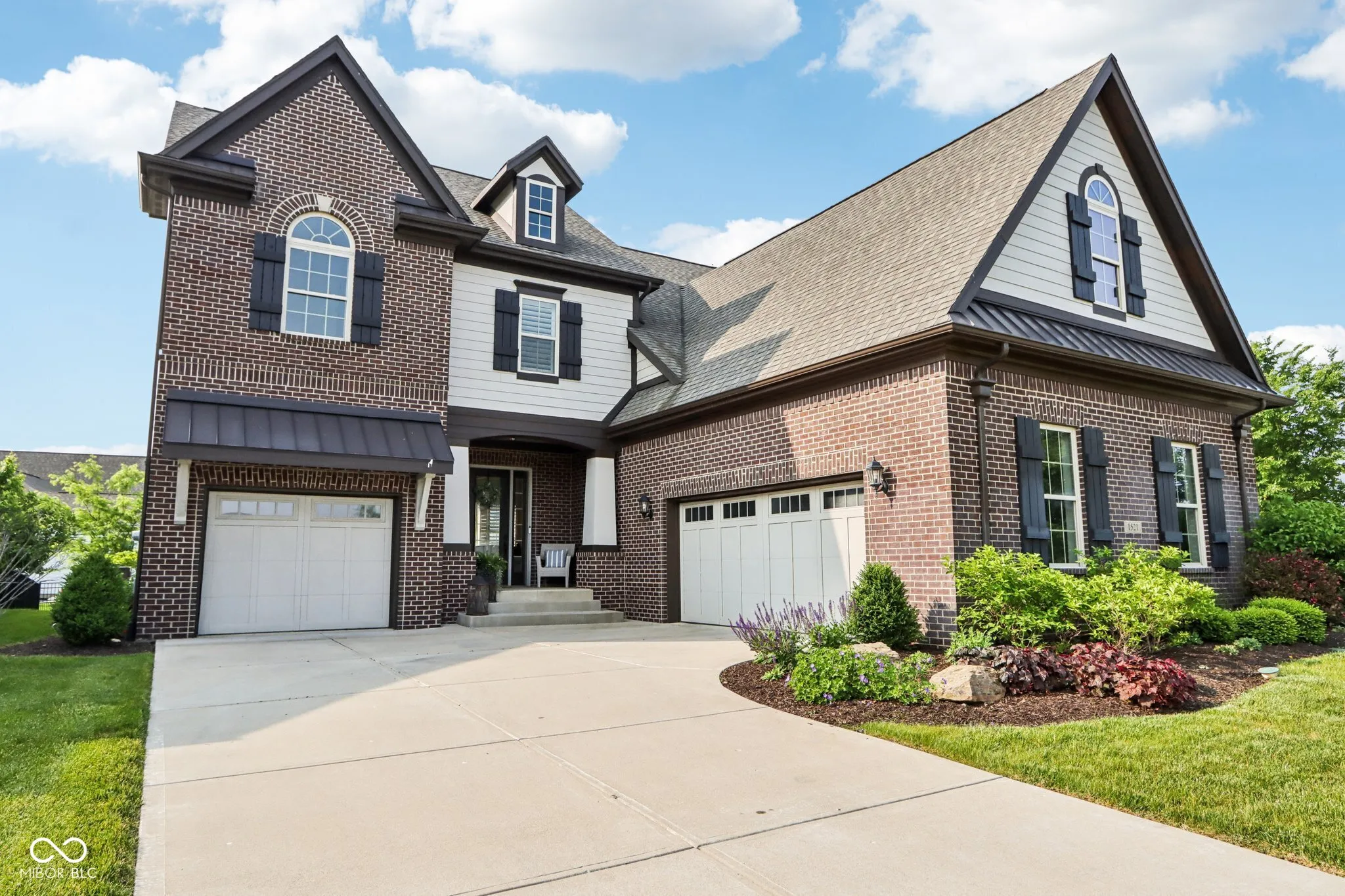 Beauty & elegance shine in this meticulously maintained Tudor. Relax in the open floor plan with 10′ ceilings and plenty of windows that have plantation shutters throughout the entire home. Kitchen is equipped with SS appliances, glass cooktop, pot filler. The nine foot center island has cabinetry storage on all four sides. Cabinetry has soft close doors and drawers and a roomy corner pantry. There is a gas hookup for a gas stove if a buyer wants to switch from electric. Great room has fantastic views of the backyard retreat & gas fireplace. A fifth bedroom was thoughtfully placed on the main level for guests, in-laws or office. Upstairs has a roomy loft, bedrooms two, three and four and a spacious Primary suite. The luxurious primary bedroom is bright and large enough for a California king bed, bathroom has double vanity/sinks and walk-in closet. Flooring throughout the entire home is luxury vinyl plank. Finished basement has a full bathroom, 2 large daylight/egress windows, plenty of room for pool table, workout space and tv entertainment. There is also a rough-in for a future wet bar to be installed. Entertain on the stunning private 16’x18′ covered back patio with wood burning fireplace. The .25 acre yard is perfect for family and pets. Enjoy the professionally landscaped yard and ease of care with an irrigation system. HVAC is dual zone. Home has a security system. Home is located across from community park, green space and gazebo. Community pools, club house, 24/7 gym and tennis courts are a quick walk down the street.