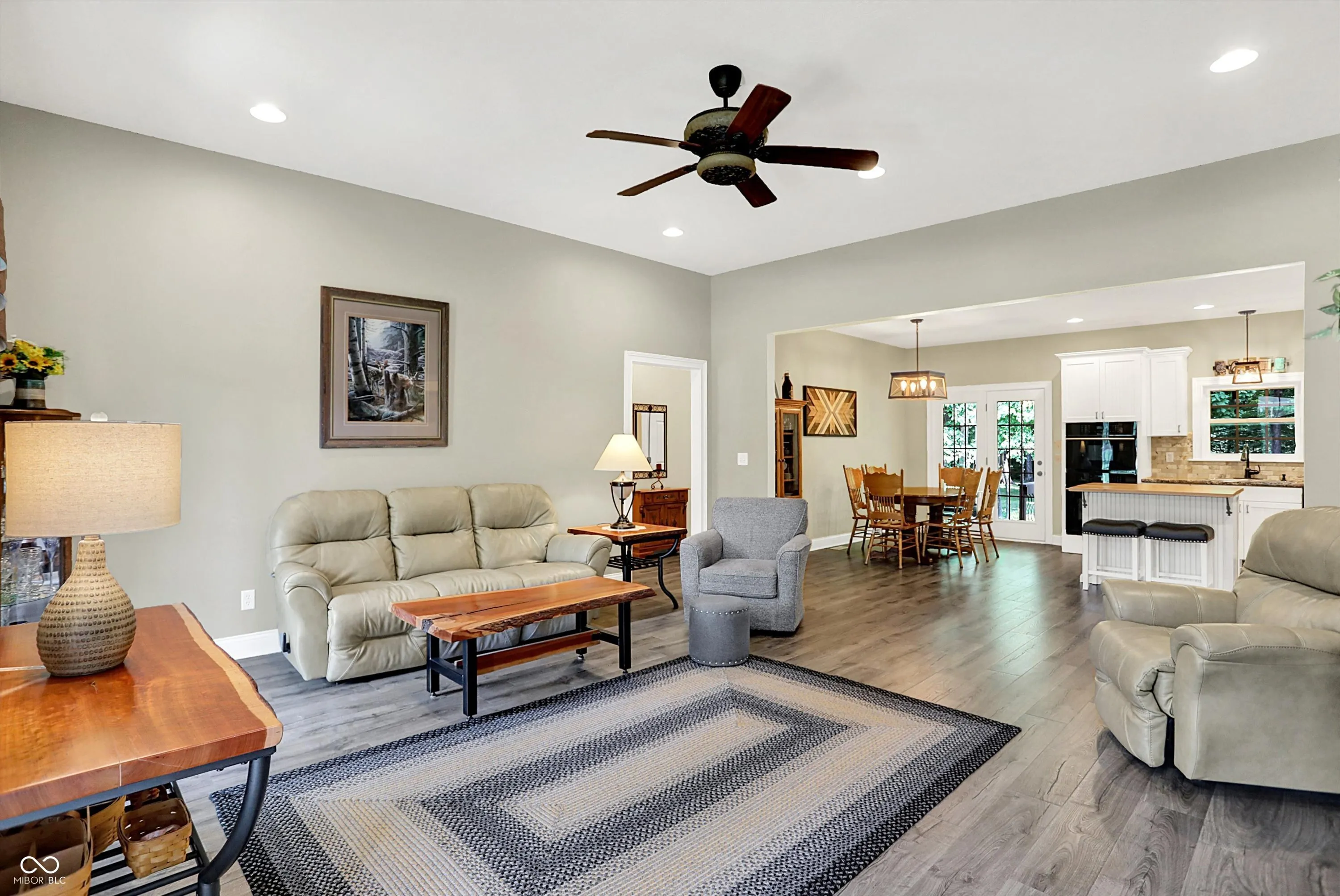 Welcome to this charming and beautifully maintained ranch home, perfectly situated on 2 parklike acres in a peaceful rural subdivision. With 3 spacious bedrooms and 2 full bathrooms, this move-in ready gem offers comfort, style, and space to truly enjoy life at home. Step onto the inviting front porch, perfect for relaxing with a cup of coffee or unwinding after a long day and immediately feel at ease. Inside, the open-concept layout is ideal for both everyday living and entertaining. The Great Room features soaring ceilings, creating a bright, airy atmosphere that flows seamlessly into the dining area and custom kitchen. You’ll love the oversized island, the true heart of the home, where family and friends are sure to gather. The home offers a split-bedroom floor plan for added privacy, with two bedrooms and a full bath on one side, and the serene primary suite on the other. The newly renovated primary bathroom is a luxurious retreat, complete with a walk-in tiled shower and a large garden tub, perfect for soaking away the day. Step outside and enjoy your own private retreat. With plenty of space to roam, you’ll find firepits for cozy evening campfires and scenic trails right out your back door. Whether you’re hosting a gathering or simply enjoying the outdoors, this property offers the lifestyle you’ve been dreaming of. This is a high-quality, well-built home that truly must be seen to be appreciated!
