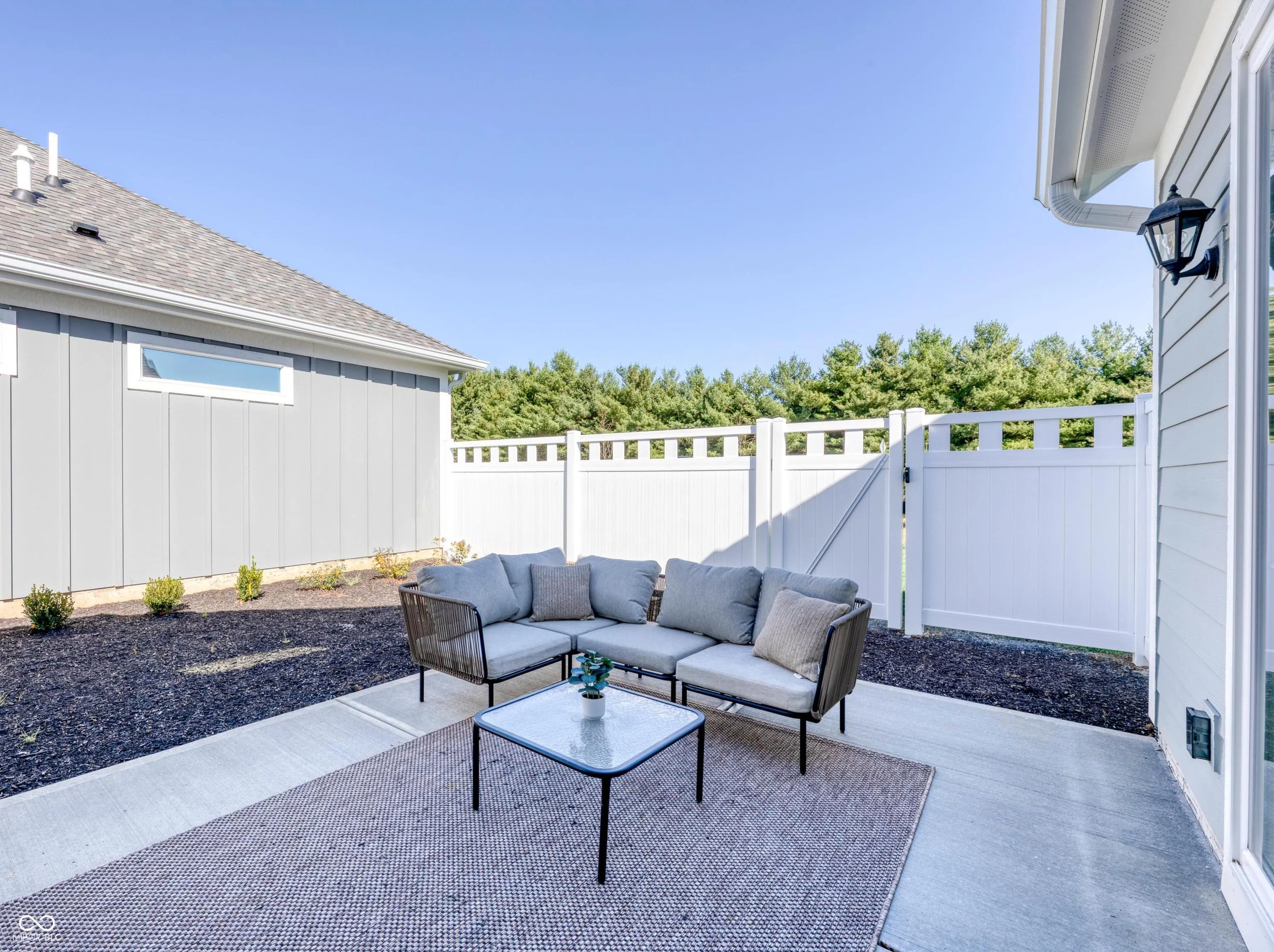 Start planning your move – this home is now completed! The Capri by Epcon Communities = Effortless Luxury, Designed for the Way You Live. Discover The Capri, a masterfully crafted home that seamlessly blends luxurious design with modern functionality – all on a true single-level, step-free layout. From the moment you walk in, you’ll notice the attention to detail and the ease of living that makes The Capri feel like home. This open-concept floor plan is filled with natural light and offers generous space with large bedrooms and beautifully designed living areas for your lifestyle. Whether you’re looking to relax, entertain, or work from home, The Capri offers the versatility to live life without limits. Gorgeous Kitchen with quartz countertops, a large pantry and open sightlines to the Dining Area and Living Room with gas fireplace -perfect for entertaining in style. Owner’s Suite Retreat features a cozy sitting room, walk-in closet, dual vanities, and a spa-inspired Universal Shower with a zero-threshold design. You’ll love the Private Patio, ideal for quiet mornings, alfresco dining, or evening relaxation – access it from the Living Room or the Sitting Room. The Split Bedroom Layout offers additional privacy for guests or family. A Covered Front Porch is the perfect place to relax with your favorite book or beverage. The Zero-Threshold Design throughout the entire home ensures ease of movement and accessibility at every turn. The Courtyards of Fishers offers a perfect blend of high-end, low-maintenance living in a community that’s close to everything: shopping, dining, downtown Fishers, Hamilton Town Center, and I-69. Coming soon – The Lounge – a common space with firepit for residents to gather. Whether you’re hosting guests, enjoying a peaceful retreat, or simply embracing everyday elegance, The Capri is the perfect fusion of comfort, functionality, and timeless style-designed with every lifestyle in mind.