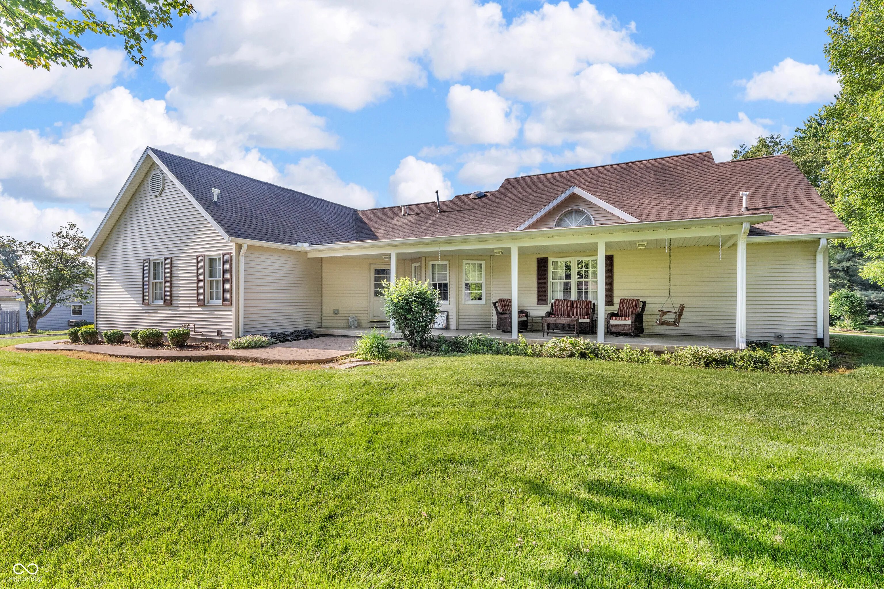 Immaculate custom home in sought-after Southridge Subdivision: Meticulously maintained one-owner custom home situated on a spacious 0.62-acre lot in the desirable Southridge subdivision. Offering convenient access to town and an easy commute to I-70, this home is a rare find with timeless appeal and thoughtful design throughout. Enjoy peaceful mornings and relaxing evenings on the charming covered front porch or unwind on the covered back porch overlooking the professionally landscaped yard, stamped concrete patio, and mature trees-a true outdoor oasis. Step inside to a warm and inviting main floor featuring a formal living room with soaring cathedral ceilings and a cozy gas fireplace, an elegant formal dining room, a spacious entryway with coat closet, and a large kitchen complete with center island breakfast bar, bay-window breakfast nook, and all appliances included. The primary suite is a private retreat with a generously sized bedroom, large walk-in closet, and an en suite bath featuring double sinks, a jetted tub and walk-in shower stall. Two additional guest bedrooms and a second full bathroom offer comfort and convenience on the main level. You will love the convenience and storage possibilities with the main floor laundry room and large utility room with washer, dryer and chest freezer included. Upstairs, a versatile bonus room with walk-in closet offers endless possibilities-use it as a 4th bedroom (after a simple attic walk-in closet conversion), a hobby space, or a second family room. The extra-large 3-car finished garage is ideal for car enthusiasts or anyone needing ample workspace, featuring new garage doors (2020), a workbench, built-in cabinetry, and abundant storage. Plus, the backyard shed adds even more utility with shelves and its own workbench. This neat, clean, and move-in-ready home offers immediate possession at closing-just bring your personal touch and make it yours!