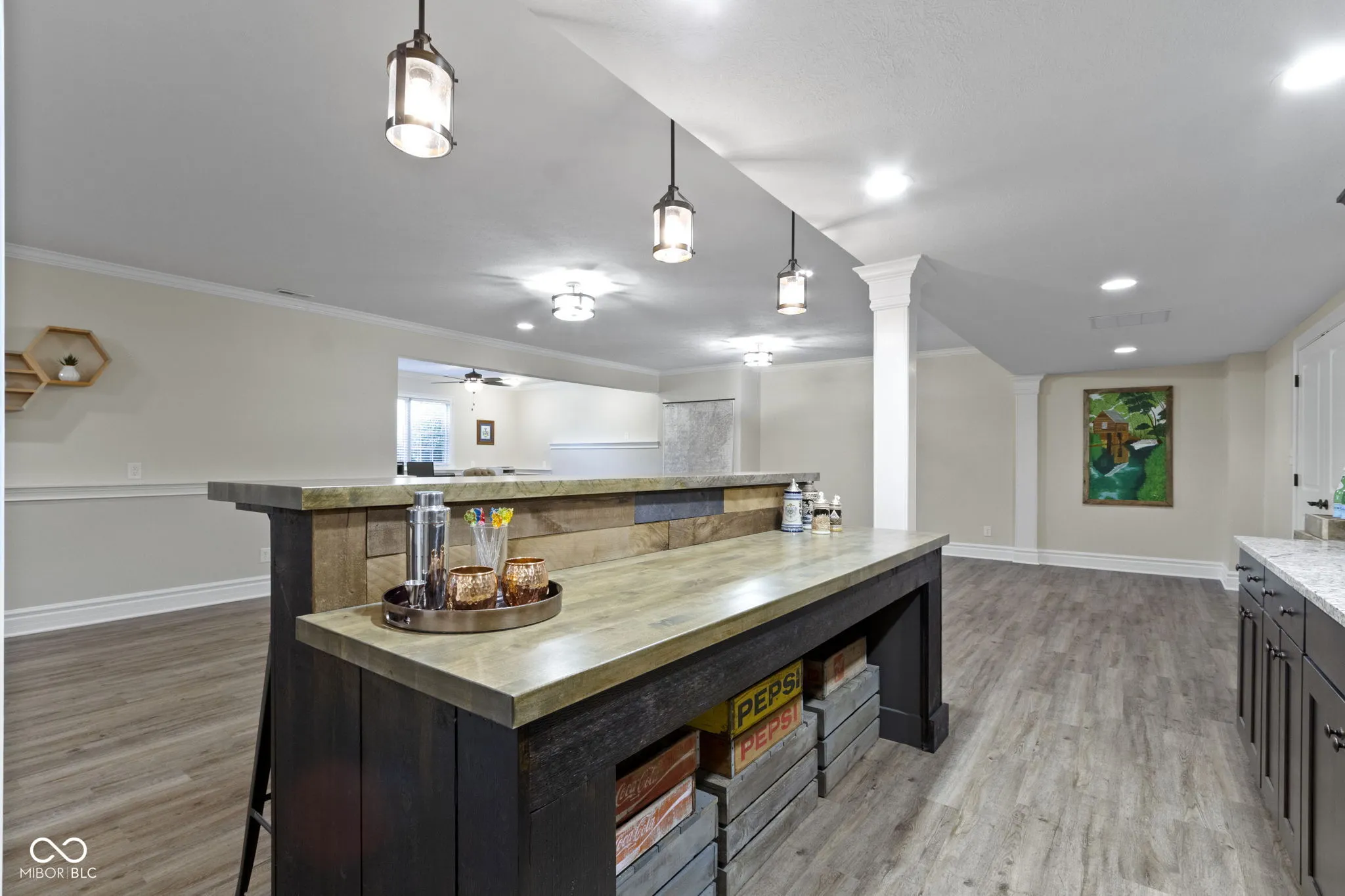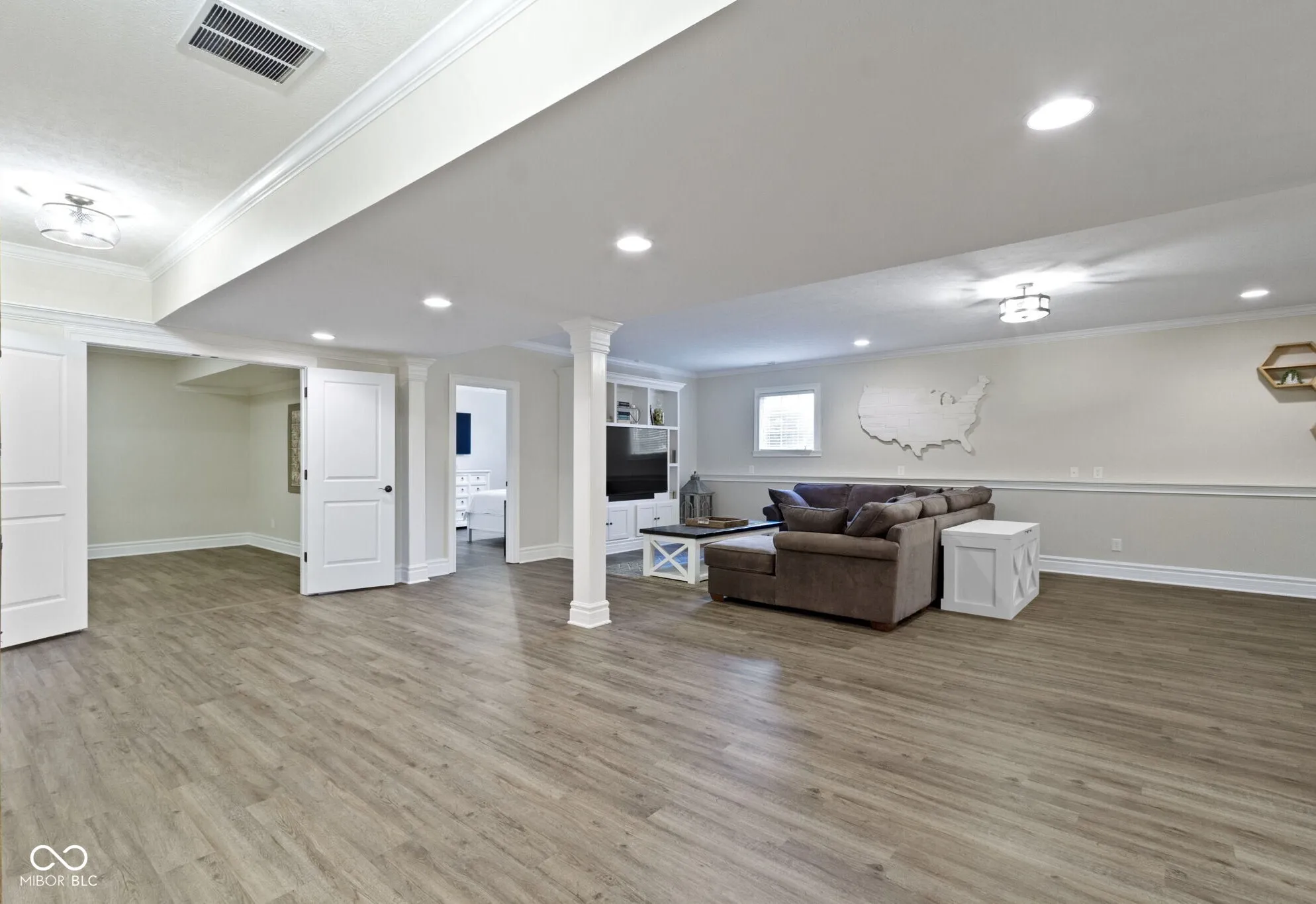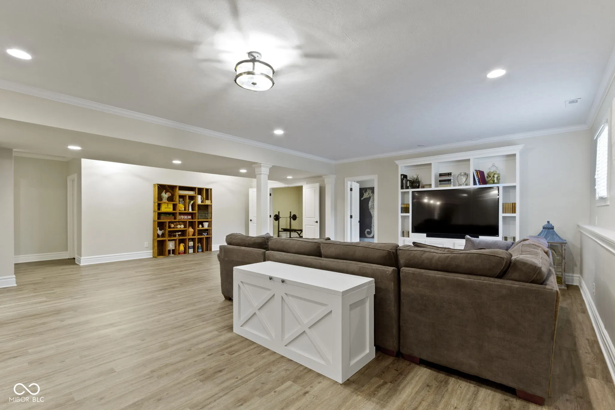 This custom-built 4-bedroom 3.5 bath ranch in popular Sagamore on a finished basement has an open layout and split bedroom design. The kitchen with an island and a large walk-in pantry and the sunny breakfast area overlook the great room with a cathedral ceiling, gas fireplace and a built-in entertainment center. The primary suite features a large bathroom with a tiled shower, soaking tub, double vanities, linen closet and a walk-in closet with a window seat and built-in shelving. Bedrooms 2 and 3 on the main floor share a jack-and-jill bathroom with double vanities and a linen closet. Also on the main floor are a half bath, large laundry room with cabinets, laundry sink and a window, along with a mud room with a built-in bench w/cubbies. The finished basement features daylight windows, a recreation/family room with a wet bar, exercise/flex room, office area, the 4th bedroom and a full bathroom. Spacious 3-car garage w/utility sink. Sagamore common area is at the rear of the house and hole #6 is across the street from the front of the house.