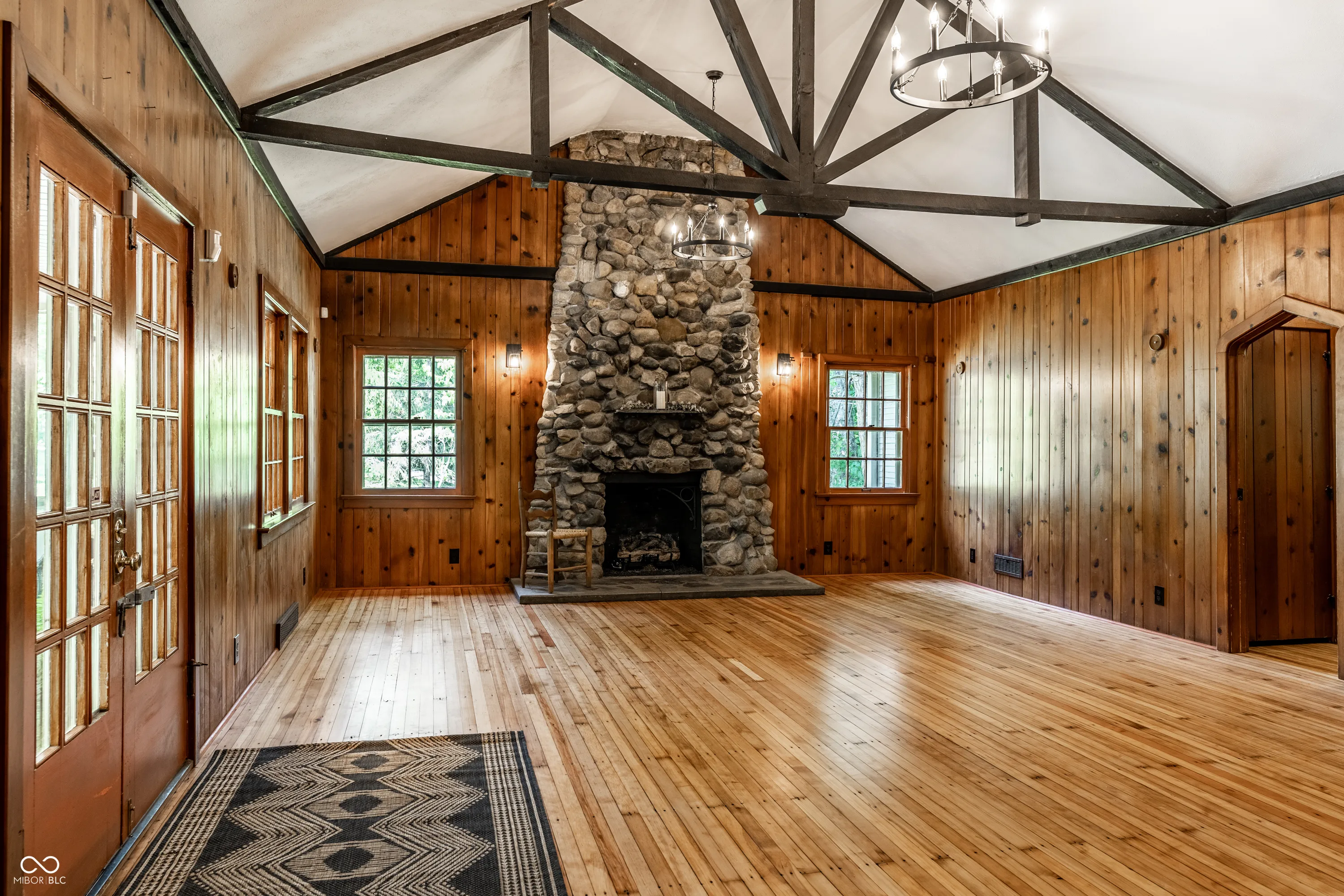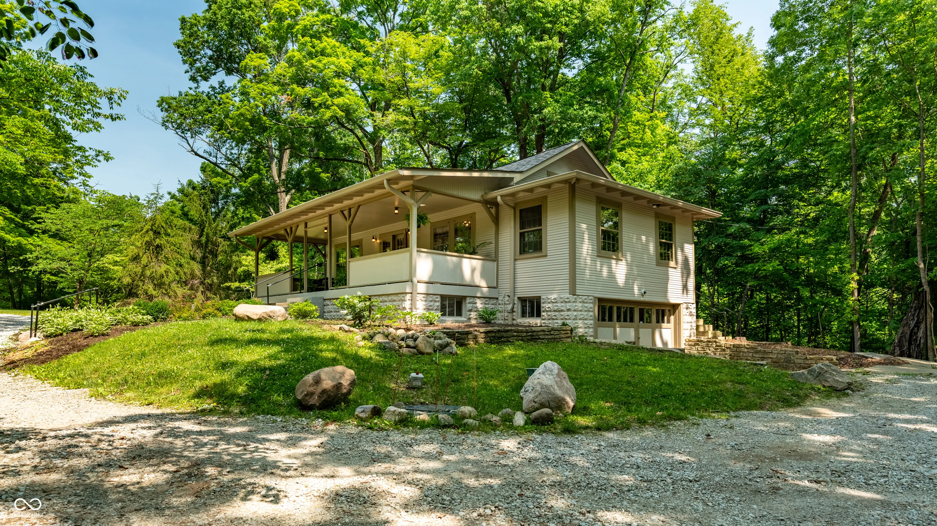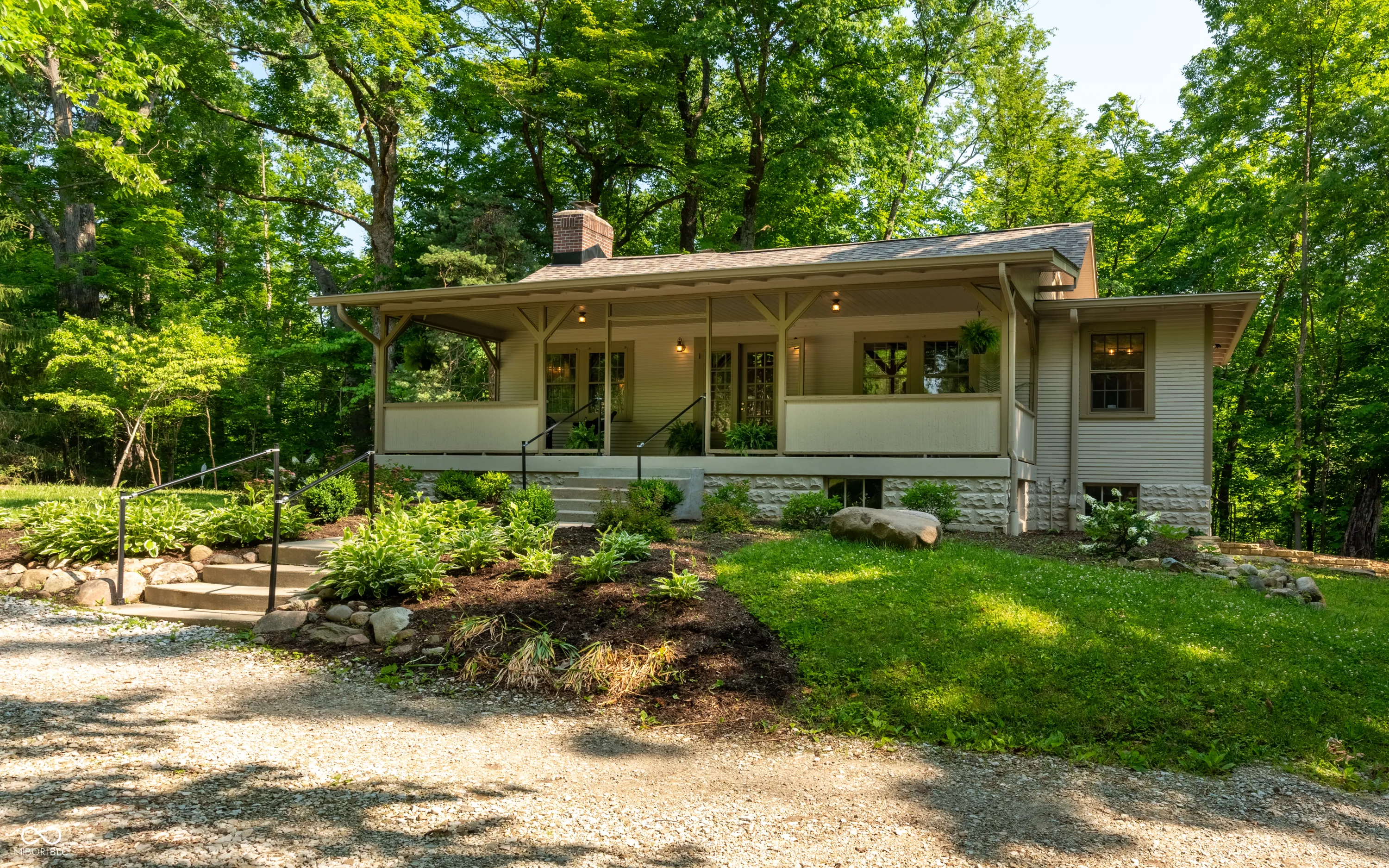 A charming front porch welcomes visitors at the end of a private drive, setting the tone for a true escape. Nestled on over 5 acres of rolling hills, this 1930s cabin blends rustic beauty with modern comfort-an ideal retreat for adventurers, nature lovers, and those in search of open space and quiet. Inside, vaulted ceilings, original hardwoods, rich wood paneling, and a cozy loft define the inviting interior. A striking stone fireplace anchors the living space, perfect for cool evenings after a day outdoors. The 2-bedroom, 2-bath layout has been thoughtfully updated with a new roof, mechanicals, and appliances-offering peace of mind while preserving the cabin’s timeless charm. The walk-out basement provides ample space for storage or a workshop, while a detached garage accommodates gear of all kinds-ATVs, kayaks, or extra vehicles. Private trails meander through the property, leading directly to Eagle Creek for fishing, kayaking, or wooded hikes. Just minutes away, Eagle Creek Park-the city’s largest-adds even more opportunities for sailing, rowing, and exploration. Nearby, Traders Point Creamery offers farm-to-table dining and seasonal events, adding to the area’s distinctive appeal. A place for both adventure and stillness-where fireflies flicker through the trees and every sunset feels like a moment worth remembering.