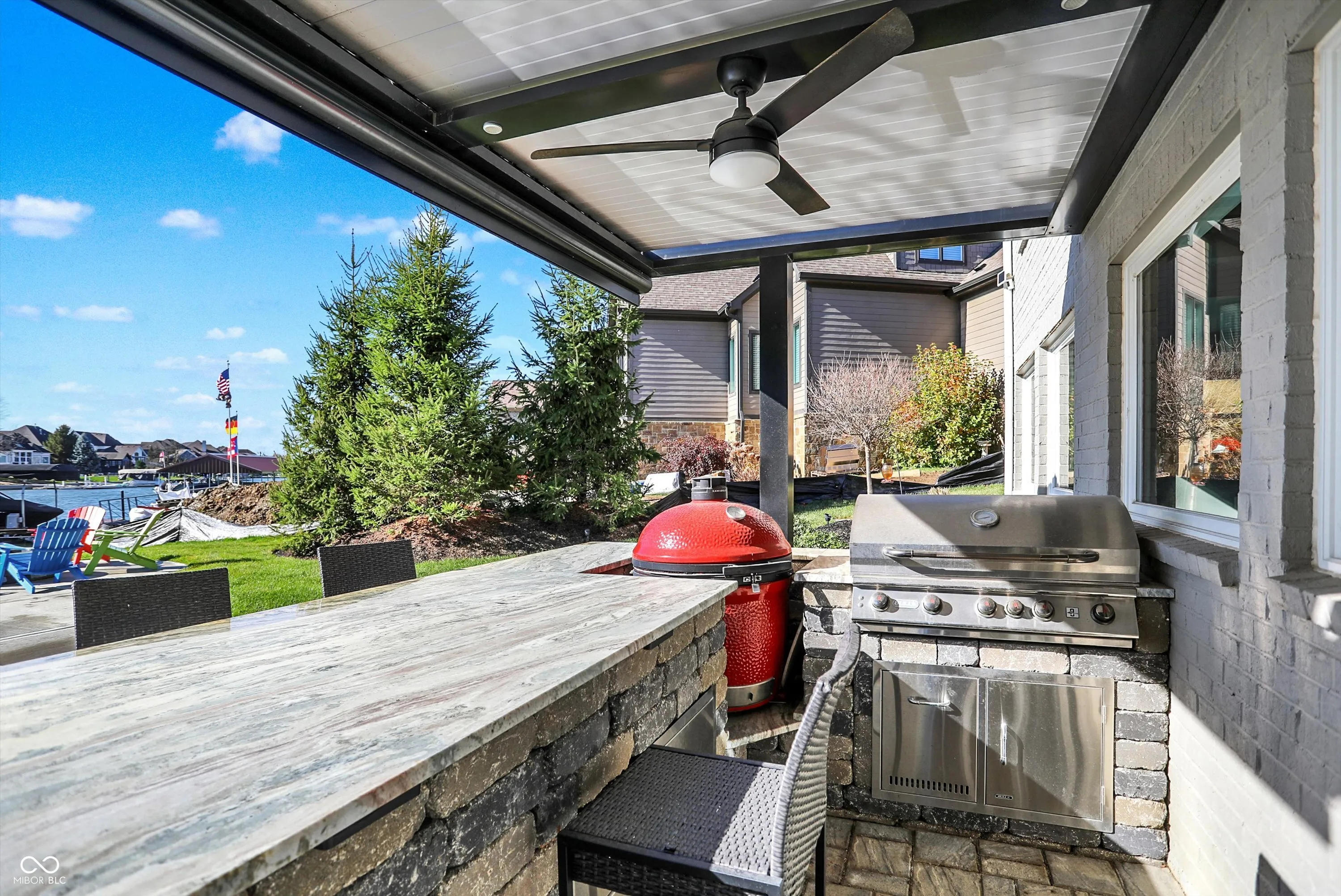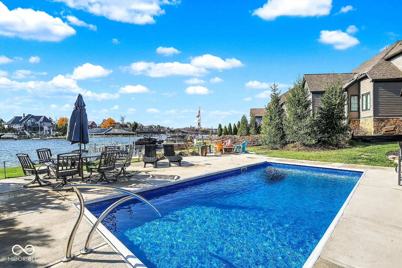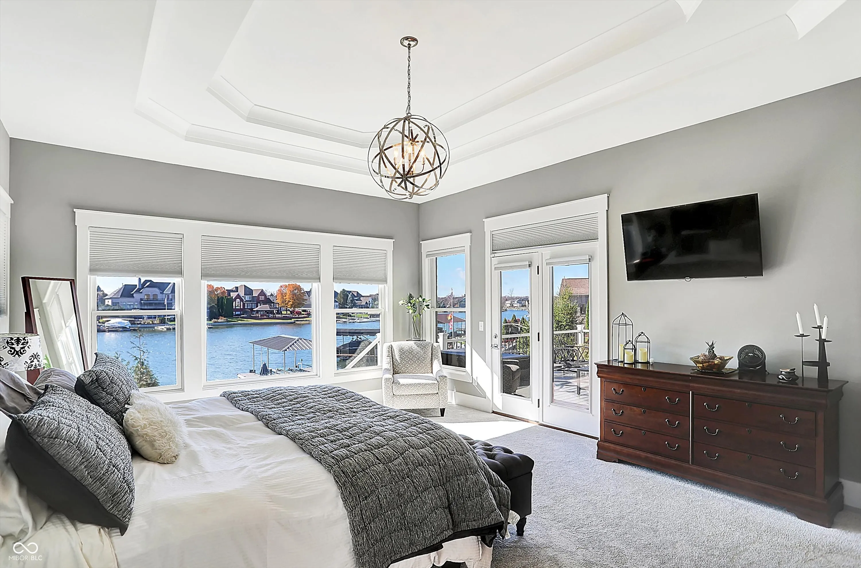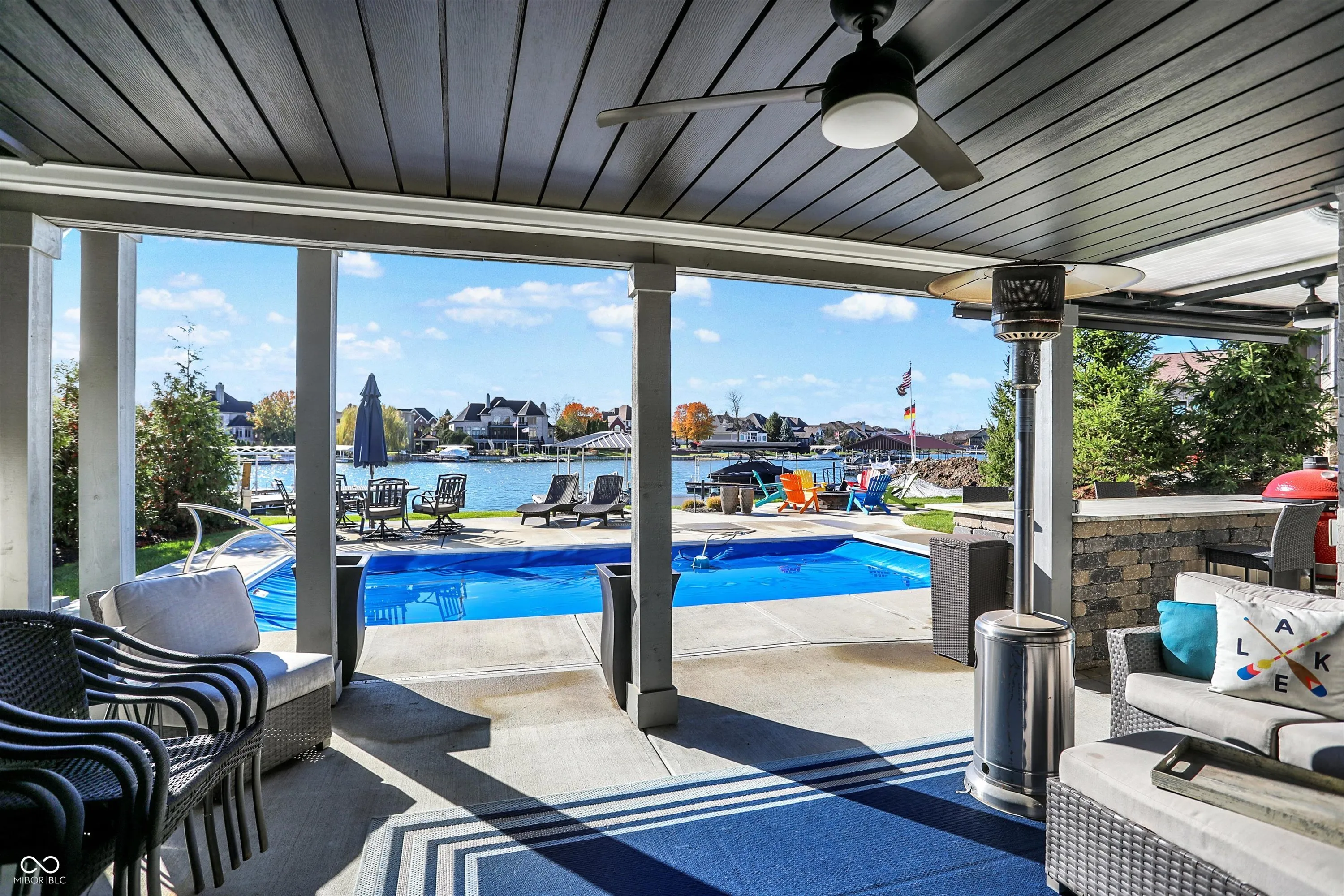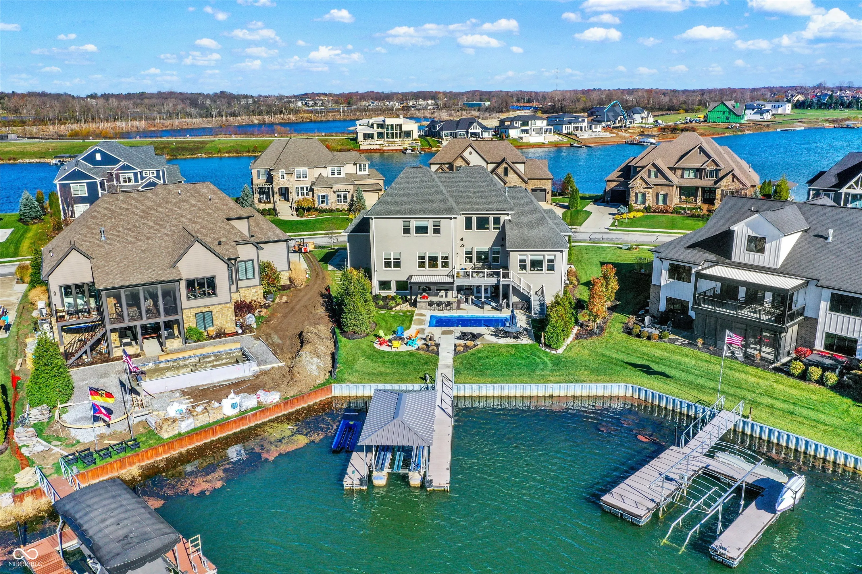 Experience the pinnacle of luxury living with this exquisite waterfront estate, perfectly situated in a private cove that combines serene seclusion with unparalleled lake access. This like-new masterpiece offers 6 spacious bedrooms, 2 conveniently located on the main level. Six beautifully designed bathrooms, all crafted for comfort and sophistication. From the moment you step inside, you’ll be captivated by the expansive rooms, a dedicated office, a formal dining room, and a chef’s dream kitchen featuring a center island-perfect for both casual dining and grand entertaining that flows right into the great room. The walk-out basement redefines entertainment with a custom bar, state-of-the-art theater room equipped with Screen Innovations Black Diamond Zero Edge backlight screen and premium speaker system, an exercise room and direct access to the backyard retreat. Outdoors, this property truly shines. Relax on the covered porch, take a dip in the heated pool, or cook up a feast in the custom-built outdoor kitchen-all while enjoying breathtaking views of the lake. Your private dock, complete with a hydro hoist boat lift and a covered slip, makes launching into sunset cruises a breeze. The home’s private cove location ensures tranquil waters, perfect for swimming and paddle boarding. No detail has been overlooked, recent upgrades include a new louvered roof, expanded backyard with a newly added seawall, a UV filtration system for the HVAC, custom landscaping and custom outdoor lighting that enhances the home’s natural beauty. Beyond the amenities, this home offers a lifestyle like no other. Whether you’re hosting friends for lively gatherings, spending quiet mornings on the porch with a coffee or cruising the lake at sunset, this property seamlessly blends everyday luxury with unforgettable experiences. Don’t miss the chance to make this extraordinary property yours. Schedule your private tour today and discover a world where every day feels like a vacation!