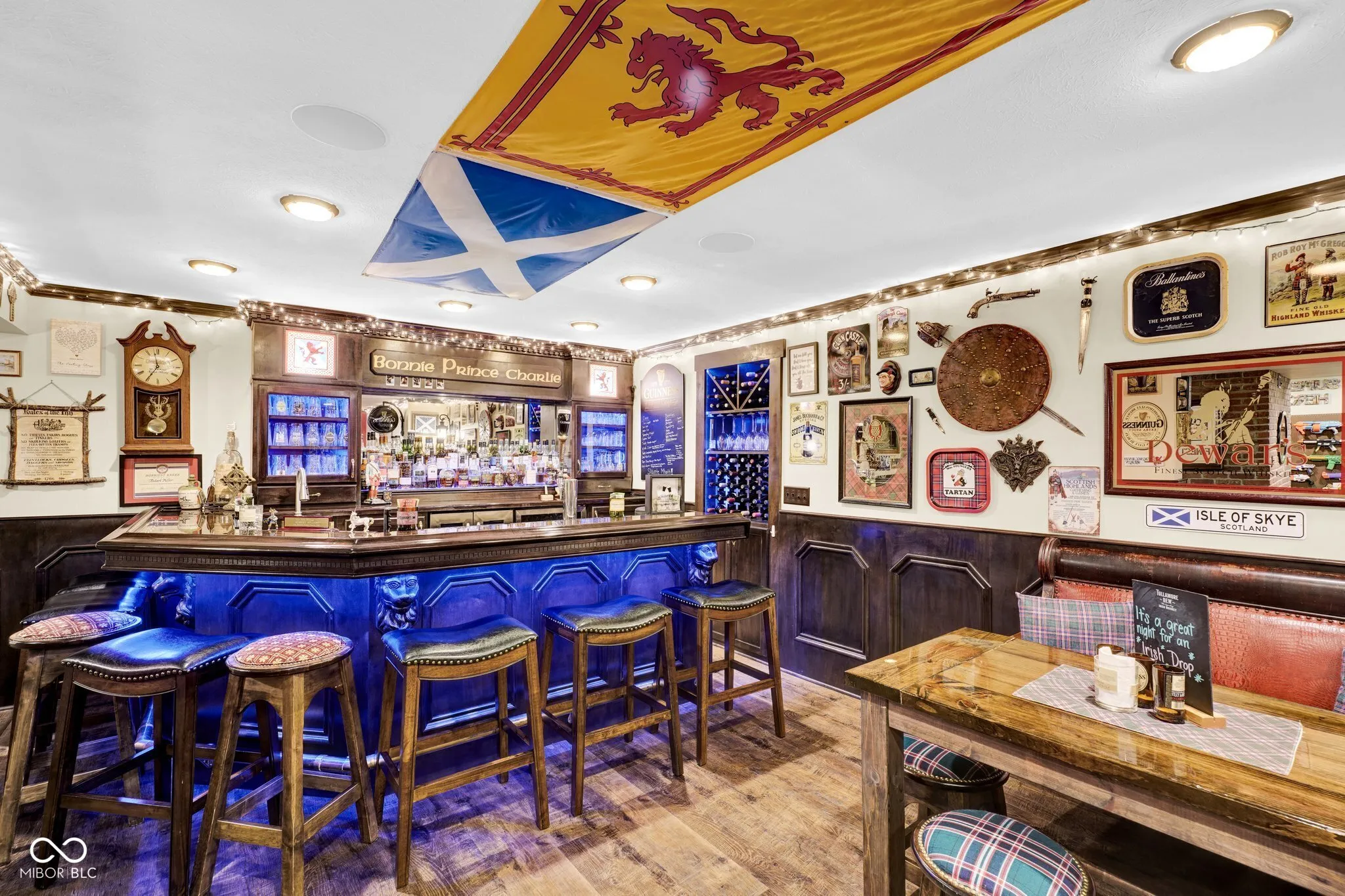 Stunning 5-bedroom, 3.5-bath home with almost 4000 square feet of beautifully finished living space and located in the highly sought after Cobblestone community. The grand foyer welcomes you into the home that has been professionally designed by an interior decorator and features an expansive kitchen, complete with granite countertops, large center island, breakfast bar, walk-in pantry and double oven that seamlessly opens to both the living room and family room-perfect for family gatherings and entertaining. This home offers five spacious bedrooms, including the luxury primary suite, which boasts two walk-in closets and a grand ensuite bath, complete with dual vanities, walk-in shower and a large garden tub. The finished basement is a one-of-a-kind gem, which has been transformed into an authentic, custom-designed Scottish pub complete with handcrafted details including a bespoke bar. From the rich wood finishes to the old-world charm, every inch exudes character and craftsmanship rarely seen outside of Edinburgh itself. Perfect for entertaining a crowd or simply escaping to your own private Highlands retreat. Set on over a half-acre lot, the impeccably landscaped yard includes an irrigation system, invisible pet fence, and multiple outdoor living areas. This home exudes custom and quality finishes both inside and out, truly a rare find! Schedule your private showing today!