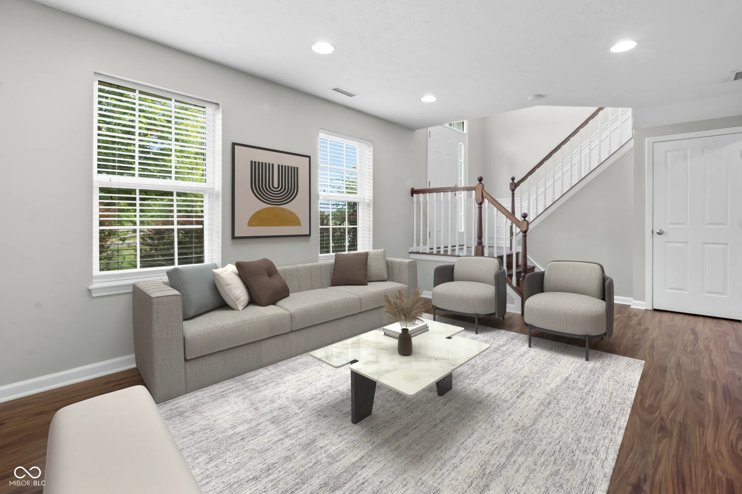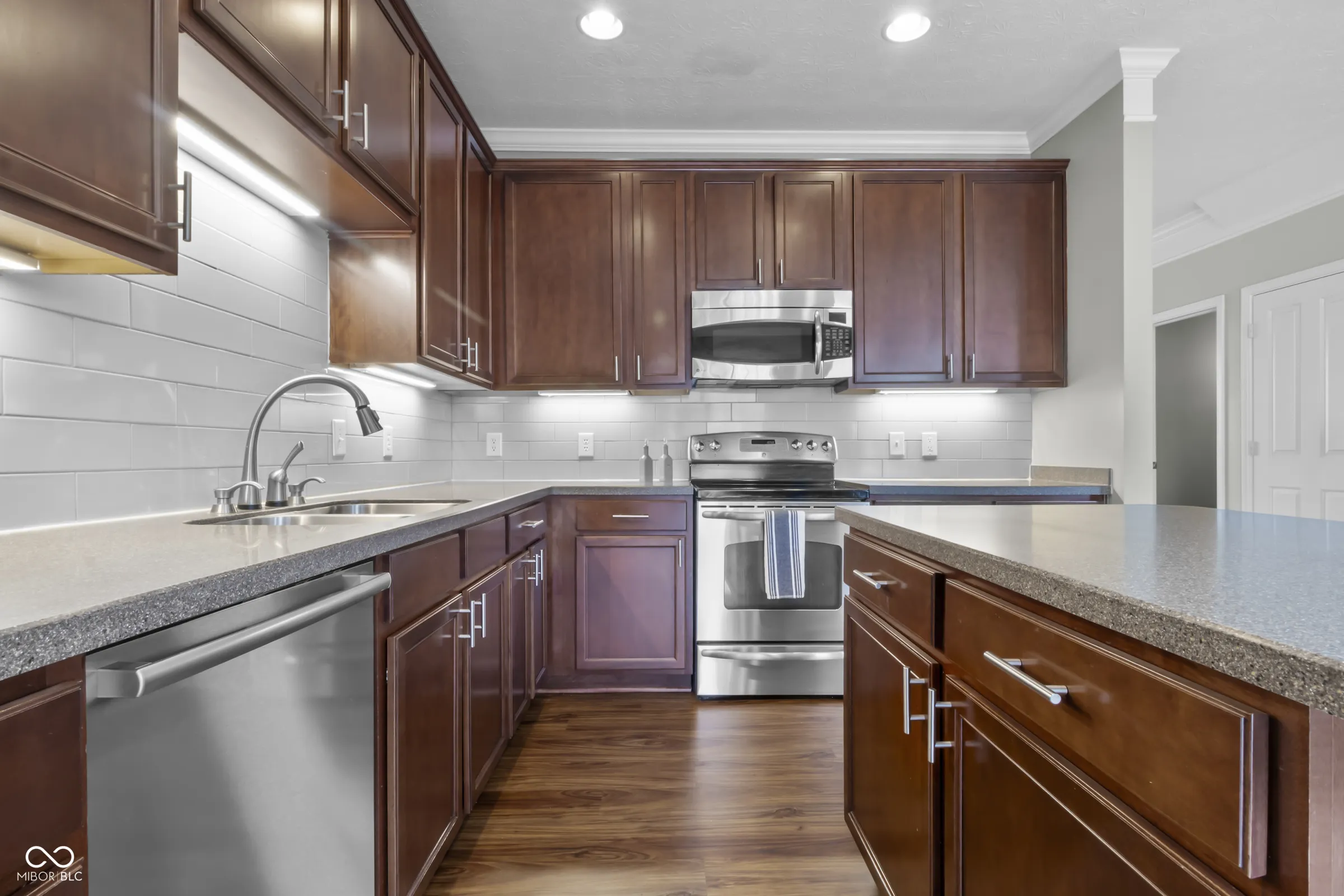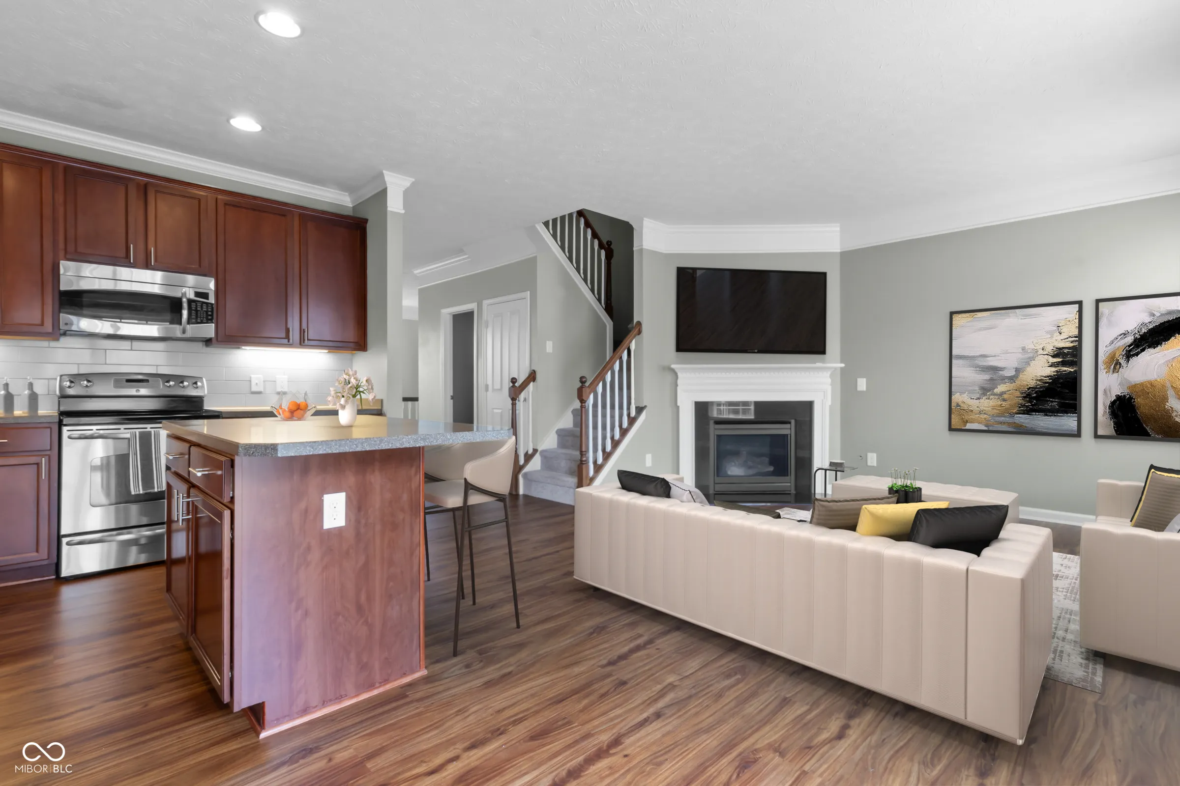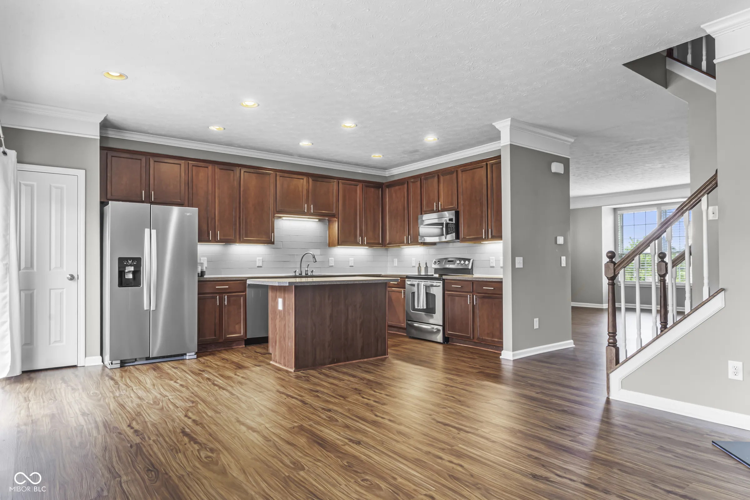 This spacious luxury townhome features a prime location in Westfield! Walk to the Kroger plaza with many shops. Grab a coffee at Starbucks, get a workout, a massage or have your nails done. Enjoy multiple restaurants and bars. All without driving! You will enjoy the community amenities that include a pool, club house, tennis, playground, basketball, ponds, and trails. There is an amazing expansive view of green space with three ponds! You can enjoy the unobstructed view from your front porch, lower level, living room and primary suite. Completely renovated in May, 2024. All new flooring including LVP flooring everywhere including the bedrooms. New appliances, new lighting, backsplash, under cabinet lighting in the kitchen. The lower level has a large half bath. It has a large set of cabinets with counters for storage. This unique set up makes the lower level multi-factional: use it as a home office, playroom, craft room, or additional living space. You get to choose with your needs. Open living areas on the main level has a gas fireplace. It opens to a dream kitchen. High end finishes including high quality cabinets, stainless steel appliances, solid surface countertops and touch sensor faucet! The upper level has 3 large bedrooms. Each comes with vaulted ceilings and large closets. Both master bath and hall have ceramic tile flooring and solid surface countertops. The primary bedroom and bath have the most amazing view! Seller to provide a one year HSA Home Warranty with purchase of the home.