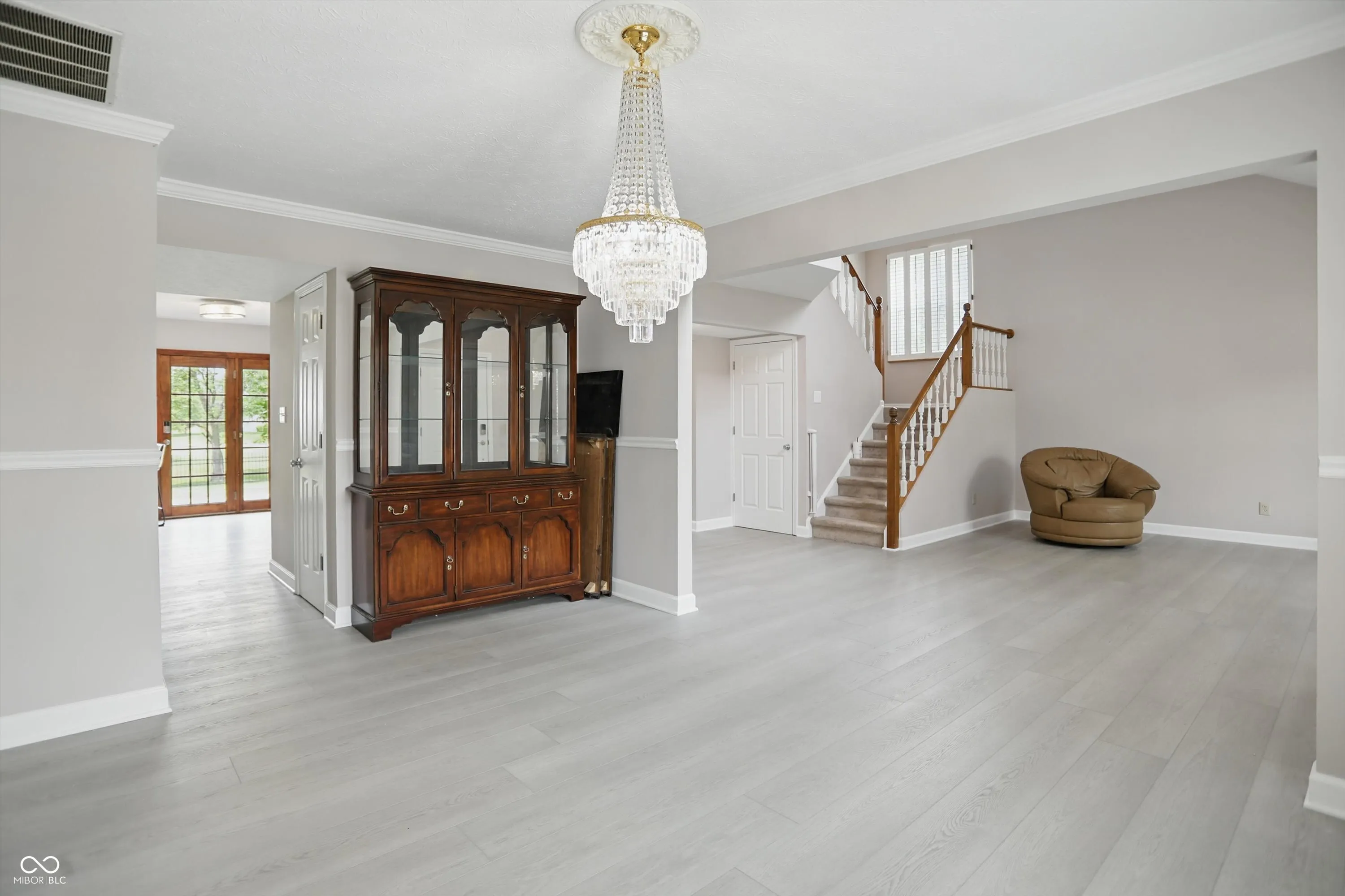 Home Sweet Home. Take a deep breath and prepare to enter this beautiful 4bd, 2.5 bth, 2 story home with a partially finished basement! From the moment you pull up, peace and serenity call out, enter to be wowed by the grand foyer, formal family room and dining room, with an open balcony calling you upstairs and view of the spacious living room boasting of a gas fireplace and an abundance of natural light. Adjoining in this open space is the completely updated chef’s dream kitchen w/ a 36″ gas oven/range AND a built-in microwave convection oven! All new vinyl plank throughout the main level, and a massive 400+ sq ft den/office just beyond the kitchen enroute to the enormous 3 car gar. Don’t miss the main level laundry and 1/2 bath on your way back through, not to mention peering out over the fully fenced backyard for all of your summer cookouts! Upstairs you will be wowed by the massive primary suite boasting of dbl sinks, oversized tub, walk in shower, and walk in closet! 3 more bdrms and a full bath down the hall. Venture back down to the basement to find two more finished rooms and storage galore! Corner lot, prime location, what more could you ask for?!
