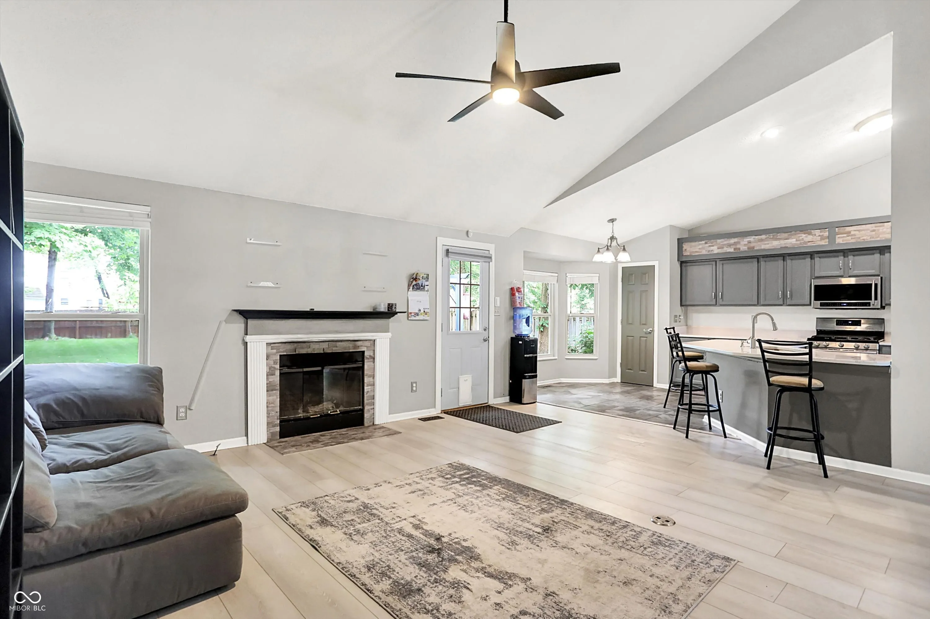 This 4-bedroom, 2.5-bath home offers nearly 2,900 square feet of living space in the Center Grove school district. The open and airy main level features vaulted ceilings, recent LVP flooring, and multiple living areas perfect for both everyday living and entertaining. The spacious primary suite is tucked away on the main floor and includes dual walk-in closets and a beautifully updated bathroom with a soaking tub, separate shower, and double vanities. The kitchen is highlighted with quartz countertops, abundant cabinetry, a gas range, and a sunny breakfast nook that overlooks the backyard. Upstairs you’ll find three generously sized bedrooms and a full bath, offering plenty of space for family or guests. A cozy gas fireplace anchors the family room, and the formal dining and living rooms provide additional versatility. The finished two-car garage includes a 10-foot bump-out for extra storage or workshop space. Step outside to enjoy a fully fenced backyard with a paver patio and storage shed, perfect for relaxing or hosting gatherings.