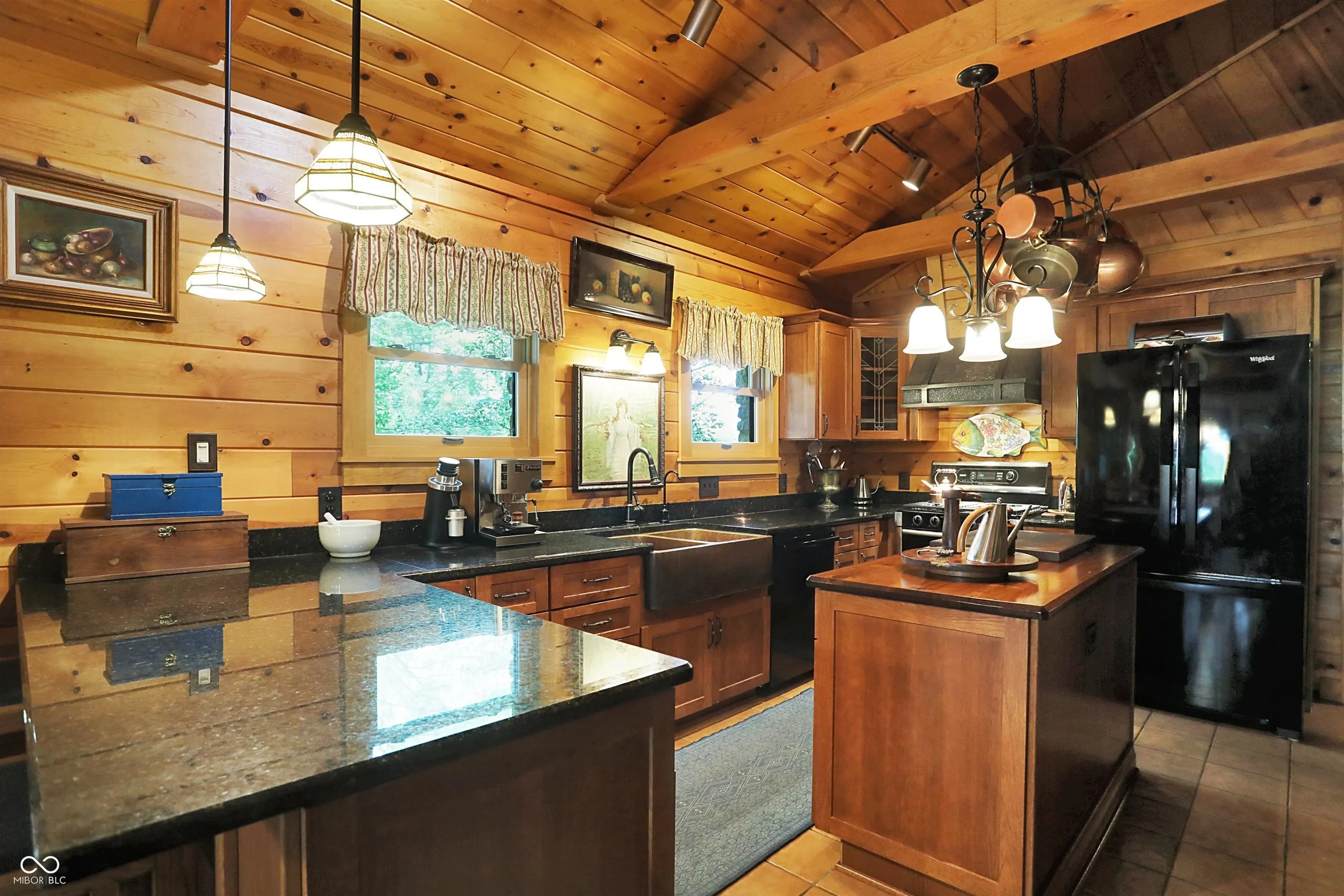 Cozy, lodge-like home with privacy & class, just 2 miles south of Greenfield city limits. This locally esteemed chef’s recently renovated home has the large kitchen you’d expect, including: walk-in pantry, work island, copper sink & exhaust hood, new refrigerator & dishwasher, granite counter tops, vaulted ceiling, & gas range. This home also has a tankless hot water heater, reverse osmosis system, tornado shelter, encapsulated crawl/basement, recent heating & air conditioning, walk-in cedar closet, plus enclosed front & side porches. You can lose yourself to nature while sitting in the formal blue stone patio gardens with fountain & herb gardens, plus a free-standing greenhouse & a small orchard including apple & persimmon trees. This warm & delightful offering is a must see. See list attached to BLC for exclusions from sale.
