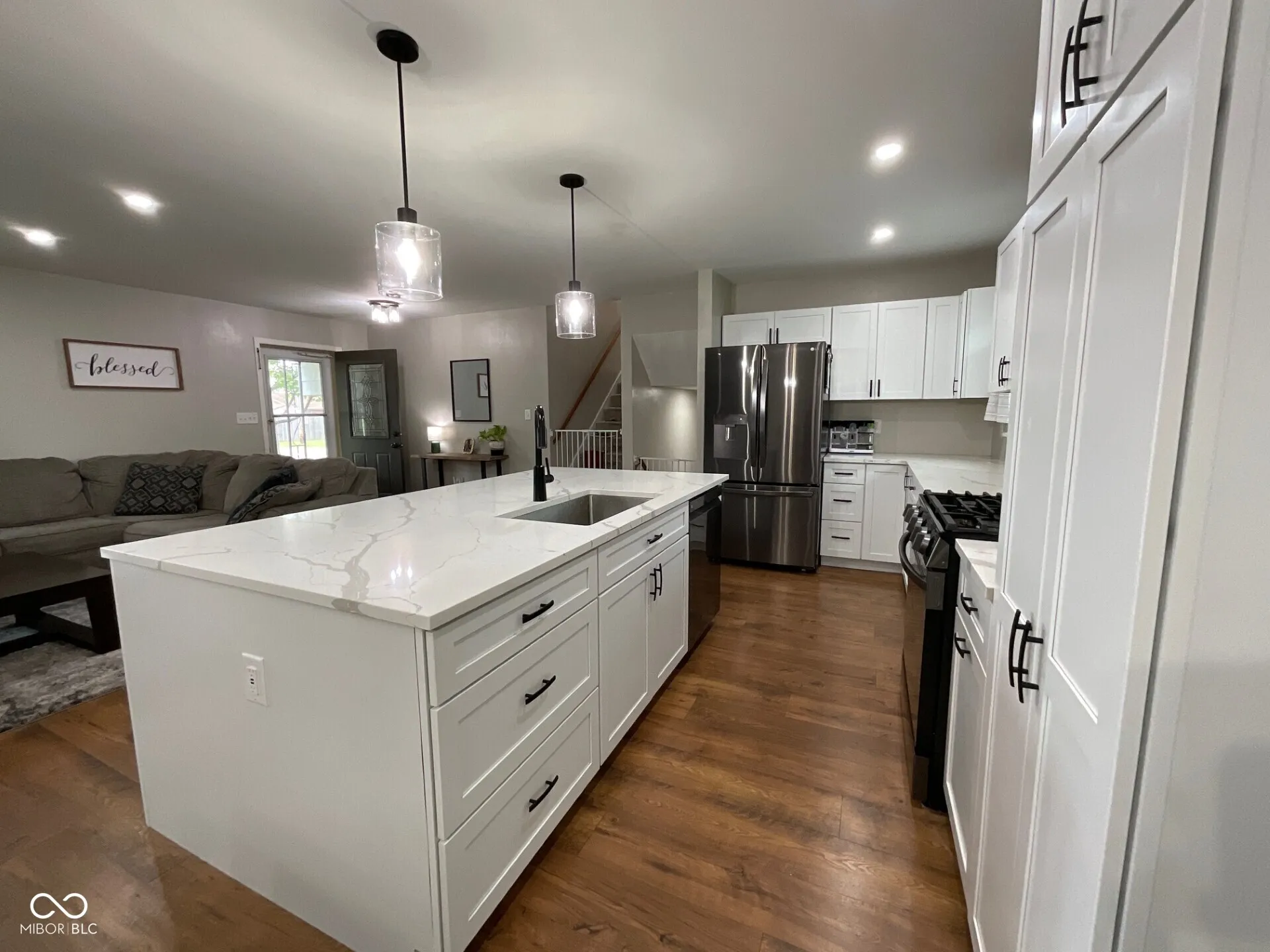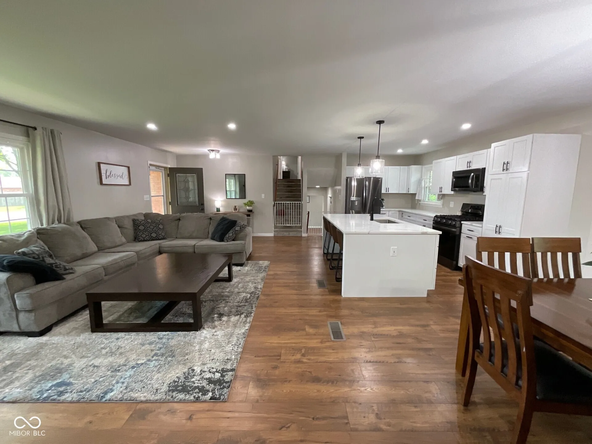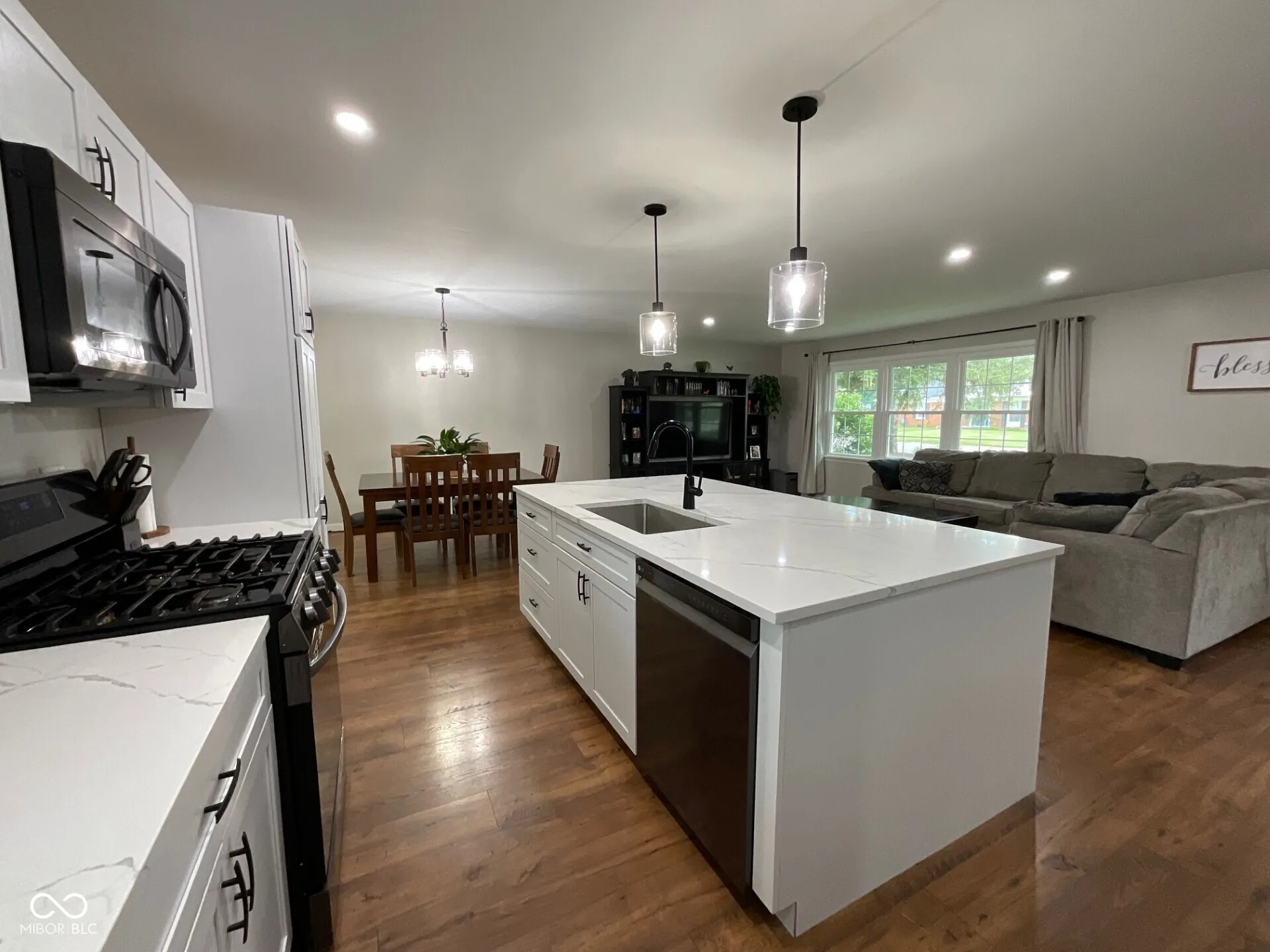 This beautiful and thoughtfully remodeled tri-level home with 3-Bd, 2-Ba and a 2-car attached garage offers style, space, and comfort in a fantastic location! The main level is a stunning open-concept, combining the kitchen, dining, and living areas centered around a 4×7 quartz island that has a breakfast bar seating opportunity-perfect for everyday living or entertaining. The kitchen shines with all-new stainless-steel appliances and a gas stove/oven, all new cabinets with quartz counter tops. Just off the dining area, the 16×12 sunroom gives you a place to relax and retreat. With wall-to-wall window views from the sunroom, you’ll see a lovely, landscaped backyard with mature trees, fully fenced, a 10×20 storage shed, and a fire pit with lighting. The newly poured patio can be enjoyed in many ways. It’s so handy for grilling out or catching some sun and reading a book. Side-gates on both sides of the property make it easy to move around. The spacious bedrooms and laundry, a utility room, and large windows are just bonuses but really help make this home so functional! The family room has windows on each end and a handsome masonry fireplace (currently not in use). Interior and exterior of the home have been recently painted in 2024 and 2025. To round out the list of upgrades there is an 8.5 x 11-page attachment full of the updates that have been completed on this home! This home is truly move-in ready! Call your agent, they can get that information for you! The sellers are also providing a two-year Choice Home Warranty for the new owners.