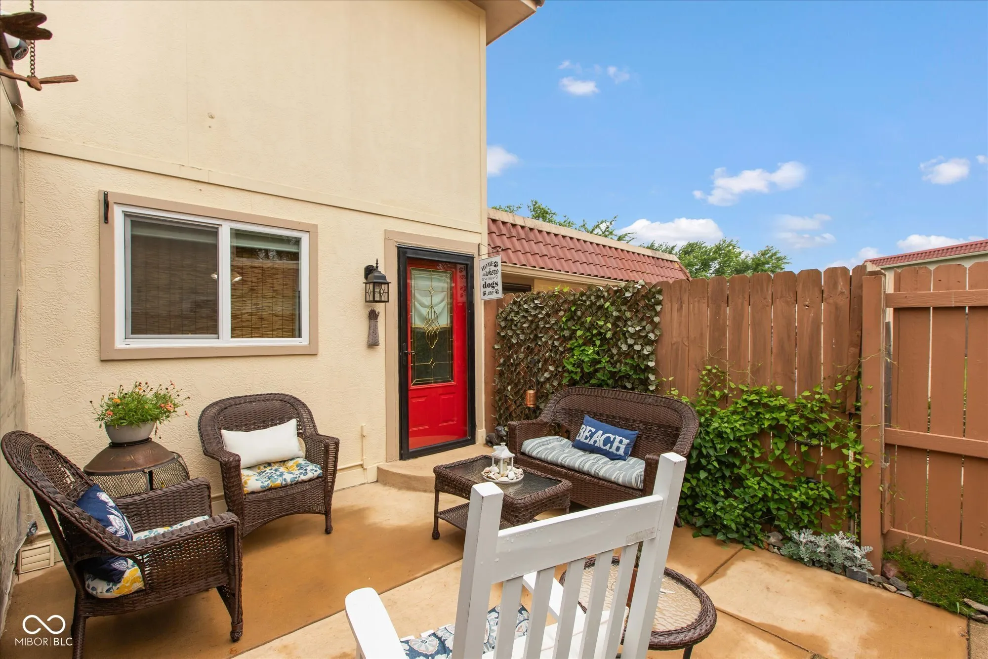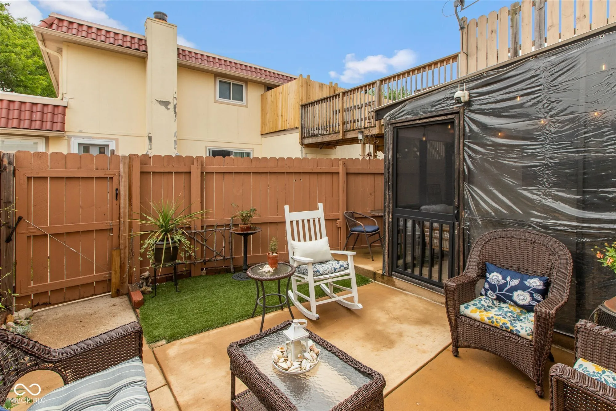 Move in ready condition condo. Complete with refrigerator, electric range, over the range microwave, dishwasher, new garbage disposal, stackable washer and dryer. Newer electric water heater and water softener, electronic front and rear door locks, bamboo blinds, curtains and 3 outdoor security cameras are included. Shared garage has a private entry that opens to the open concept floor plan design that flows nicely to main living area overlooking private courtyard patio and screened in porch that includes outdoor hanging lights. Living room and front security door windows offer natural lighting and for additional lighting living room ceiling fan includes lighting. Upper level full bath and bedrooms complete with nice size closets. All windows have been replaced with double pane energy efficient windows. Seller has paid in full the 2025 special assessment.