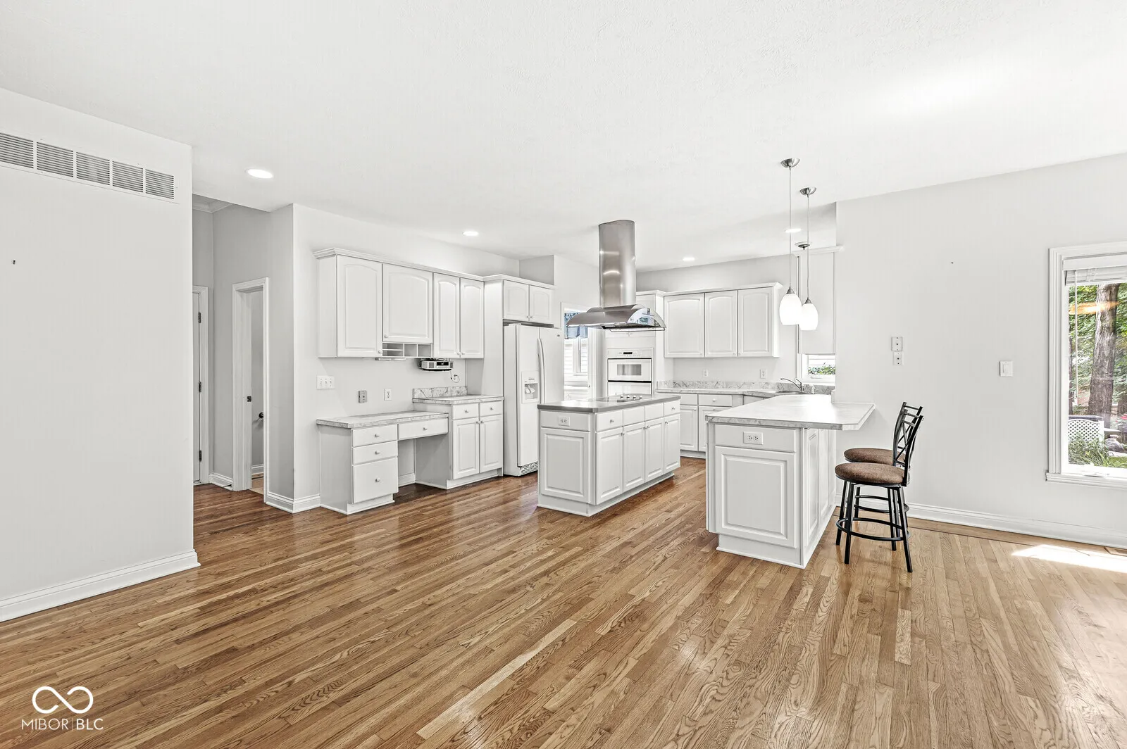 Searching for a custom-built ranch with a finished lower level? Your search ends here. This exceptional home truly checks every box-full brick exterior, soaring ceilings, hardwood and ceramic tile floors, an A-rated school district, and abundant indoor and outdoor living spaces. A private office and an oversized 3-car garage complete the package. The inviting Great Room features rich hardwood floors, a wall of windows overlooking the backyard and deck, and a stunning dual-sided fireplace. The dining room impresses with inlaid hardwood flooring and a tray ceiling, perfect for hosting gatherings. The kitchen is thoughtfully designed with a center island and custom hood, stainless steel appliances (2025), dual-sided fireplace, cozy hearth area, built-in shelving, and a charming nook. The finished lower level offers a spacious family room with custom built-ins, a wet bar, and a relaxing sauna-ideal for entertaining or unwinding. The primary suite is a true retreat, featuring atrium doors to the rear deck, a jetted tub, walk-in shower, separate vanities, and a generous walk-in closet. A second bedroom is located on the main floor, with three additional bedrooms in the lower level, multiple walk-in closets, and three full bathrooms. The finished 29×25 garage is a standout, complete with sealed floors, belt-driven opener, workbench, sink, wall-mounted power vacuum, gas line rough-in, service entrance, and attic access. Quality construction, meticulous care, and pride of ownership are evident throughout this remarkable home.