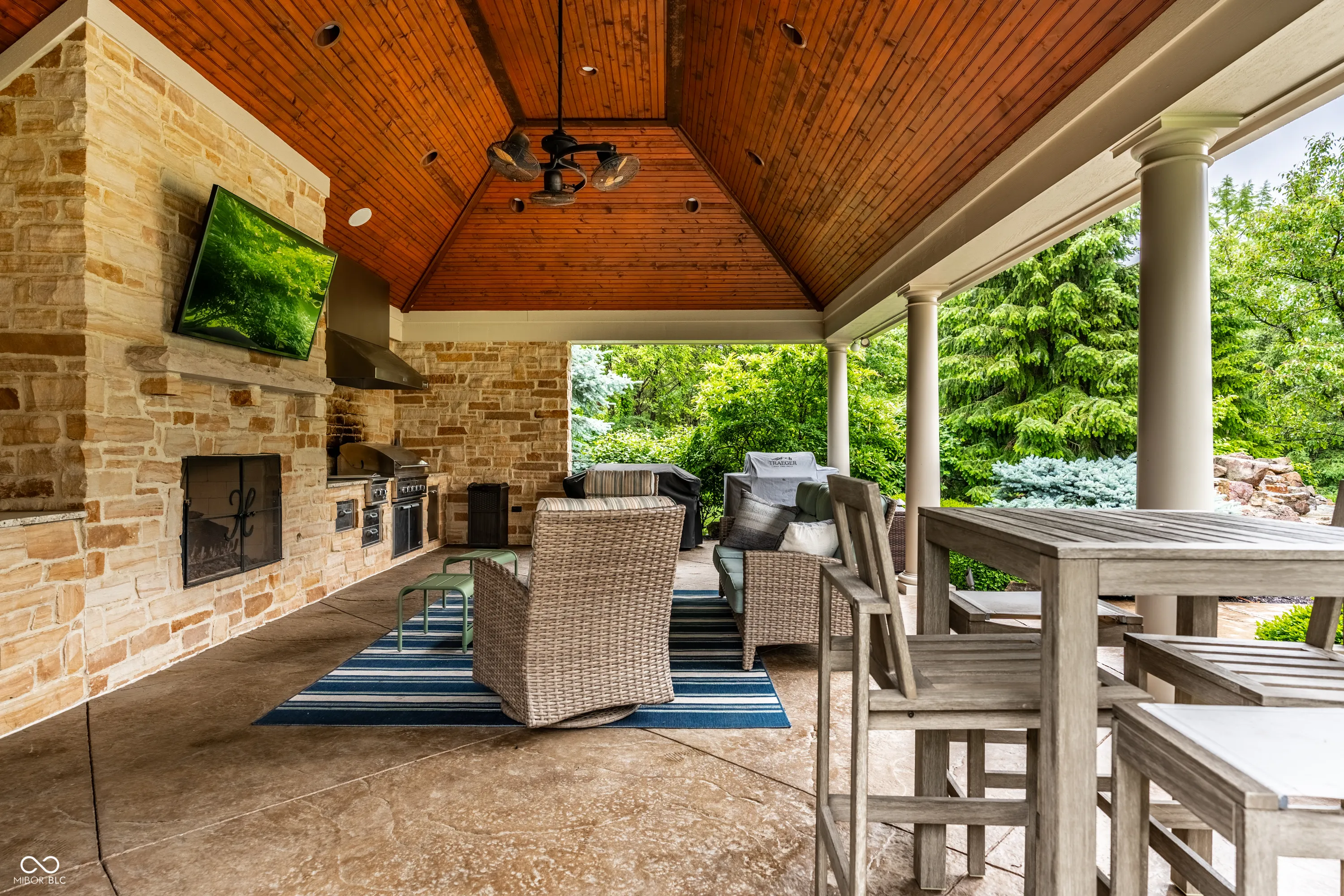 Behind the gates of the prestigious Estates of Clay West, this beautifully reimagined estate offers luxury living at its finest. Set on a manicured 1.25-acre homesite, this 6-bedroom, 7 full and 2 half-bath home has undergone extensive and thoughtful renovations by the current owners-elevating both style and function. The grand entry opens to a soaring two-story great room with rich hardwood floors and exquisite millwork, flowing into a chef’s kitchen designed for entertaining. The main-level primary suite is a serene retreat, while the newly added upstairs Secondary Primary Suite-complete with its own living area-makes the home ideal for multigenerational living or long-term guests. Downstairs, the former gym was converted into a private guest suite, while a brand-new, full-scale performance gym offers top-tier fitness at home. The lower level also includes a full bar/kitchen, large family room, and a one-of-a-kind themed theater. An elevator provides easy access to all levels, while a stately home office with fireplace adds daily comfort and elegance. Outside an Outdoor Kitchen Pavilion creates a resort-style setting surrounded by lush landscaping and multiple gathering spaces. Additional features include a 4-car garage, whole-home generator, and geothermal heating and cooling-offering both peace of mind and long-term energy savings. This is a rare opportunity to own turn-key estate that blends timeless architecture with today’s most desirable amenities.