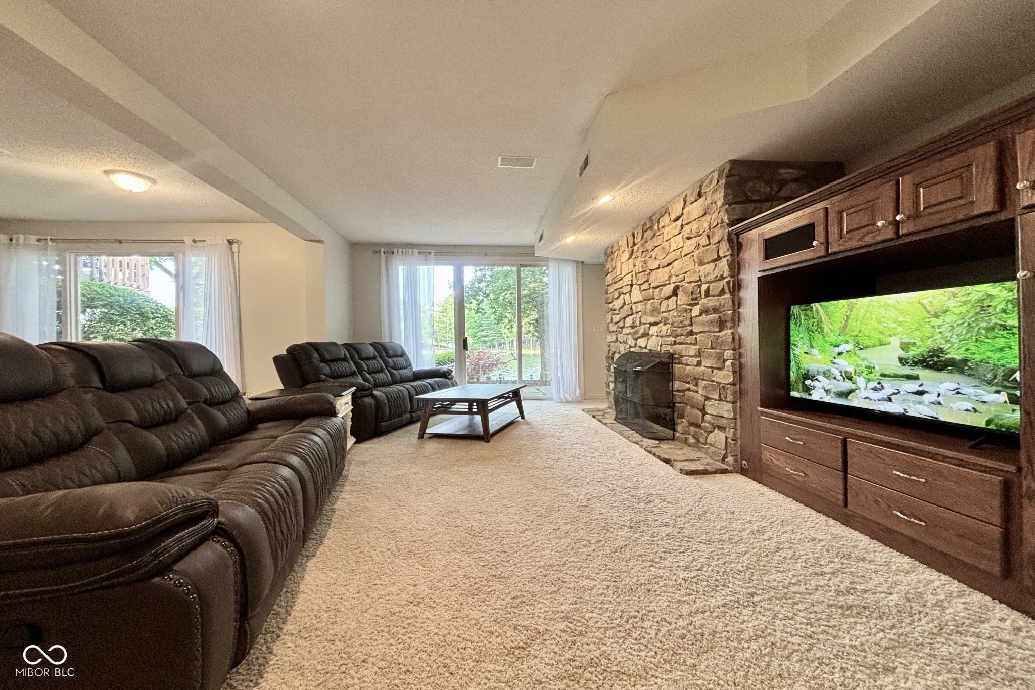 Experience a stunning lakeside sanctuary in the exclusive Foxcliff Estates North golf community. This 3-bedroom, 3-full-bathroom home boasts two master suites, including a main-level retreat with a cozy fireplace, private balcony, and expansive walk-in closet. Floor-to-ceiling windows in every room frame breathtaking views of East Lake, while the kitchen shines with sleek quartz countertops and rich hardwood floors. The finished walkout basement, complete with a wet bar, offers flexibility to add bedrooms. Nestled on a premier 0.53-acre lot with a private beach, fire pit, multiple decks and hot tub, this home is enveloped by a vibrant, wooded landscape featuring white oak, Japanese red maple, and river birch. Just blocks from the golf course, community pool, tennis/pickleball courts, and Manor House clubhouse, it blends luxury with a vibrant community lifestyle. Rare properties like this don’t last long-schedule your private tour today!