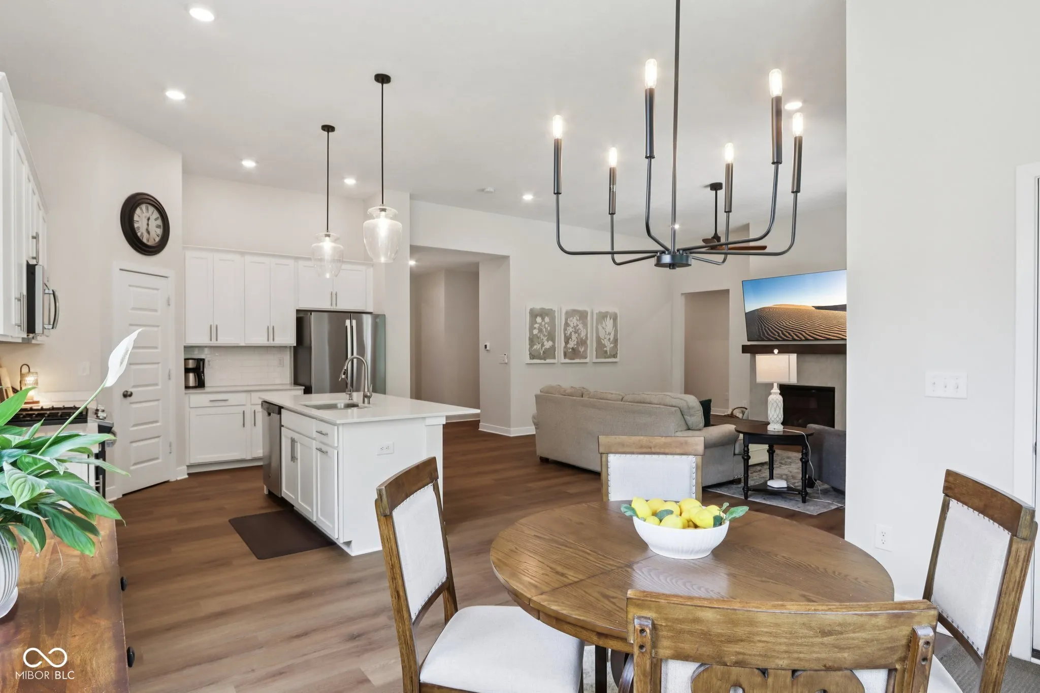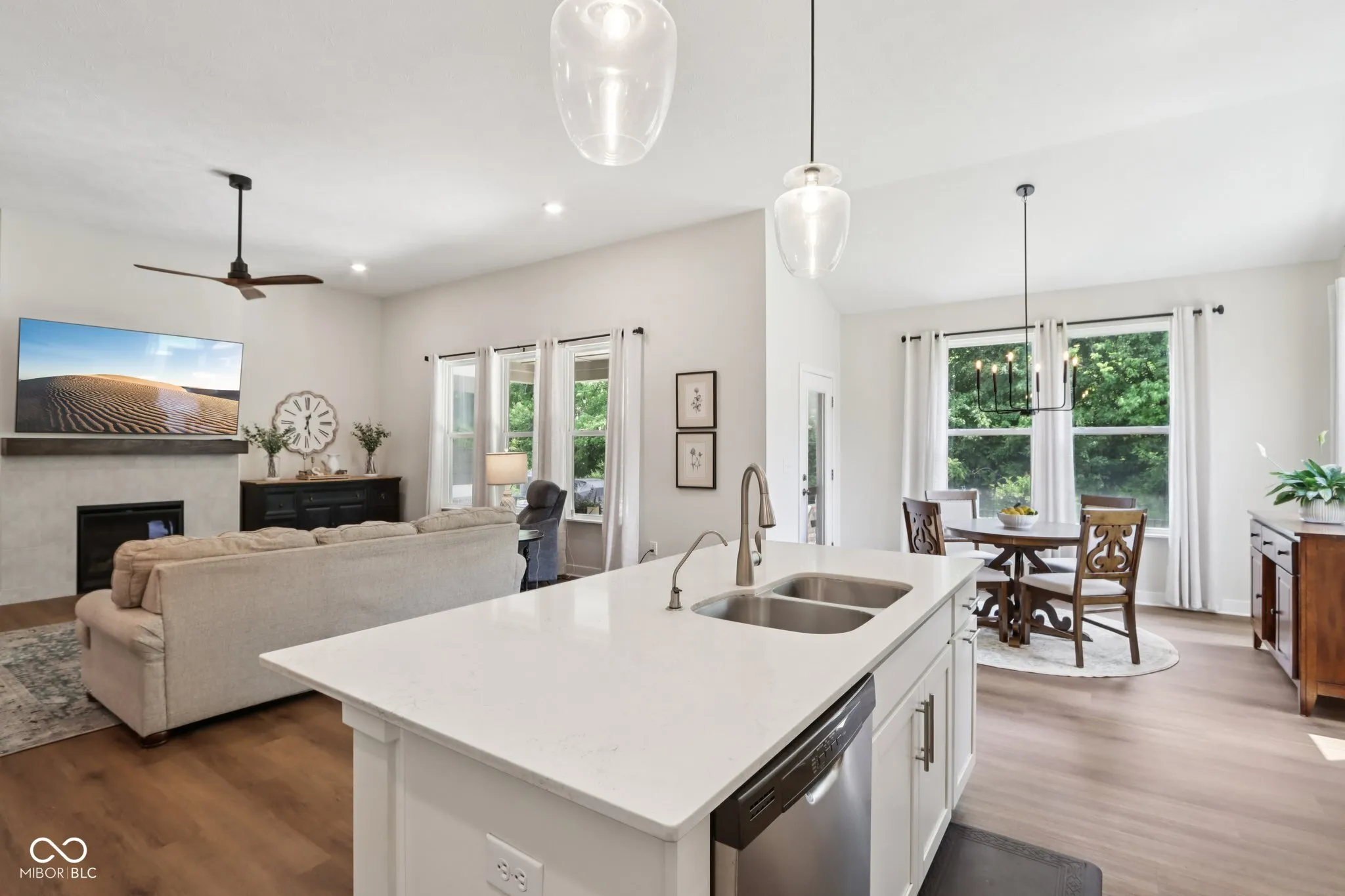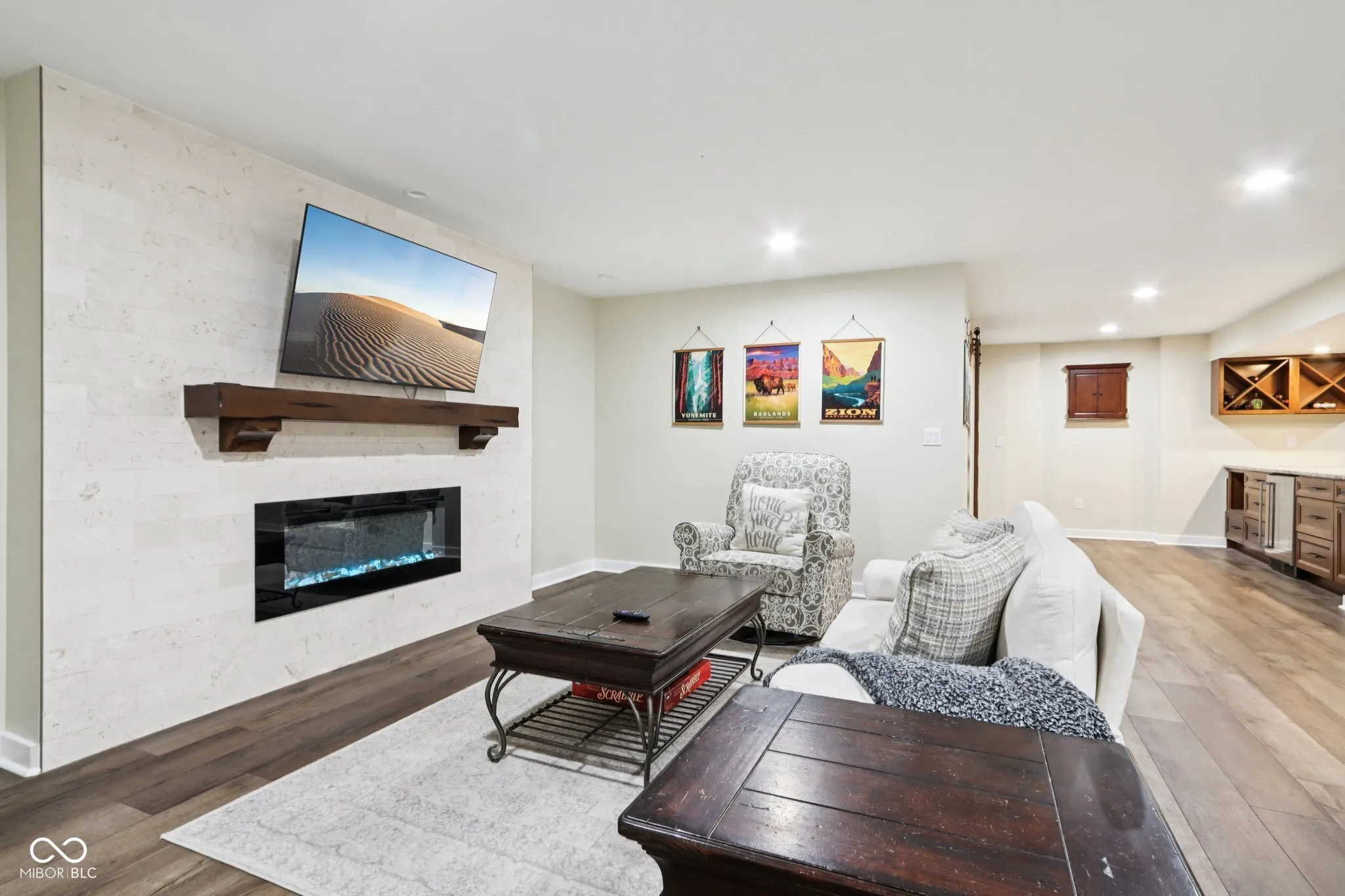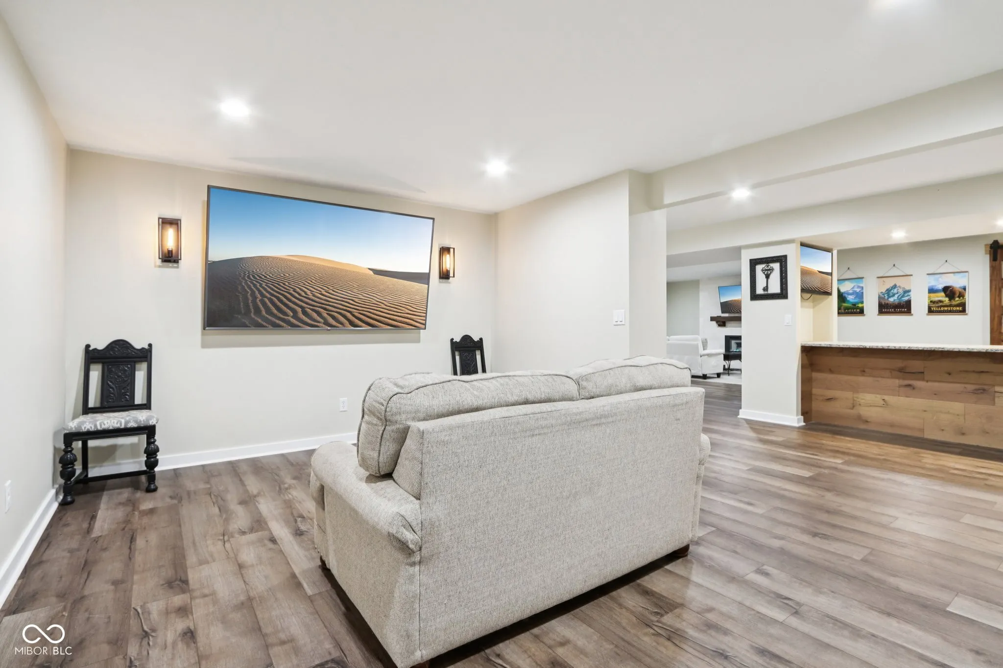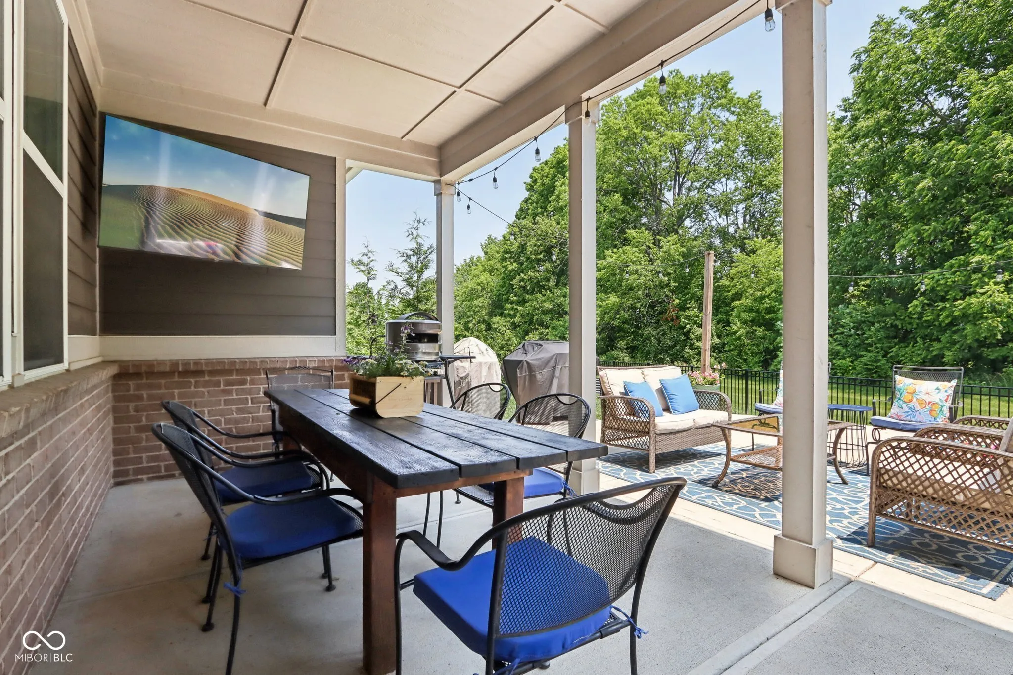 Welcome to this stunning home in the highly sought-after Conner Crossing neighborhood of Noblesville. This property perfectly blends comfort and style, starting with an inviting entryway that opens to an expansive floor plan featuring brand-new LVP flooring, high ceilings, and a cozy gas fireplace. The bright and spacious kitchen is a chef’s delight with stainless steel appliances, quartz countertops, and walk-in pantry. The main level also includes an owner’s suite with raised ceilings, abundant natural light, a large tiled shower, dual sinks, and a walk-in closet. The entertainer’s dream lower level boasts 9-foot ceilings, a lounge area with a bar, mini fridge, TV nook, and electric fireplace, as well as a dedicated theater area. Bedrooms 4 and 5 offer large daylight windows, spacious closets, and ceiling fans, while additional features include a full bathroom, an exercise room, and storage area under the stairs. Step outside to your private outdoor oasis, complete with a covered lanai, extended patio, and professional landscaping that’s worry-free-your HOA handles the mowing, mulching, and snow removal for you! Enjoy raised garden beds, a fully fenced yard, and a serene wooded lot. The 3-car garage has an electric car charger and space for your golf cart, perfect for trips to the neighborhood’s 36-hole golf course with a state-of-the-art simulator and a newly renovated restaurant and bar. The community also features a neighborhood pool and playground, providing endless opportunities for recreation and relaxation. This home truly has it all-privacy, functionality, and unbeatable amenities in a desirable location!